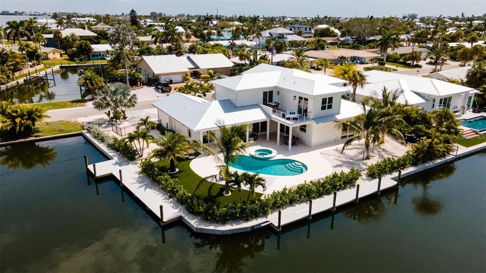 Stunning turnkey new construction on Anna Maria Island, located on a serene and rare double channel lot in the Key Royale neighborhood. This spacious residence features 5 bedrooms, 2 on the main level and 3 upstairs, all with en suite and walk-in closets offering ample space for family and guests.