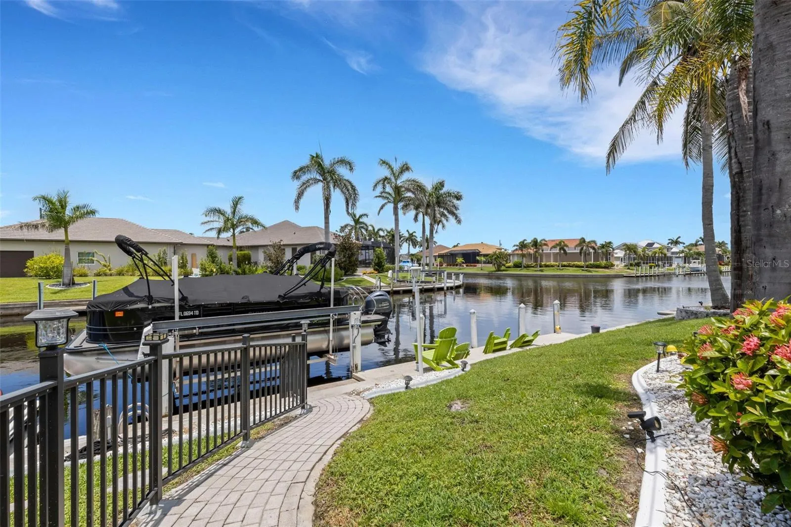 Welcome to this custom-built masterpiece, perfectly situated on a sailboat-access saltwater canal in the highly sought-after Punta Gorda Isles. Only 15 minutes to Charlotte Harbor through Buckley Pass. Boasting 3 spacious bedrooms, 2.5 baths, and 2,302 square feet of thoughtfully designed living space, and a large heated pool, this home offers the ideal blend of comfort, elegance, and coastal living. NEW metal roof in 2023. NEW A/C in 2021, including fully air conditioned garage. NEWLY painted inside and out. NEW 10,000 lb boat lift motor. NEW pool heater and pump in 2023. NEW lanai with panoramic screens in 2023. Hurricane shutters are fully automatic. Whole house vacuum.