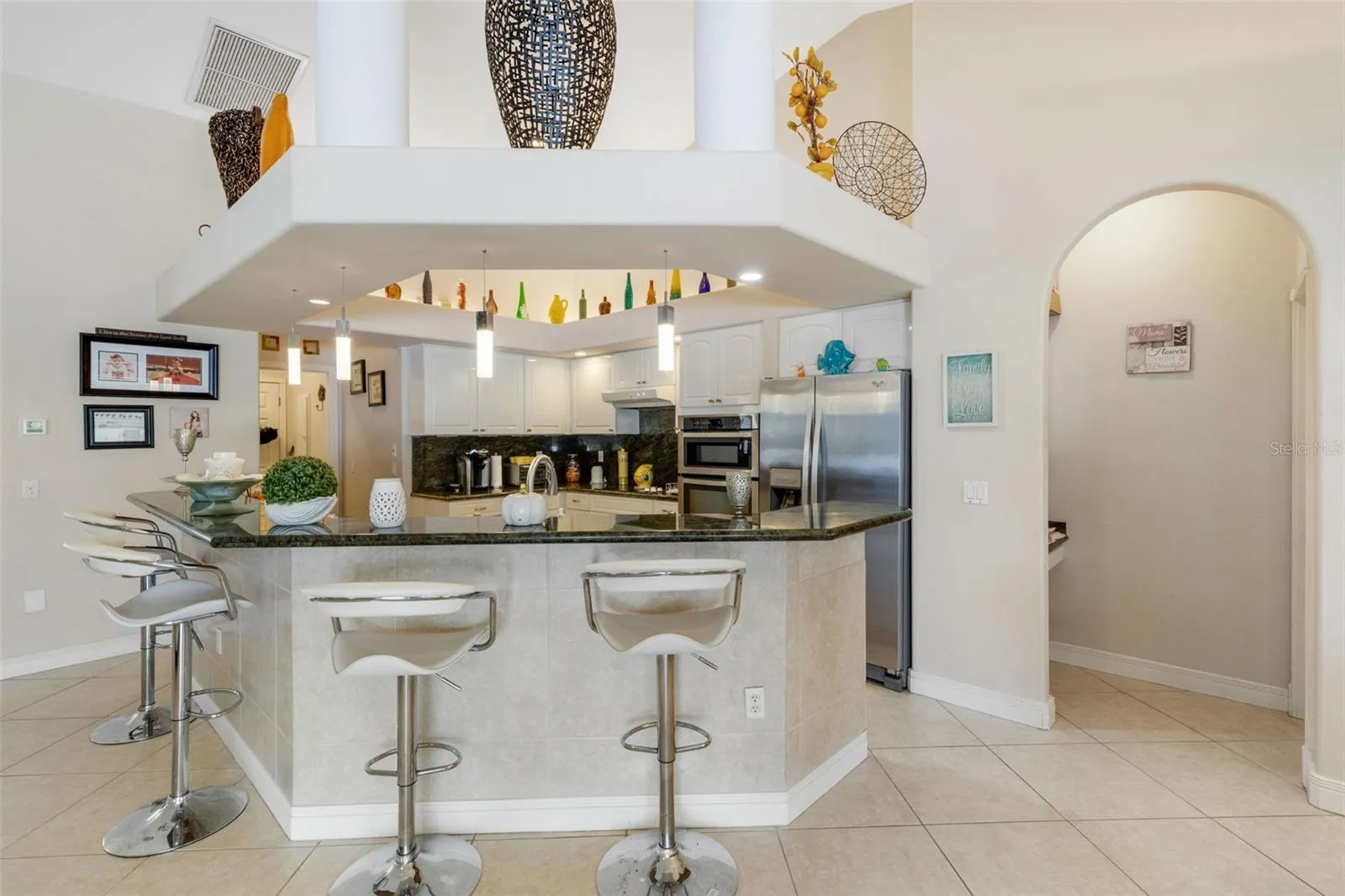 Inside, you’ll be captivated by the bright and airy open floor plan, highlighted by soaring ceilings, expansive windows, and abundant natural light. The great room design seamlessly connects to a formal dining area and a chef’s dream kitchen—complete with granite countertops, a breakfast bar, recipe desk, closet pantry, and ample counter space to satisfy even the most discerning culinary enthusiast.