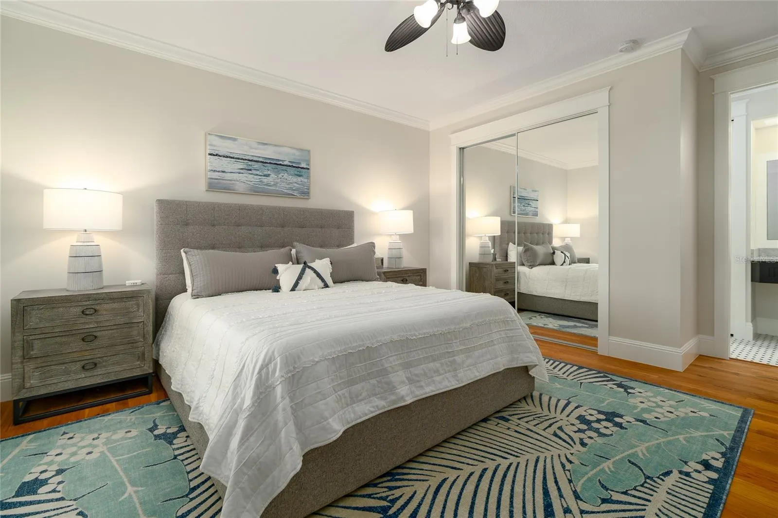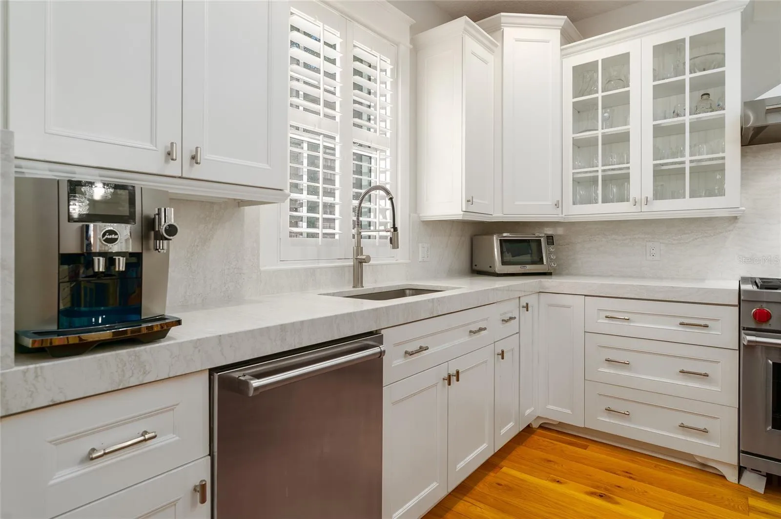 Discover a rare opportunity to own this exquisite custom-built residence in the prestigious Riverside Drive section of New Smyrna Beach. This coastal estate is a waterfront masterpiece, showcasing sweeping views of the Intracoastal Waterway and a private two-slip dock with a boathouse and lift for vessels up to 7,000 lbs. Privately gated and impeccably maintained, the home was built in 2012 with exceptional craftsmanship and timeless architectural detail. From the moment you arrive, every element impresses—from the smooth stucco exterior, solid poured-concrete porches, brick-accented steps, custom fencing, and fiberglass colonial shutters to the commercial-grade gate operator ensuring secure entry. Inside, 4,653 square feet of refined living space includes five bedrooms, four full bathrooms, including a beautifully appointed in-law suite with its own kitchen, bath, living and dining areas, and private access through the garage or primary suite—perfect for multigenerational living or extended guests. The elegant interior begins with a formal dining room and a flexible space ideal for a home gym or office. White oak floors in custom lengths and widths flow throughout the open great room and casual dining area. The remodeled kitchen is a stunning focal point, featuring custom cabinetry, quartz countertops and backsplash, new designer lighting, a 48” SubZero refrigerator/freezer, 48” Wolf gas range, 24” Cove dishwasher with water softener, Thor beverage fridge, and pantry. A guest bedroom and full bath are also located on the first floor. Upstairs, two guest bedrooms are connected by a Jack-and-Jill bath, while the expansive primary suite includes a private office, spa-like bath with soaking tub and walk-in shower, an oversized custom closet nearly 20 feet long, and a private balcony overlooking the water. Comfort meets efficiency with closed-cell Icynene insulation in exterior walls and ceilings, added insulation between the main home and in-law suite, three interior laundry hookups, gas tankless water heater systems, and a fully fenced yard ideal for pets. From 2023 to 2025, the home was elevated with luxury upgrades, including two new HVAC systems, remodeled kitchen with quartz surfaces and premium appliances, updated lighting, fresh interior paint and wallpaper, new stair carpeting, frameless glass shower doors in all bathrooms, and a Hydroviv water filtration system serving the kitchen, kitchenette, and primary bath. Thoughtful additions such as custom mirror cabinetry with hidden storage, freshly stained dock boards, and a 24kW Generac whole-home generator (installed in 2024) enhance both comfort and functionality. In 2025, a brand-new cold plunge and completely redesigned front and rear landscaping created a serene outdoor oasis. A spacious three-car garage provides ample room for vehicles, watercraft, or hobby space. This exceptional residence is more than a home, it’s a statement of elegant coastal living, offering unmatched comfort, versatility, and proximity to Historic Canal Street and the Yacht Club. Schedule your private tour today to experience this waterfront treasure firsthand.