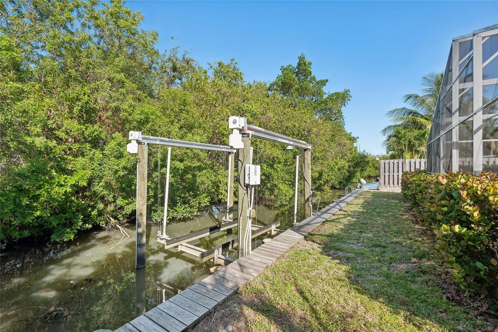 WATERFRONT WITH POOL! BRAND NEW METAL ROOF 2025! BRAND NEW AC! This tropical retreat is a mariner’s paradise, offering two bedrooms, two bathrooms, and endless charm. Relax by the screened-in, solar-heated pool or enjoy the private dock with a 9,000-pound lift and fish cleaning station. Located at the end of a cul-de-sac, the property features a circular driveway and trailer pad. Fully furnished and move-in ready, just bring your boat! Inside, vaulted ceilings and sliding glass doors lead to a screened lanai with an outdoor shower. Enjoy serene views of the intracoastal canal and wooded nature area from the fenced yard. With two en suite bedrooms, an open kitchen, a bonus room, and home security and irrigation systems, this home blends comfort and convenience, just minutes from the beach. Seller financing available with 20% down payment and 6% interest. BRAND NEW METAL ROOF AND AC UNIT INSTALLED NOV, 2025. Don’t wait, this won’t last!