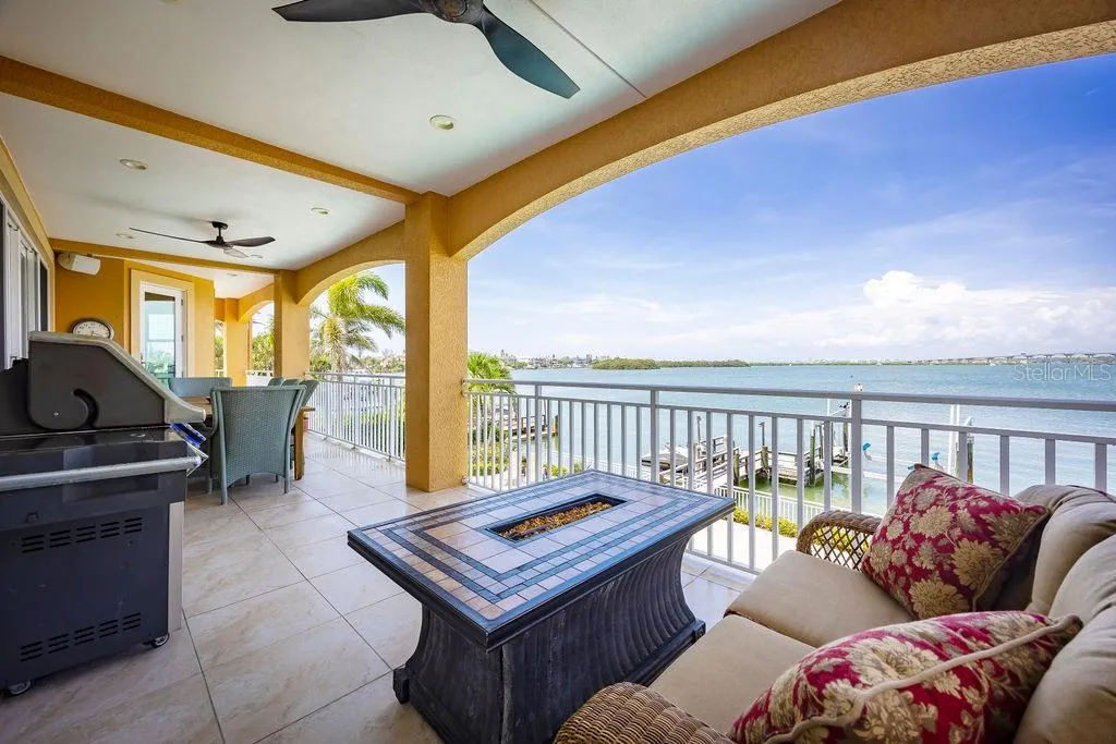 Welcome to 306 Harbor Drive—where waterfront dreams take center stage in Indian Rocks Beach. This custom-built waterfront masterpiece was crafted by its original builder-owner with precision, passion, and a love for elevated coastal living. With 4,571 square feet of air-conditioned luxury, five bedrooms and four full baths, every inch of this home is dialed into the water-loving, space-craving, view-chasing soul. From the moment you enter, the open water views steal the show—visible from nearly every angle. The primary suite is nothing short of a sanctuary, stretching 27 by 37 feet with its fireplace, private waterfront balcony, and a spa-inspired bath complete with dual vanities, deep soaking tub, double-headed walk-in shower, and private water closet trimmed in wood and granite. The heart of the home flows effortlessly from the waterfront living room (yes, with its fireplace and balcony) into a dream kitchen built for entertaining and everyday luxury—custom wood cabinetry, granite countertops, eat-in island, breakfast nook, walk-in pantry, and a butler’s pantry that glides right into a coffered-ceiling formal dining room. One of the five bedrooms is set up as a home office with views fit for royalty—a daily reminder working from home doesn’t have to feel like work at all. Downstairs, you’ll find a social room that opens wide to the pool area, ideal for game nights, movie marathons or cocktail hours that drift into moonlit swims. A full bath on this level means your guests can rinse off from the saltwater pool and heated spa without a second thought. Smart home systems, high ceilings, tile, wood, and carpet flooring add comfort and control, while the private elevator whisks you to every floor—including the rooftop. Yes, a fourth-floor rooftop balcony awaits with unmatched views of the Intracoastal and beyond. Sunrise coffees, sunset toasts, and stargazing under coastal skies—it’s all yours. The five-car garage includes one bay converted into a climate-controlled gym, and your private dock is fully loaded with a 25,000-pound boat lift and twin jet ski lifts for spontaneous salty escapes. All this just a short walk to the beach, Brown Park and tennis courts. No HOA. No drama. Just bold, beautiful, waterfront freedom.