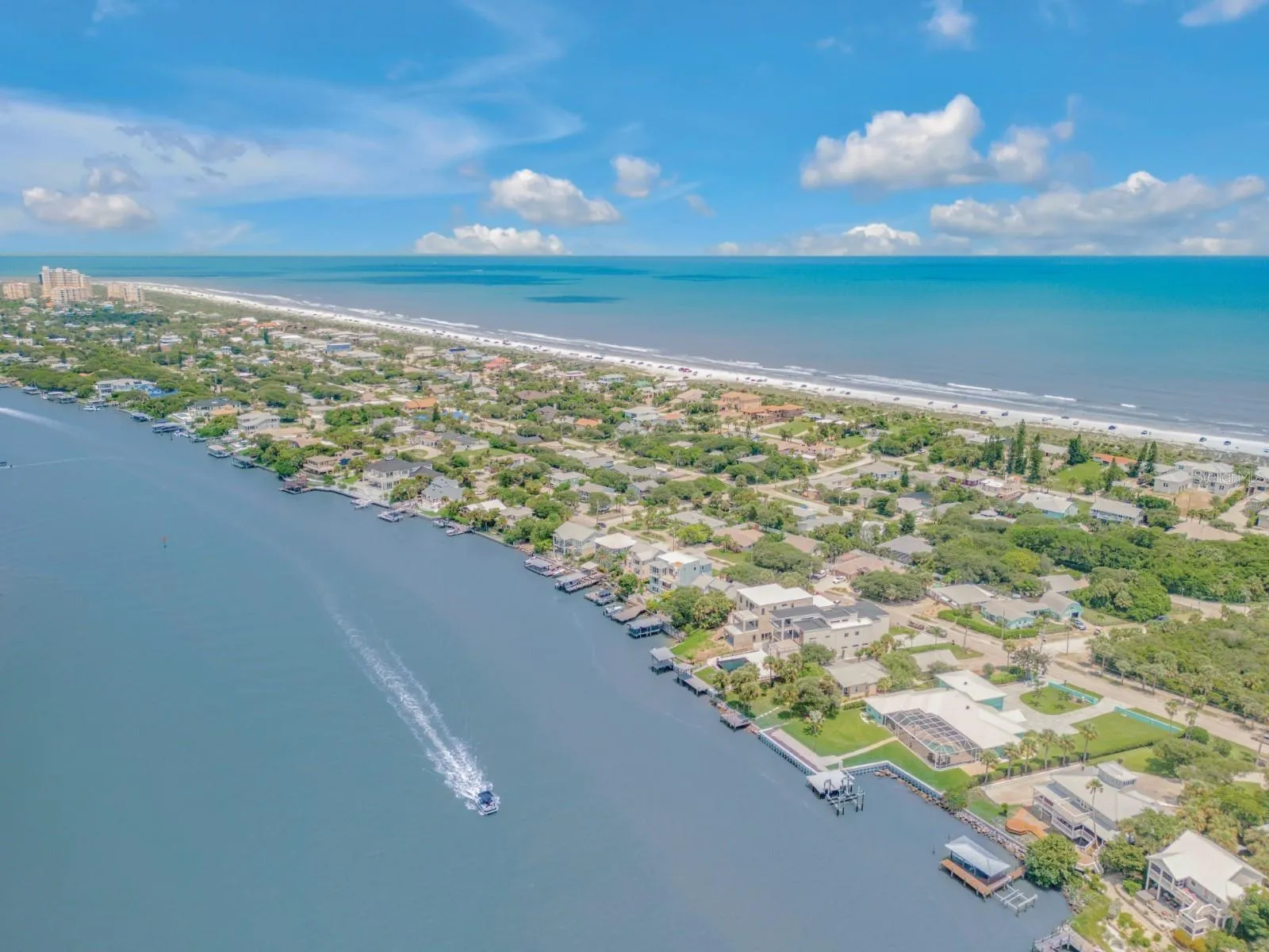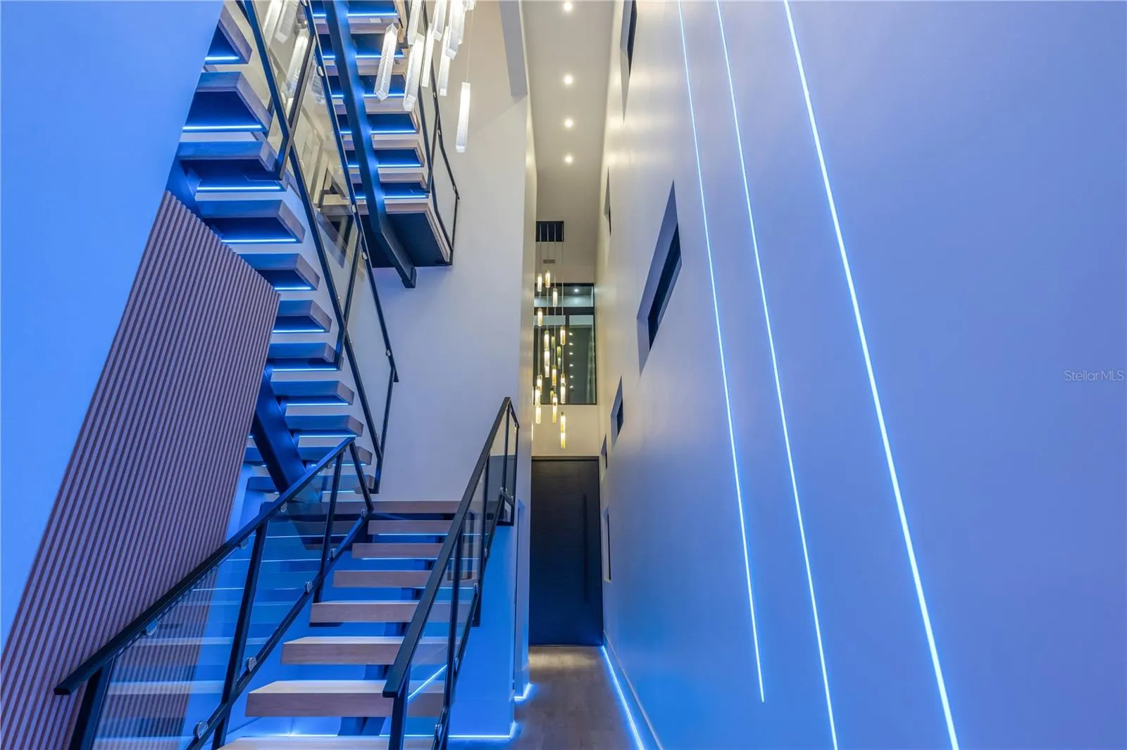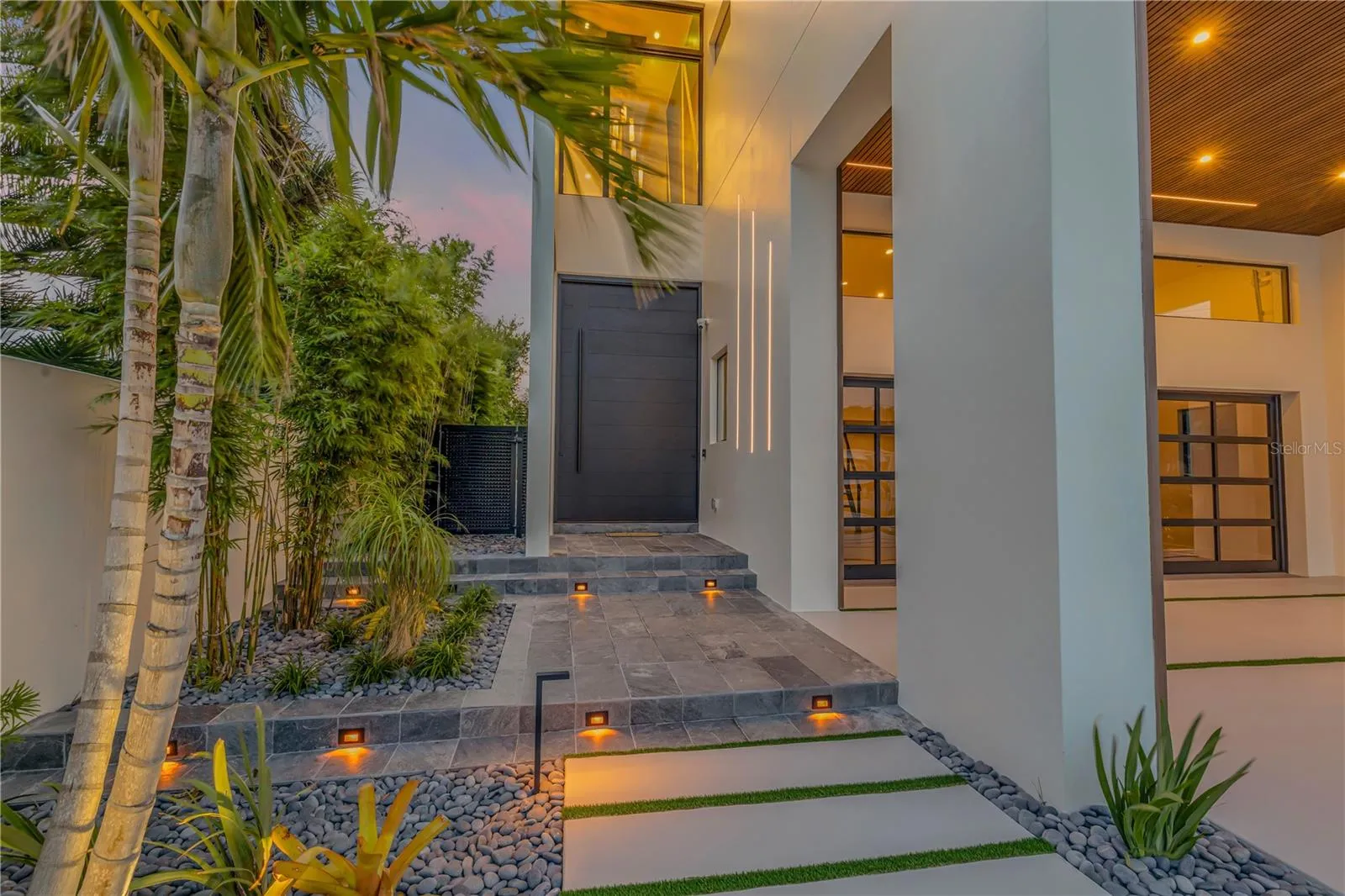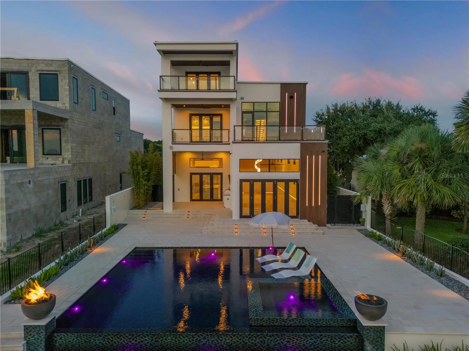 Year 2024 New Construction Where Coastal Elegance Meets Architectural Mastery in New Smyrna Beach. Intracoastal Waterway deep water dock home with modern luxury on an island just a block to the Atlantic Ocean beaches. This extraordinary 5,500-square-foot under air, 5-bedroom, 5-bathroom estate, complemented by 2 half baths, represents the pinnacle of contemporary design and cutting-edge technology. Nestled along the tranquil shores of New Smyrna Beach’s famed Intracoastal Waterway, this waterfront mansion offers not just a home, but an experience for the most discerning individuals who seek exclusivity and sophistication. In a rare find for the area, this architectural gem provides direct access to the Atlantic Ocean via 5 minutes by Yacht to Ponce Inlet, ensuring the ultimate coastal living experience in one of Florida’s most coveted seaside destinations. Upon arrival, a towering 12-foot pivot door greets you, hinting at the grandeur that lies within. The home immediately envelops you in a Zen-inspired atmosphere, effortlessly blending tranquility with high-end craftsmanship. As you ascend the stunning 3-story open staircase—each tread an artistic creation illuminated by customizable LED lighting—you’ll appreciate how every detail in this home has been thoughtfully considered to perfection. At its heart is the full integration of Crestron smart home technology, allowing you to control every aspect of your living environment, from the state-of-the-art surround sound system to the artfully designed lighting schemes, all from your mobile device. This seamless technology turns daily living into an exercise in effortless luxury. Spanning three floors, this home exemplifies architectural brilliance. A commercial-grade elevator ensures easy access to all levels, while the first-floor master suite offers convenience, privacy, and a serene retreat. On the second floor, the master suite becomes a sanctuary, complete with an expansive balcony that offers unobstructed views of the deep Intracoastal waters, barrier islands, and beyond. Imagine waking up each day to the serene rhythm of the ocean, with New Smyrna Beach’s white sands just moments away. The third level is a haven for entertaining, featuring a sophisticated bar and entertainment room, which opens to a terrace that boasts one of Florida’s most breathtaking sunset panoramas. From this level’s observatory, soak in unrivaled 360-degree views that stretch from the Atlantic Ocean to the Intracoastal, redefining what it means to live on the coast. Outdoors, the luxury continues with an infinity-edge pool that appears to spill seamlessly into the Intracoastal waters, accentuated by striking fire features. The expansive covered deck houses a gourmet outdoor kitchen—perfect for hosting unforgettable soirées under the stars, with the sounds of the ocean as your backdrop. For the yachting enthusiast, a newly installed seawall, private dock, and deep-water boat slip provide direct access to the inlet, offering an easy gateway to the Bahamas and beyond. This exclusive residence is more than just a home; it’s the culmination of over three years of meticulous planning and construction, resulting in a one-of-a-kind masterpiece. With its prime New Smyrna Beach location, offering both direct ocean access and proximity to the town’s charming beaches and seaside atmosphere of many shops and restaurants within minutes of your doorstep. This estate is truly a rare gem.