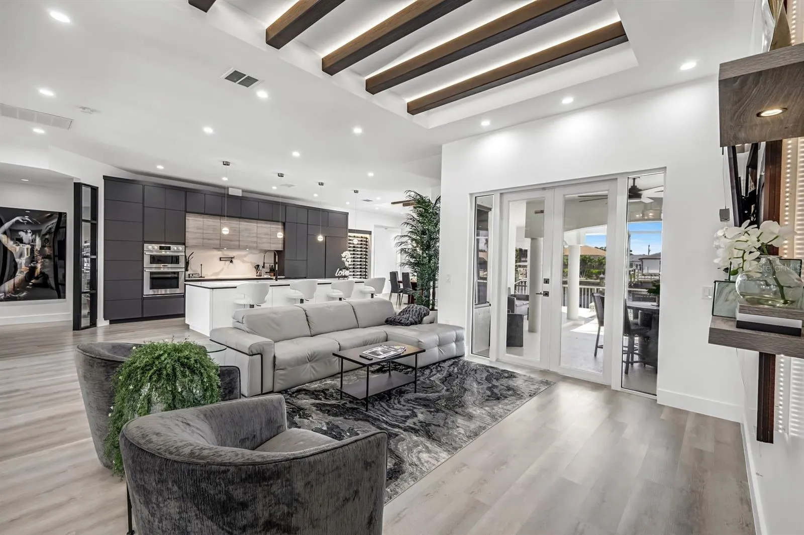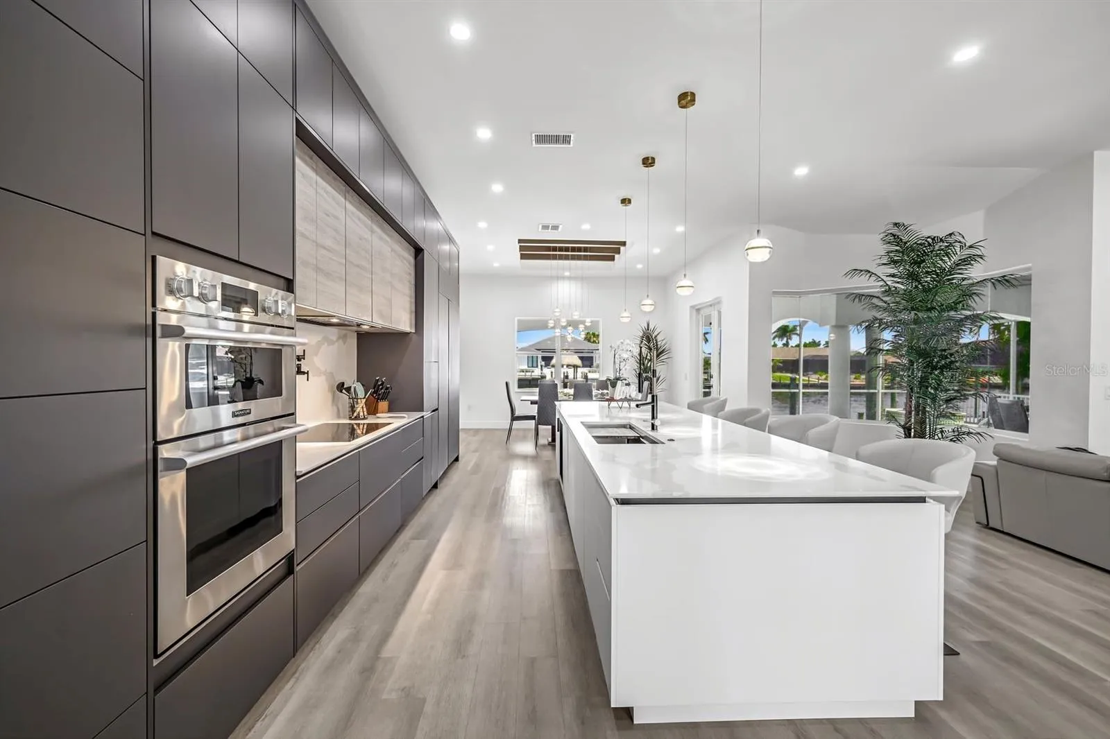 Welcome to your waterfront masterpiece in Cape Coral’s Savona boating community. This extraordinary residence offers deep water sailboat access on an oversized canal—ideal for large vessels. Just minutes from the Caloosahatchee River with no bridges, it’s a dream location for yachting enthusiasts and anyone seeking luxury waterfront living in sunny Southwest Florida. Boasting $600,000 in premium upgrades, this home has been reimagined with both elegance and functionality in mind. Highlights include 10-foot ceilings, custom lighting, upgraded insulation, newer HVAC, and a freshly painted interior and exterior. The modern open-concept layout seamlessly blends indoor and outdoor living. At the heart of the home is a chef’s kitchen, complete with: an oversized island with under-mount lighting and deep sink with disposal, Subzero 48” refrigerator/freezer, Signature 2023 appliances including a steam oven, microwave, dishwasher, wine fridge, and a custom pullout coffee bar and pot filler for added convenience. The elegant dining area seats eight and opens via French doors to a resort-style patio with tranquil water views of the Sonata Canal. The Primary bedroom suite boasts French doors to the lanai, a stunning porcelain feature wall and mirror, and a designer walk-in closet with ambient lighting. The luxurious primary ensuite boasts a floating toilet, rain showerhead, body sprays, stylish vanities, modern plumbing fixtures, and designer lighting throughout. Two additional European-inspired bathrooms offer designer finishes and floor-to-ceiling porcelain tile with LED-lit mirrors. Outdoor living is equally impressive, with a newly painted pool lanai, new lighting and ceiling fan, and upgraded pool lighting to enhance nighttime ambiance. Boaters will love the 70-foot dock and captain’s walk, complete with lighting, electrical, and water—perfect for accommodating up to a 65-foot yacht. Best of all, this home is elevated above the floodplain and has never experienced water intrusion, offering true peace of mind during storm season. Don’t miss your chance to own this exclusive waterfront oasis—schedule your private tour today!
