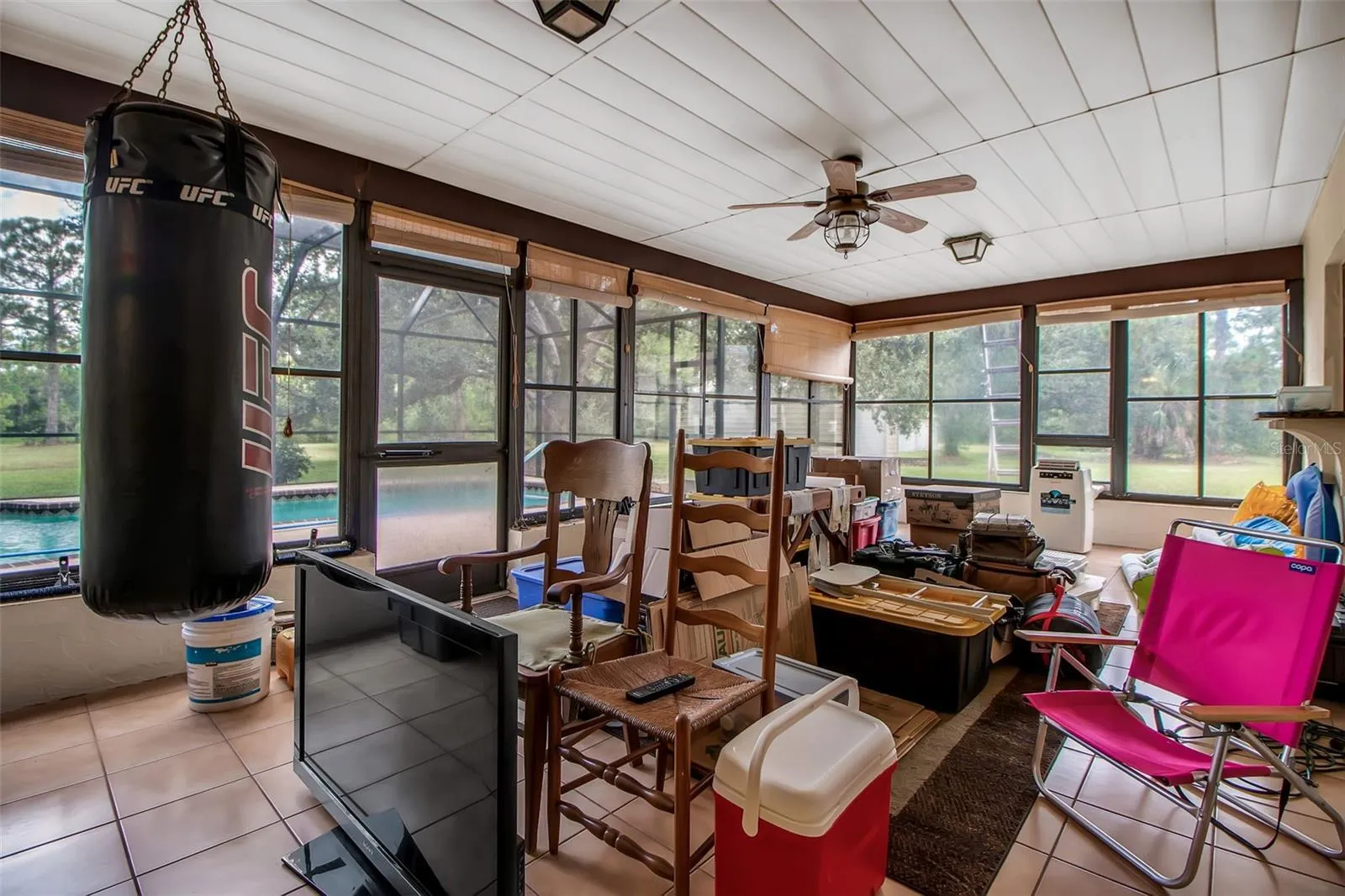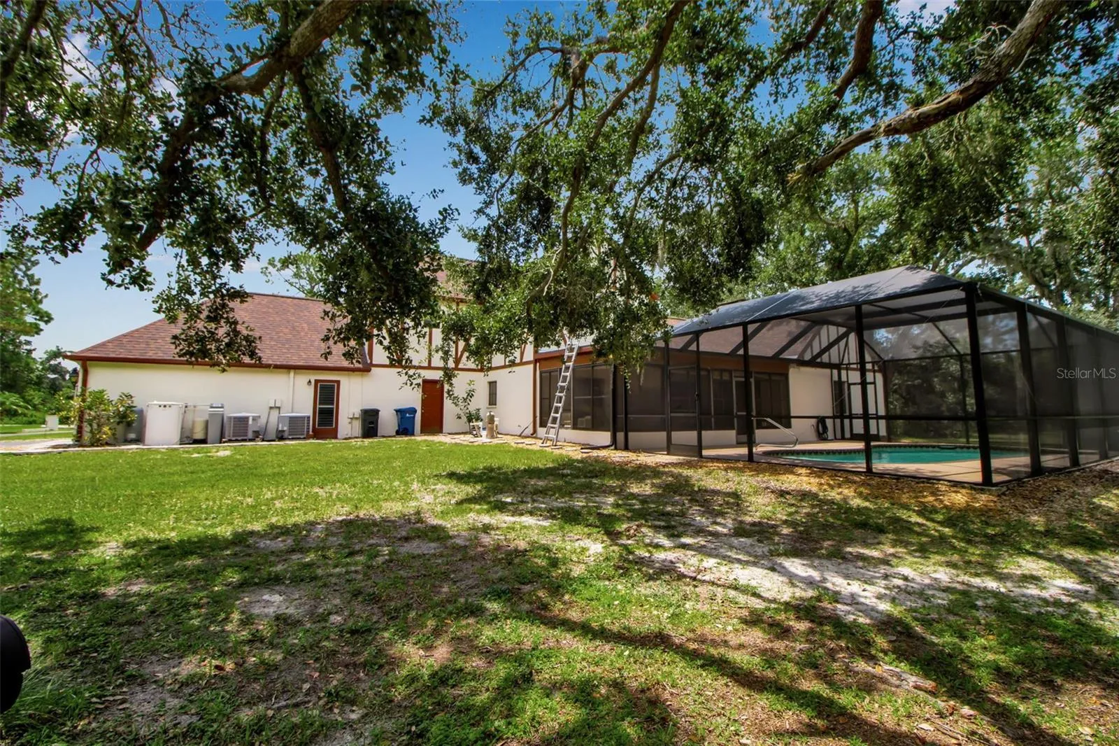 Stately English Tudor Home in Gator Creek! Nestled within the scenic Gator Creek neighborhood, this 3 bedroom, 2.5 bath English Tudor-inspired residence offers a rare combination of classic architecture and modern comforts. Encompassing nearly six acres on a secluded cul-de-sac, the property welcomes you with sweeping views of majestic oaks and whispering pines, creating a serene country retreat just moments from the heart of Sarasota. Set inside; gleaming wood floors create a warm and inviting atmosphere. The living room, with soaring beamed ceilings and a wood-burning brick fireplace, is the perfect area for gathering loved ones and friends for a cozy evening. The kitchen and family room create a comfortable gathering space, complete with a dry bar that can be converted into a wet bar. A separate dining room offers tranquil views of the spacious lanai and sparkling pool, ensuring memorable meals with family and friends. The roomy downstairs office enjoys similar vistas, making it an inspiring space for work or creativity. Upstairs you will find the master suite. Bathed in natural light it features newer carpeting two walk-in closets and a beautifully updated bathroom with dual sinks, a soaking tub, and a walk-in shower. Two additional guest bedrooms provide flexible accommodations—one with plush carpeting, the other boasting durable vinyl plank flooring and currently serving as a sewing/quilting studio. The owners have diligently maintained and improved the property. Notable updates include a 20 x 30 shed installed in 2020, a new pool cage and roof in 2023, newer appliances, and a repaved driveway in 2018. The home also has two-zone AC units, with the downstairs unit installed in 2017 and the upstairs in 2020. A charming pond enhances the acreage and can be made visible from the residence, adding to the estate’s appeal. Notably, the property is not in a flood zone and has never experienced water intrusion, offering peace of mind for years to come. Privacy and tranquility abound, yet convenience remains at your doorstep. Esteemed educational institutions are close by, including The Classical Academy, New Gate Montessori, Prew Academy, Sarasota Suncoast Academy, Pine View School for gifted students, and Riverview High School. For recreation and leisure, Siesta Key Beach is a short 30-minute drive, UTC Mall just 10 minutes, and vibrant downtown Sarasota a mere 20 minutes away. With its harmonious blend of timeless style and thoughtful enhancements, this exceptional home is ready to shine with just a touch of care. Don’t miss the opportunity to experience its unique charm—schedule your personal showing today and discover the priceless combination of privacy, beauty, and convenience this property offers.