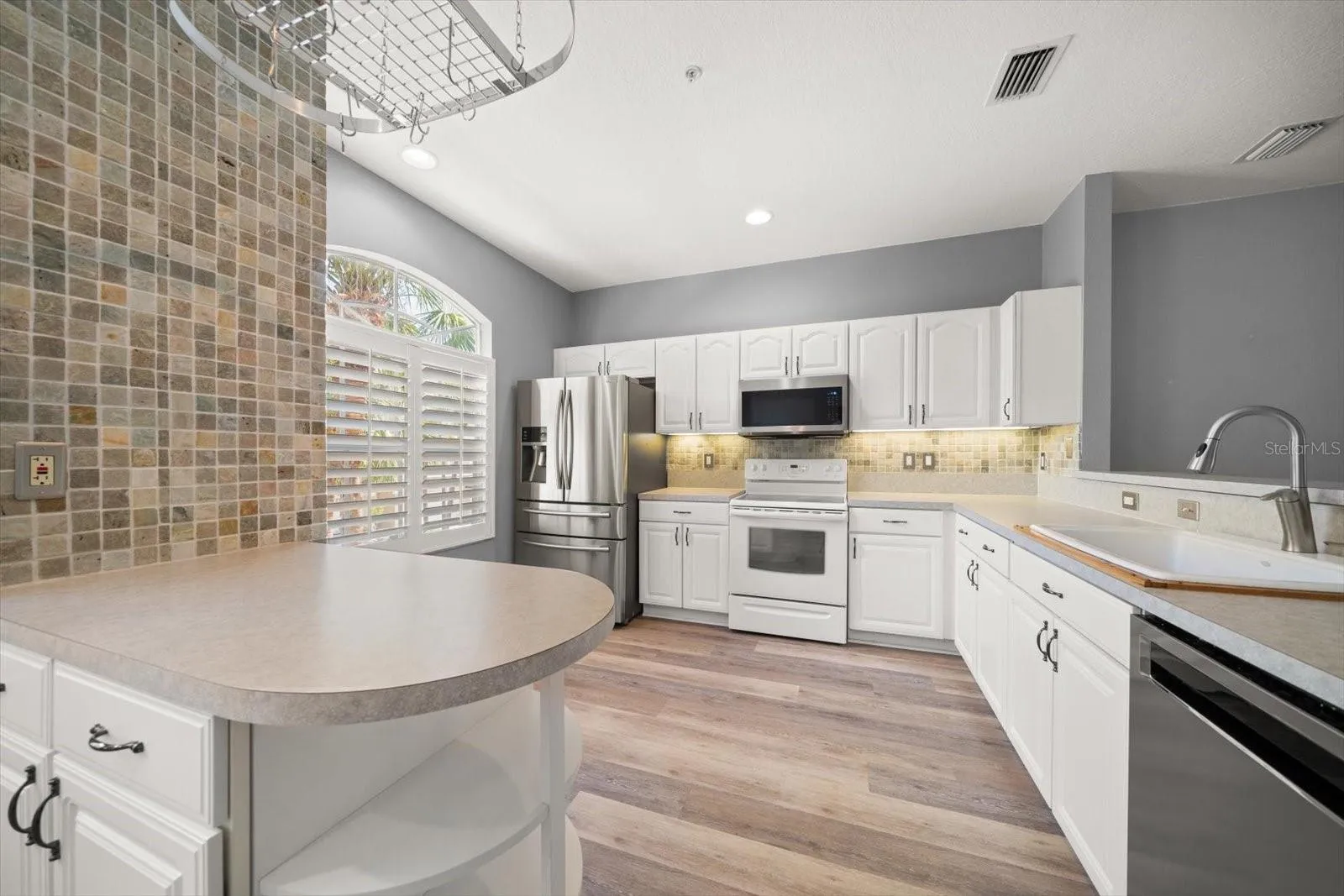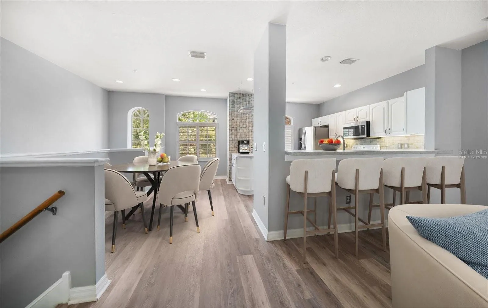 One or more photo(s) has been virtually staged. Welcome to this lovely multi-level townhouse nestled in a highly desirable Clearwater location—just 5 minutes from vibrant downtown Safety Harbor. Set in a well-maintained community with underground utilities and backing up to a serene conservation area, this home offers both privacy and convenience. Best of all, it’s high and dry in a non-flood zone. Enjoy an incredibly rare tandem 4-car garage on the ground level, complete with a half bath, workshop area, and access to a private outdoor deck—perfect for hobbies or entertaining. The second floor features the main living space with tall ceilings, new luxury vinyl plank flooring, a bright and cheerful kitchen, dining area, half bath, and sliding glass doors that open to a screened-in porch. Upstairs on the third level, you’ll find the primary bedroom with ensuite bath, a guest bedroom, and a versatile office serviced by a second full bath. The laundry closet with full-sized washer and dryer adds everyday convenience. Additional features include a 2018 roof, new AC installed in 2023, a new 2023 water softener, full home HALO system, and pre-wired security system. The low HOA fee covers lawn and pool maintenance as well as basic cable and exterior maintenance. This is a rare opportunity to own a spacious, move-in-ready home in a sought-after location—schedule your showing today!