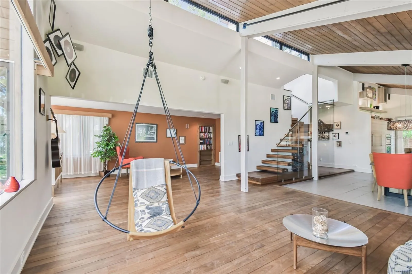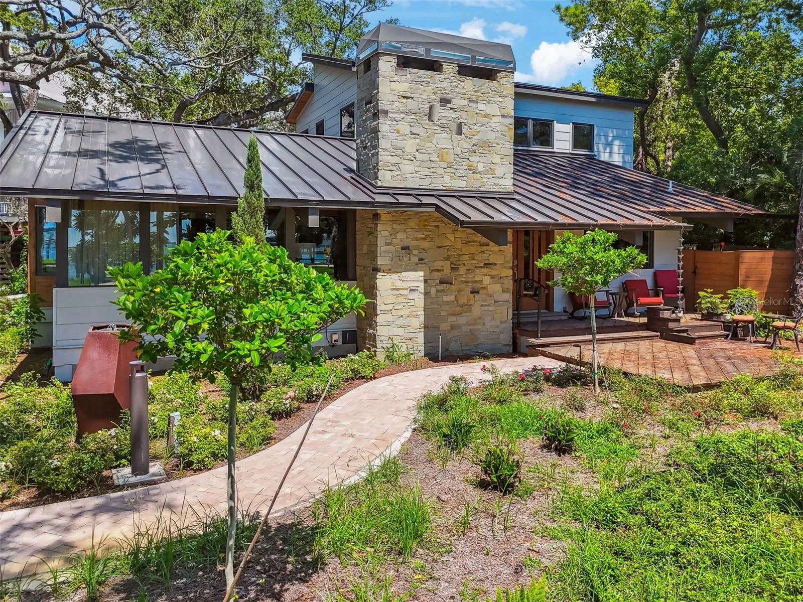 A rare opportunity to own an incredible waterfront residence on the most coveted street in Dunedin, just steps from downtown. Across the wide open waters of St Joseph Sound to Caladesi Island, this perfect mid-century modern home has been completely remodeled with taste, high-end design and luxury finishes. 2nd floor as well as the 1,250 sf garage are recent additions to the home. The custom European kitchen, the solid black walnut floors, full-length monolithic laminated glass widows, precious oak-shaded courtyard, incredible floating staircase, 2 large master suites are just but a few of the attributes that make this home an actual treasure. Every corner of this home offers a different design element or finish thats been thoughtfully selected and perfectly executed; including a secret door disguised as a book case into a possible office or a 3rd bedroom. This historic location, just steps from all the amenities downtown Dunedin has to offer, provides a uniquely tranquil and private lifestyle with breathtaking sunsets. Couple it with this jewelry box of a home, and all one can say is: PARADISE FOUND!