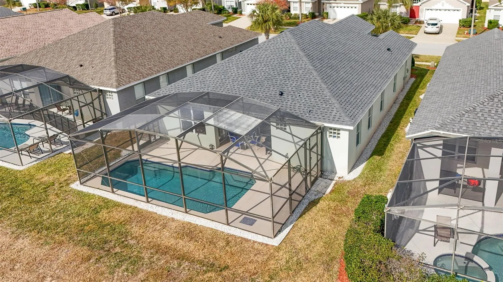 Location, location, location!! WINDSOR PALMS RESORT community is located just 3 miles from Walt Disney World. This sought-after guard-gated, SHORT TERM RENTAL offers 24-hour entrance security. Windsor Palms is a world-class Resort that nestles a Tiki Bar, arcade, state-of-the-art gym, heated pool and splash pad, clubhouse, movie theatre, sundry shop, playground, tennis, volleyball, and basketball courts. This stunning pool home conveys FULLY FURNISHED. It has a BRAND NEW ROOF, a beautiful SCREENED POOL, 4 bedrooms, and 3 full bathrooms. The master bathroom has a tub, a separate shower, two sinks and a water closet with a door that opens to the pool area where the covered lanai is. Windsor Palms offers world-class amenities, including a clubhouse with Tiki Bar, arcade, state-of-the-art gym, heated pool and splash pad, movie theatre, sundry shop, playground, tennis, volleyball, and basketball courts. Enjoy this beautiful house year round or use it as a great investment, it qualifies for Airbnb and VRBO. MORE PICTURES OF THE HOUSE ON ITS WAY!