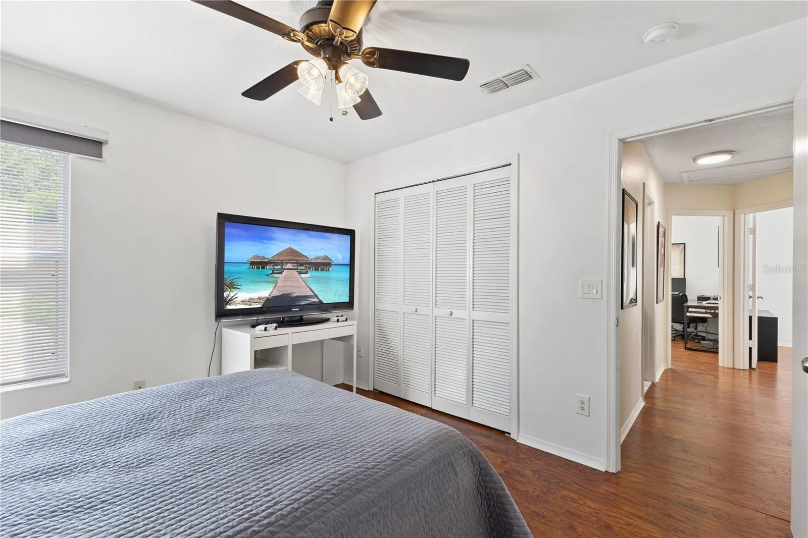 Inside, you’ll find a first-floor master suite with direct pool access, elegant wood floors, and a relaxing garden tub. Upstairs, three additional bedrooms and a full bath provide plenty of space for family and friends. Best of all, there’s no carpet anywhere — only wood and ceramic tile for easy maintenance.