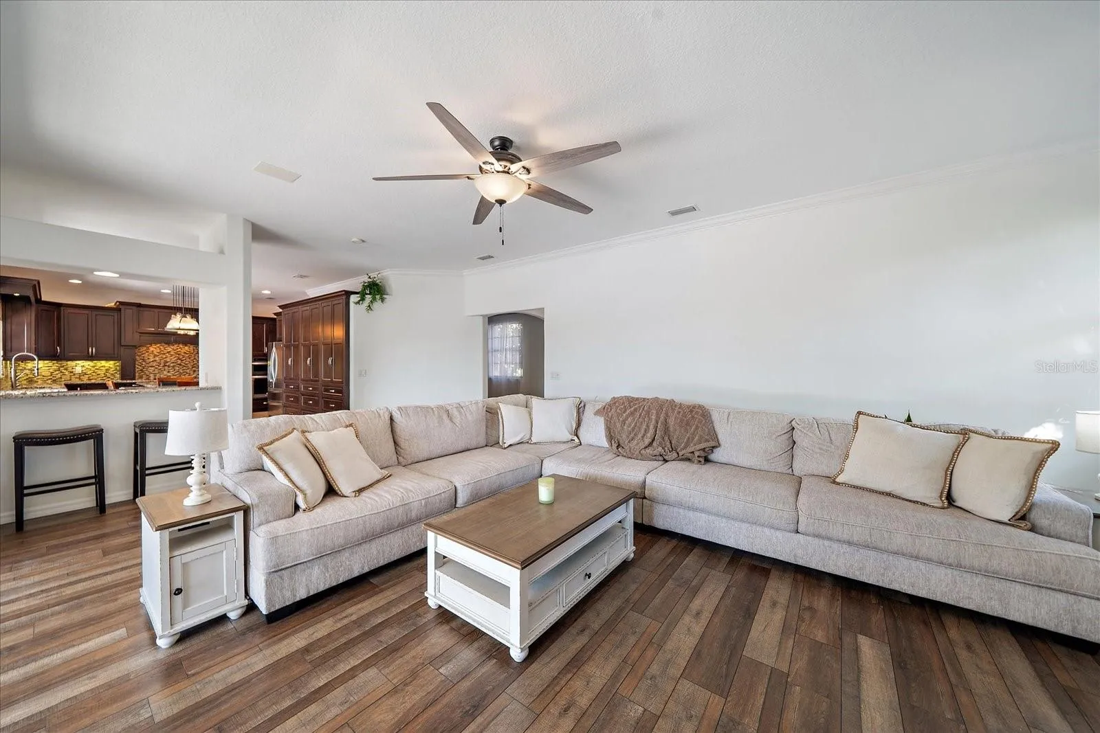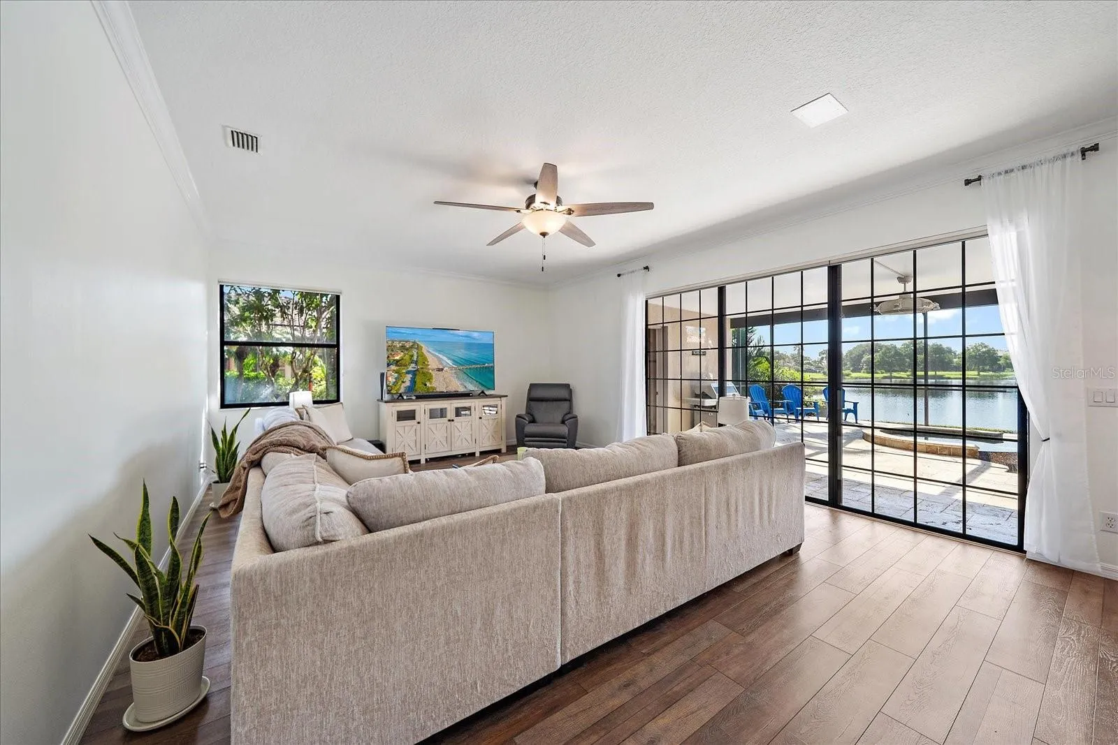 Discover this expansive 5-bedroom, 4-bathroom home with an oversized bonus room and 3,938 sq. ft. of living space, perfectly situated on a 10,548 sq. ft. lakefront lot. Recent upgrades provide peace of mind and modern comfort, including a new tile roof (2024), new zoned HVAC units (2022), a new pool heater (2024), a new water heater (2025) with a 25-year whole-home water conditioner, fresh interior paint and updated door hardware throughout (2025), new ceiling fans, and a fully re-screened lanai and pool cage. Outside the property has been freshley landscaped and mulched. Inside, all bathrooms have been beautifully updated with travertine flooring, wall tiles, glass shower enclosures, and chrome fixtures. The oversized 3-car garage features epoxy flooring and a utility sink, combining durability with functionality. Designed for both comfort and elegance, the home boasts an open-concept floor plan with crown molding, granite countertops, custom solid wood cabinets, a glass tile backsplash, induction oven, and stainless steel appliances. The spacious kitchen also offers a large island, matching granite breakfast table, reverse osmosis water system, and a wine bar—perfect for casual meals or entertaining. A separate formal dining room adds sophistication for larger gatherings. The outdoor living space is equally inviting, featuring a heated saltwater pool and spa with a dedicated bathroom and shower, plus a generous screened lanai with travertine flooring. From the bench swing, enjoy panoramic views of nearly 5 acres of Eagle Lake and the surrounding nature preserve, complete with bald eagle nests and Florida’s natural wildlife. The lush landscaping is fed by a sprinkler system sourced directly from the lake, ensuring year-round beauty. Upstairs, the owner’s suite offers engineered wood flooring, a sitting area ideal for fitness, work, or relaxation, and serene lake views. The second floor also includes three additional bedrooms, a convenient laundry room, and a giant bonus room that can flex as an extra bedroom, gym, game room, or media space. For added privacy, a guest suite is located downstairs—perfect for visitors or multi-generational living. Located in the highly sought-after Woodlands at Rivendell, this property provides direct access to Pine View School, ranked among Florida’s top five. Outdoor lovers will enjoy the Legacy Trail, Bay Street Park, and Oscar Scherer State Park just minutes away. Shopping and dining, including two nearby Publix grocery stores, are within easy reach, while Nokomis Beach is only 10 minutes away and Siesta Key Beach just 15. With I-75 less than 10 minutes from your doorstep, commuting is effortless. This rarely available homesite combines serenity, privacy, and convenience—offering the ultimate Florida lifestyle in a premier location. Don’t miss your chance to own this stunning, fully updated lakefront retreat in Woodlands at Rivendell.