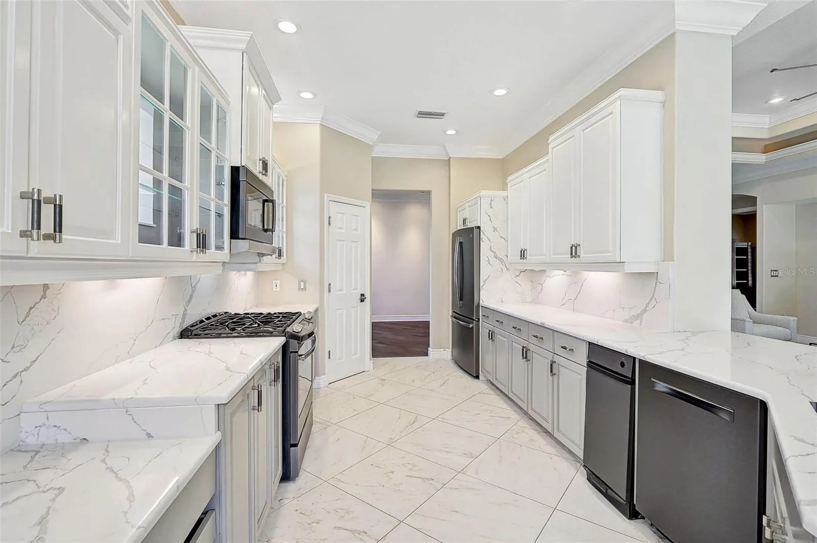 **IMPRESSIVE, MOVE-IN READY, POOL HOME in the Secure and Coveted OAKS PRESERVE, MAINTENANCE-FREE COMMUNITY** This residence boasts an open floor plan that is ideal for entertaining, along with a screened and spacious outdoor pool area that provides privacy and overlooks a nature preserve. Recent updates include a new kitchen, bathrooms, flooring, fans, a four-year-old roof, a newly pavered driveway, and hurricane-rated patio and bedroom doors. All living areas have wood floors or Italian porcelain tile. The kitchen features a gas stove, Waterworks faucet, quartz countertops, modern stainless appliances, and solid wood cabinetry. The breakfast nook adjacent to the kitchen has aquarium glass windows offering a view of the pool and foliage. The family room glass doors stack behind the wall, providing views of the pool and preserve, and they are hurricane-rated. The owner’s suite includes two walk-in closets, a linen closet and space for a sitting area or office. Hurricane-rated glass doors overlook the pool. There is a separate study/office/bedroom with built-in wood cabinetry and space and wiring for a media room. The guest suite has an ensuite bath updated with Quartz counters and a vessel sink. Enjoy the utmost in outdoor living with a stunning, PebbleTec POOL with Travertine deck while there is ample space for a spa or additional seating within the spacious screened lanai. Connections for an outdoor kitchen are also available. A beautiful new pavered driveway adds that special curb appeal. In addition to the metal, roll down hurricane shutters, there is an electric hurricane protective screen spanning the lanai area to protect outdoor furniture. The extra deep two car garage affords additional storage options. A collection of unique bougainvillea and crepe myrtle rounds out the gardens. This lot is located outside the FEMA flood zone Bishops Court in The Oaks Preserve is a 24-hour guard-gated community with walking and biking paths. Additionally, there is a year-round heated community pool nearby. THE OAKS is a distinguished, 24hr Guarded, Country Club Community which boasts many accolades including: Platinum Club of America, Emerald Club of the World, Elite Distinguished Club of the World and One of America’s Healthiest Clubs – where amenities include Three Restaurants, Ballroom, Two 18-hole championship GOLF courses, award-winning RACQUETS program with 12 Har-Tru Hydro-Grid TENNIS courts, 4 PICKLEBALL Courts, wonderful CROQUET facility, state-of-the-art FITNESS center and junior Olympic, heated community SWIMMING POOL, Bocce, Basketball Court, Playground and more! The Oaks is just minutes from nationally ranked Pine View School, the Legacy Bike Trail, area Beaches and all that Gulf Coast living has to offer. Membership is required and there is NO WAITLIST for GOLF or SOCIAL Membership. **PLEASE ENJOY VIEWING the 3D VIRTUAL TOUR**