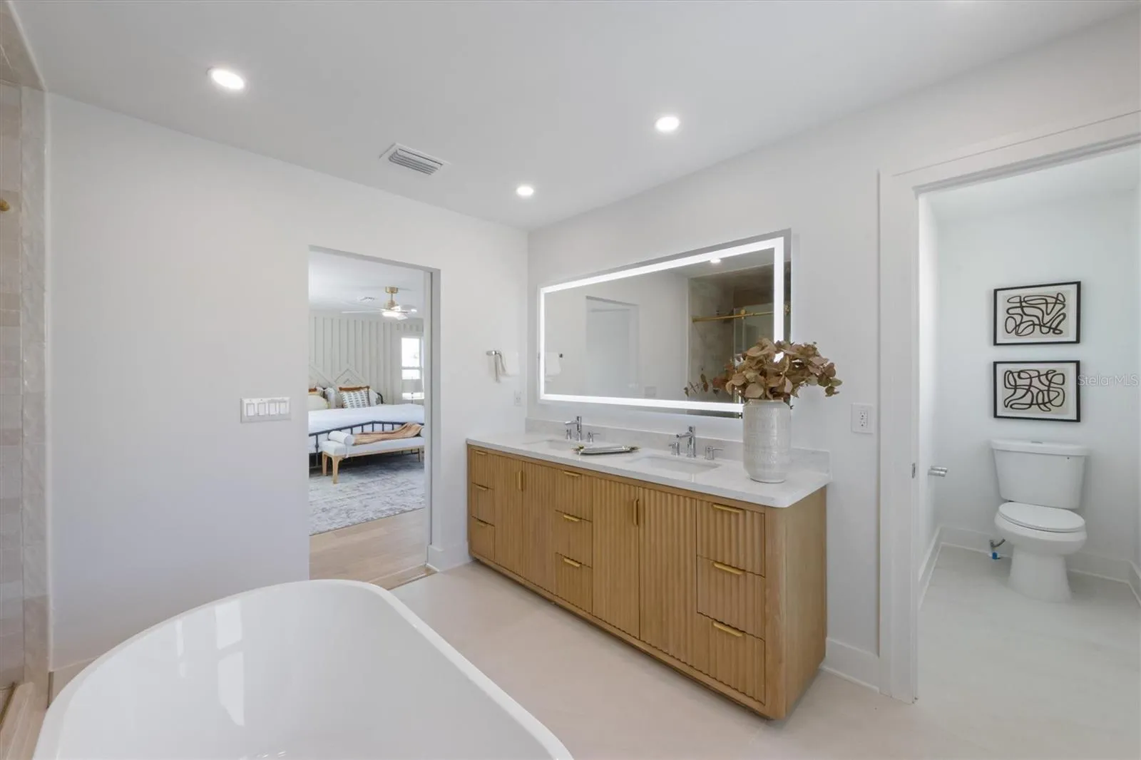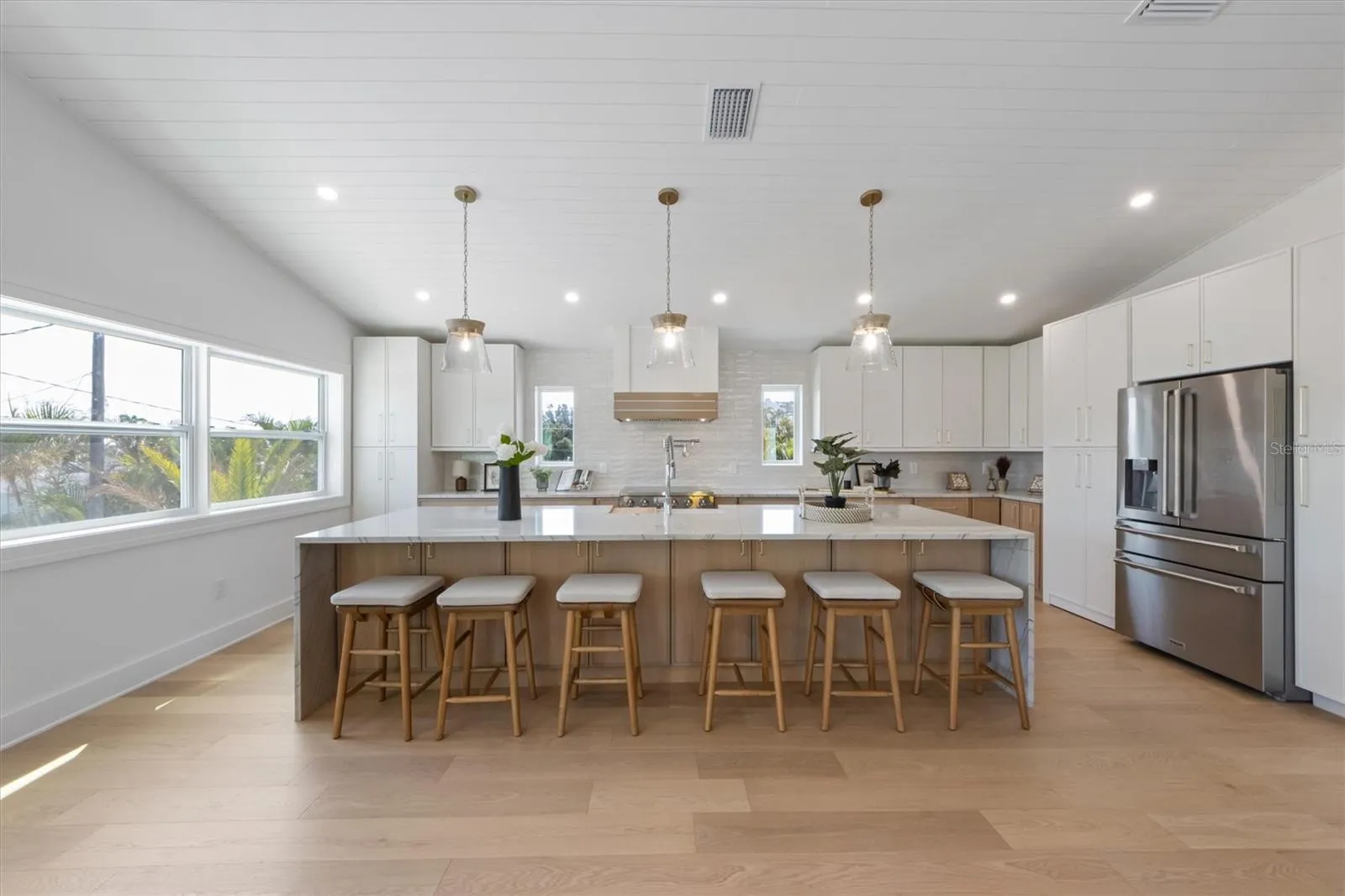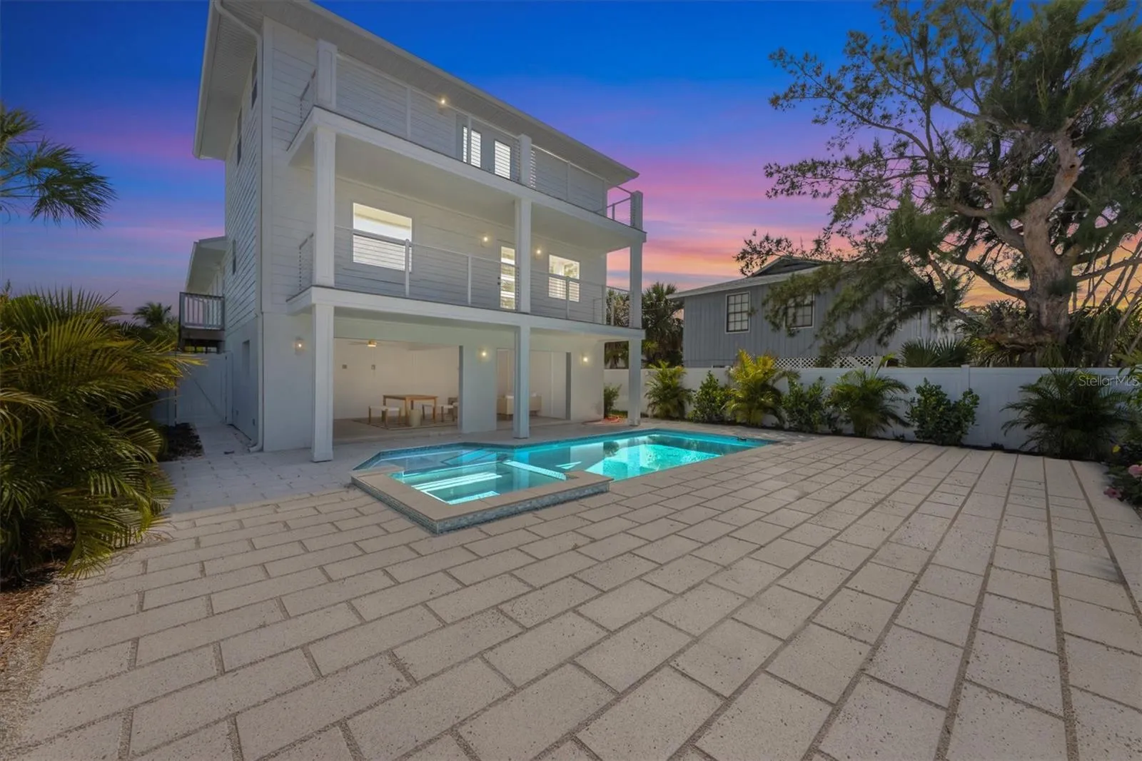 Under contract-accepting backup offers. THIS is PARADISE! Enjoy this like-new construction beautiful 3 bedroom, 3 bathroom multi-leveled home. Nestled on the north end of Anna Maria Island just steps away from the sparkling waters of the Gulf and Bay as well as close to Pine Ave! Enjoy the natural sunlight open concept and the professionally decorated interior design. You will absolutely love the open floor plan on the main living level and deck that overlooks the pool/spa and tropical backyard. The kitchen is decked out with top notch Quartz waterfall counter-tops and a large kitchen island with a hidden walk-in butlers pantry. 3 bedrooms perfectly spaced out for added privacy all with updated modern bathrooms. Your primary bedroom features a double sided luxury step-in shower with rainfall shower heads in the ensuite bathroom with dual sinks and ample counter space and a standalone bathtub. Enjoy the lush backyard and the coolness of your private heated pool and covered outdoor kitchen area! Relax in the tropical oasis of a beautiful backyard. Would be a great investment property and can be rented 1-7 days, never a vacation rental, so it has no wear and tear from a busy rental! Schedule your showing today! **Roof 2025, Pool + Equipment 2024, house comes with a 10 year Termite warranty.**