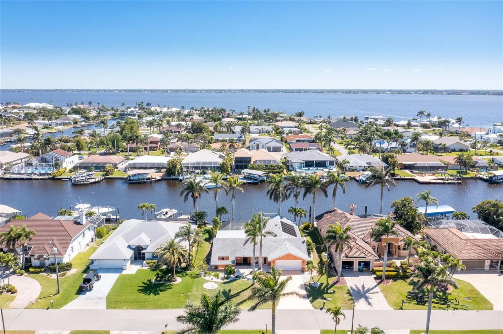 HUGE PRICE IMPROVEMENT–Seller Motivated!! Welcome to your Waterfront Paradise in Southeast Cape Coral! You can use this to BUY DOWN your interest rate or usr towards closing costs and prepaids! This unique home is situated on a 200-ft wide Direct Gulf-access canal—just minutes from the river~no bridges! Wake up to breathtaking sunrises and enjoy serene water views right from your lanai. This boater’s haven features a renovated dock (2023) with new pilings and a 12,000 lb boat lift—just bring your boat and start living the Florida Life! Located in the desirable Savona neighborhood, this spacious home boasts 4 bedrooms, 2 bathrooms with large walk in showers, living/family rooms and bamboo flooring throughout, complimented by elegant Dark Walnut and Maple custom built in features. The beautifully remodeled kitchen boasts brand-new Quartz countertops with a stunning waterfall island, perfect for entertaining. Step outside to your oversized lanai, where you can relax by the recently resurfaced pool, complete with solar heating (currently disconnected). Additional upgrades include a new A/C (2021) and new electric run to the dock (2023). This is more than a home—it’s a lifestyle. Don’t miss your chance to experience waterfront living at its finest!