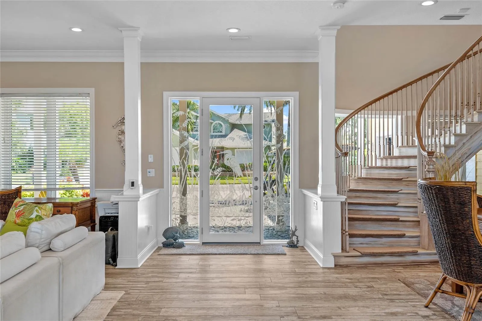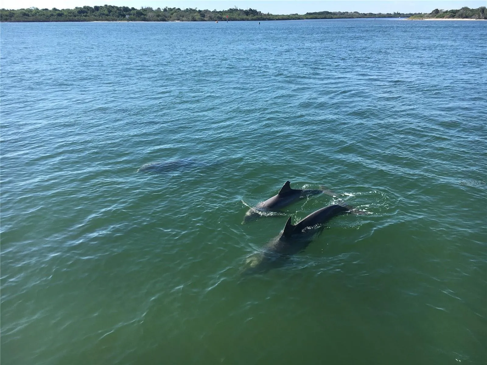 Understated Elegance and Refined Coastal Living Awaits You. Truly TURN KEY! Come See this Direct Intracoastal Front Home on New Smyrna Beach’s coveted SpyGlass Lane. Perfectly situated on a private cul-de-sac and deep, wide water. Spectacular views from all the main living spaces. Minutes to the Inlet and a short walk to the beach, you can’t get a better location than this! The address may be SpyGlass Lane but no telescope is required to enjoy the dolphin show and constant boat parade from the comfort of this stunning custom home. From the moment you enter, your eyes are drawn to the incredible water views and open spaces. From the gracious entry area you immediately notice the high level of custom details distinguishing this home. The large living room features a natural gas fireplace and custom built-in cabinetry. From the living room you have immediate access to the spacious covered porch and to the adjacent dining area doubling as a billiard room through the magic of a custom pool/dining table. Flowing from the dining area you are invited into the large “Chef’s” kitchen and family room spaces. The kitchen features a walk-in pantry and high end stainless appliances including: french door refrigerator with “flex” drawers for either freezer or additional refrigerator space, natural gas six burner range plus griddle and two ovens, range hood, dishwasher, microwave, warming drawer and beverage refrigerator. The center piece of the kitchen is a 6′ x 9′ island with gorgeous stone counter top and integrated counter height seating. Adjacent to the kitchen is a large family room with an additional natural gas fireplace, walls of windows and french doors opening to the river front porch. The elevated porch allows for views to the pool and spa, flagstone patio and the brand new (2025 built) dock with covered boat lift. A full bathroom on the main level allows for quick access to the pool area and for rinsing off after fishing or a morning in the surf. Store the golf cart, scooters, fishing equipment and surfboards in the over-sized two bay garage with custom epoxy floor covering and built-in storage system. Upstairs you find five bedrooms and four more full bathrooms. Also upstairs is a large media/bonus room with sink, refrigerator, cinema seating and built-in cabinetry. The Primary Suite offers spectacular river views and an elegant primary bath with garden tub, separate shower, double sinks, marble counter tops and a private water closet. This jewel on the river was beautifully renovated in 2018. Metal Roof new in 2022. Three Separate A/C units all new in 2018. Brand new elevated Dock with covered 12,000 lb lift completed in August 2025. The new dock includes a 4 Pole Setup to accommodate additional, large boat. Be sure to check out the photos and Virtual Tour / Video to fully appreciate this special home and spectacular location. Measurements are approximate and Buyer responsible to verify all dimensions.