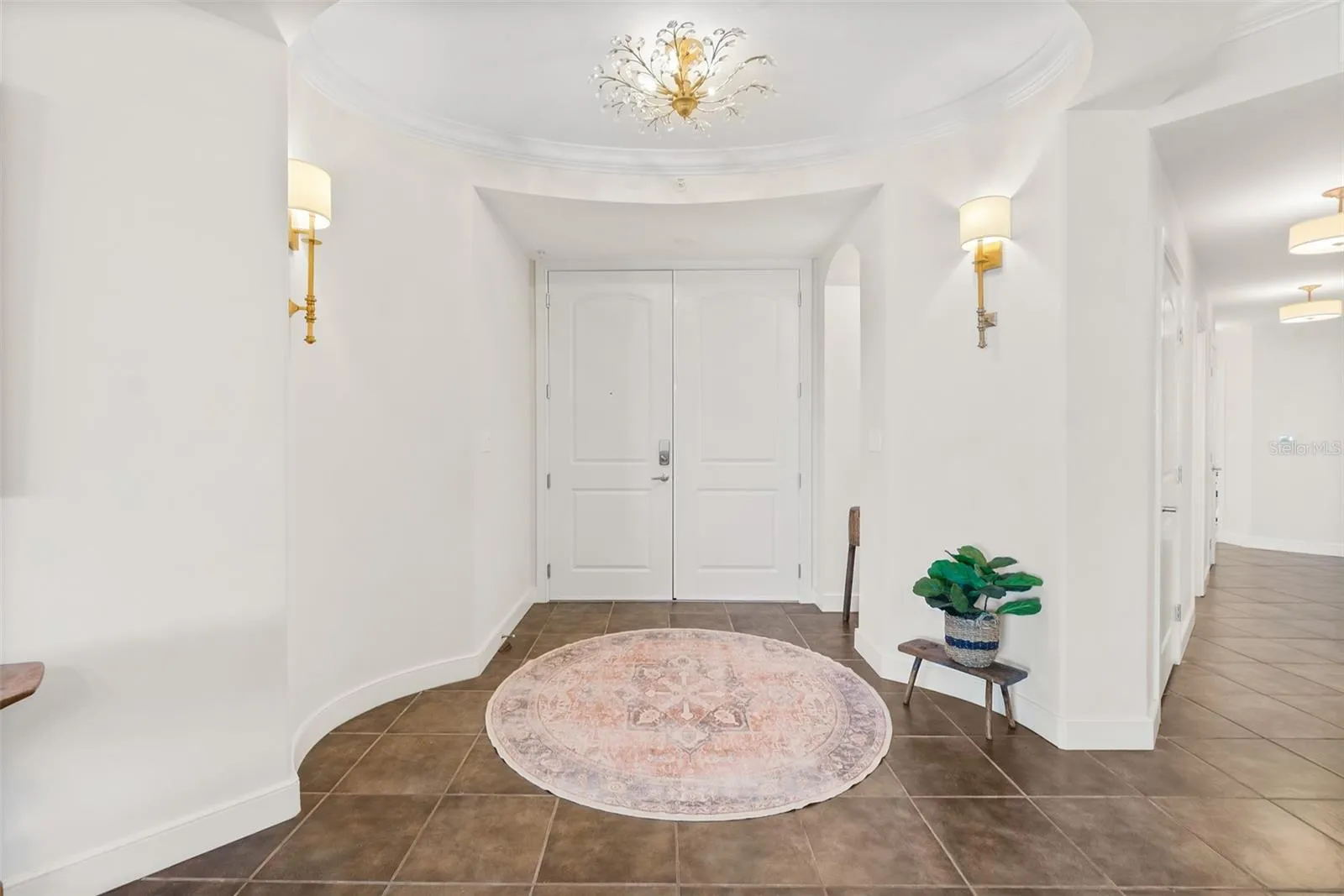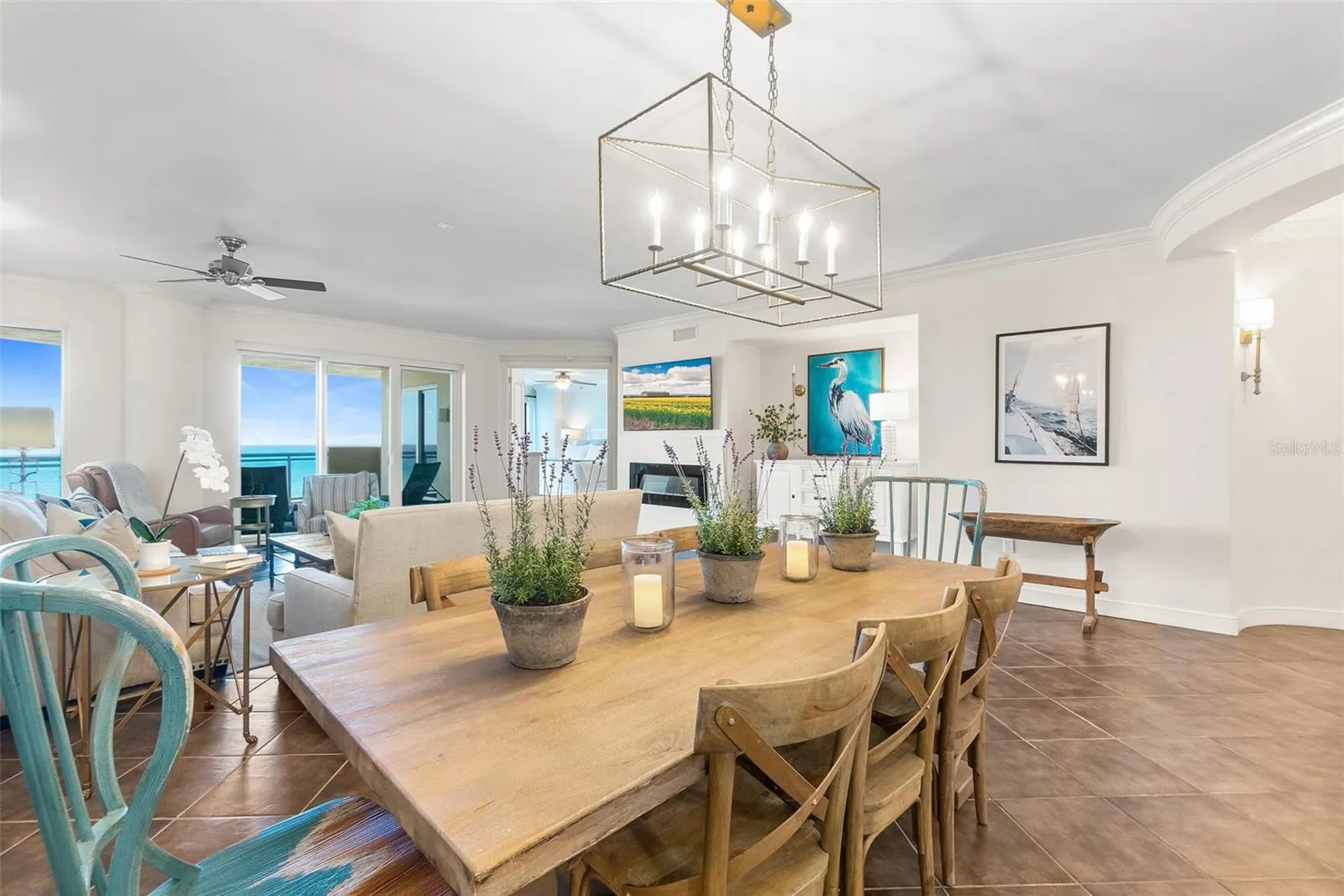 YOUR SEMI-PRIVATE ELEVATOR BRINGS YOU TO YOUR PERSONAL DESTINATION, WHICH ENSURES EXCLUSIVITY AND PRIVACY. STEP INTO THE GRAND ENTRANCE COMPLIMENTED BY A PRESIDENTIAL DOUBLE DOOR FOYER WITH ROTUNDA, CURVED WALLS, AND DESIGNER NICHE OUTFITTED WITH SHIP-LAP FEATURE WALL. DINNER PARTY READY, THE SOFT COLOR PALATE, AND TOUCHES OF NATURAL WOOD TONES ALLOW THE OCEAN VIEWS TO TAKE CENTER STAGE FROM THE LIVING ROOM/DINING ROOM. THE LARGE TRESTLE FARMHOUSE TABLE MELDS PERFECTLY WITH THE FLANKED WINDSOR CHAIRS. WHILE THE GLISTENING LIGHT OF THE CANDELABRA IN A RECTANGULAR OPEN FLAME CHANDELIER INCORPORATES BEACHFRONT SIMPLICITY ACCENTED AGAINST A GLAM MIRROR.