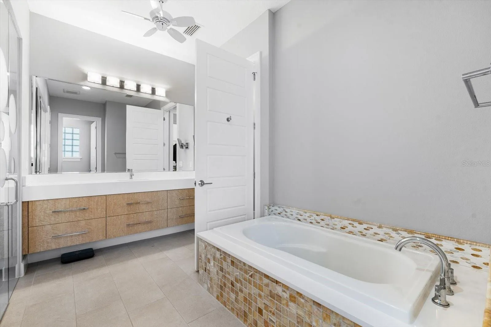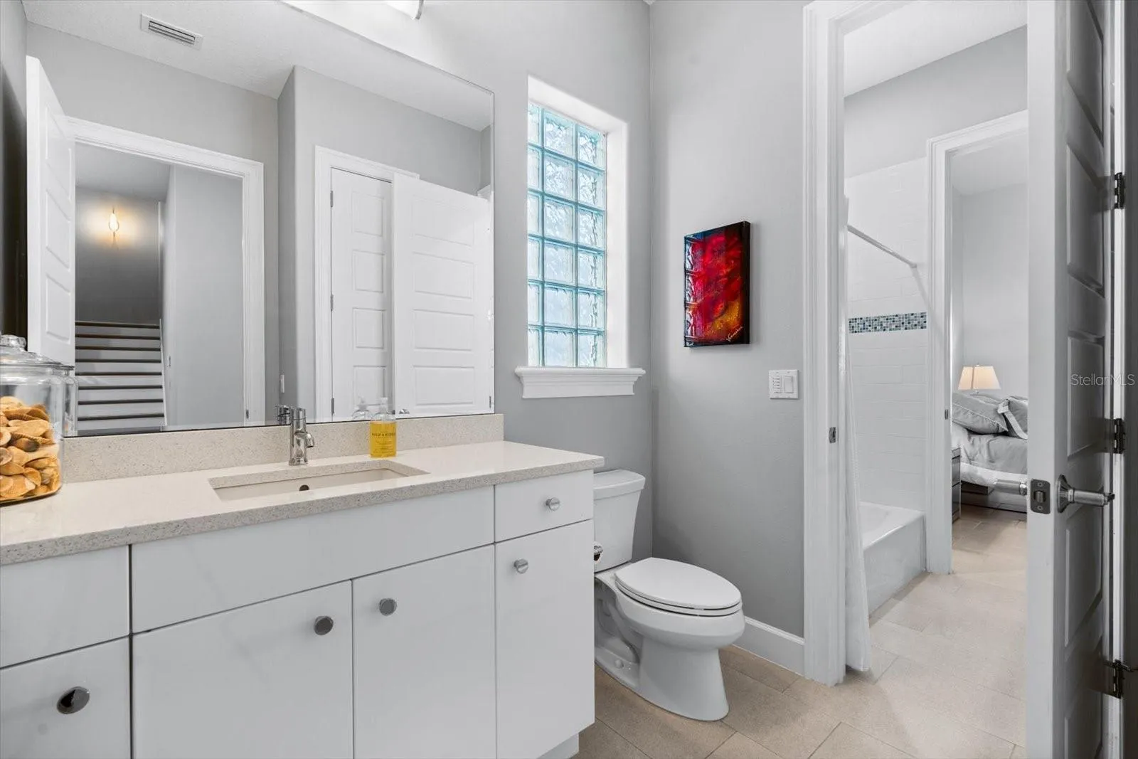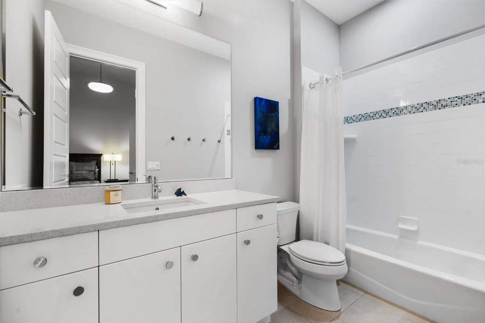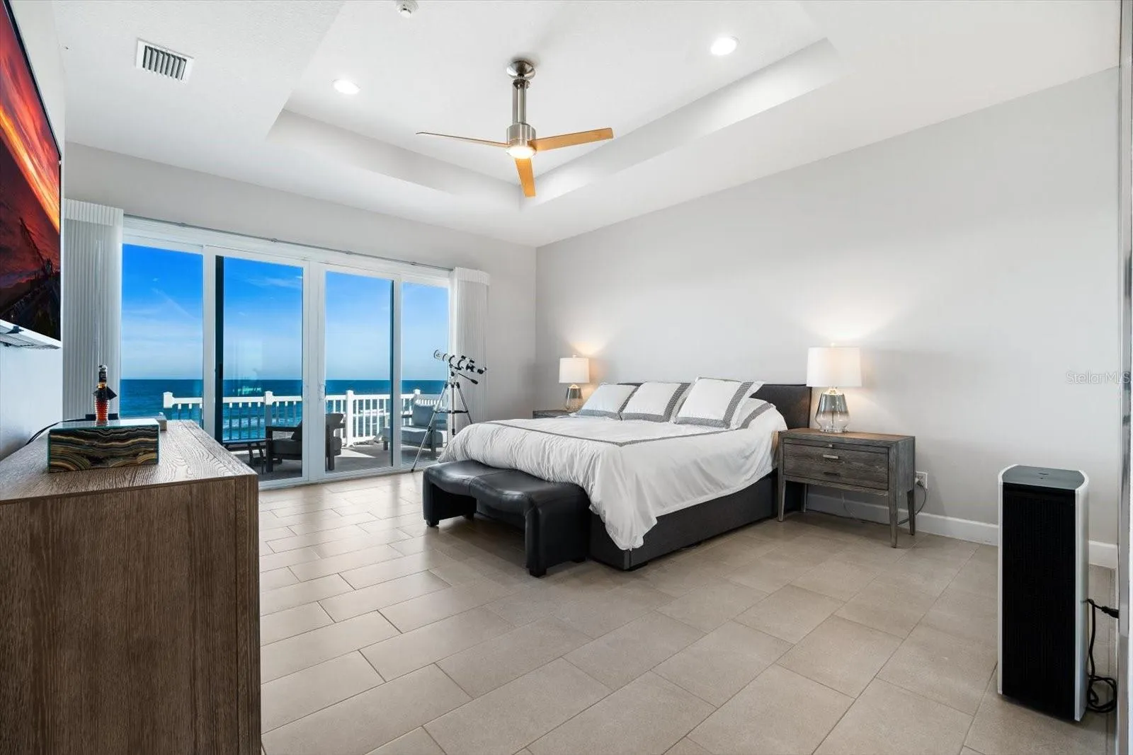 The top-floor primary suite is a haven of luxury, complete with a private balcony to enjoy sunrise ocean views, an additional laundry room for convenience, and an attached sitting area or office overlooking the ocean. The spa-like en suite features separate temperature-controlled his-and-her shower spaces. Every bedroom is accompanied by its own full bathroom, ensuring comfort and privacy for all.