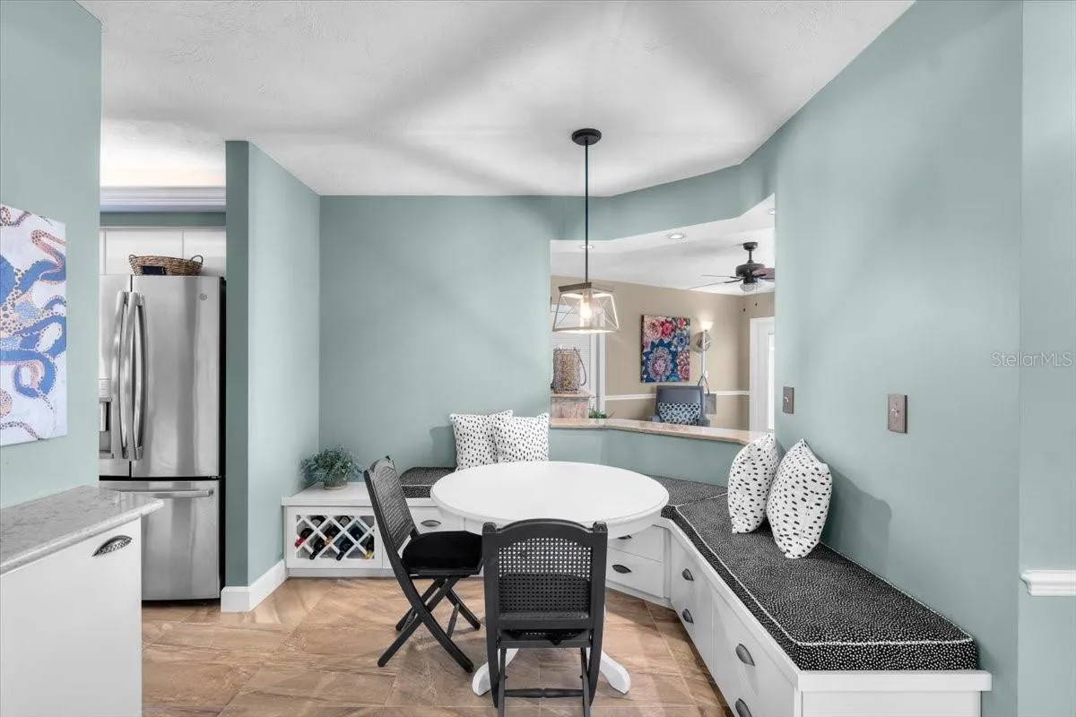 Immerse yourself in ultimate coastal living within this coveted Ponce Inlet condo residence! With three bedrooms and three baths, this oceanfront northeast end unit offers a picturesque escape from the stress of everyday life. Past the grand lobby, discover more of your 6th-floor haven where earth tones, stately columns, exquisite crown molding, and Turkish ceramic tile flooring define every corner of the stunning interior, creating an atmosphere that’s both laid-back and refined. Warm and alluring, the sunlit living areas are surrounded by newly installed expansive picture windows framing breathtaking ocean panoramic views. Hold intimate celebrations under the dining area’s elegant chandelier or enjoy more casual fare in the pendant-lit breakfast nook with custom banquet seating. Bright cove lighting sets a lively ambiance as the avid cook prepares delectable courses in the kitchen, equipped with brand-new top-of-the-line appliances, abundant cabinetry, a pantry, and chic quartz countertops extending to the multi-seater peninsula.
