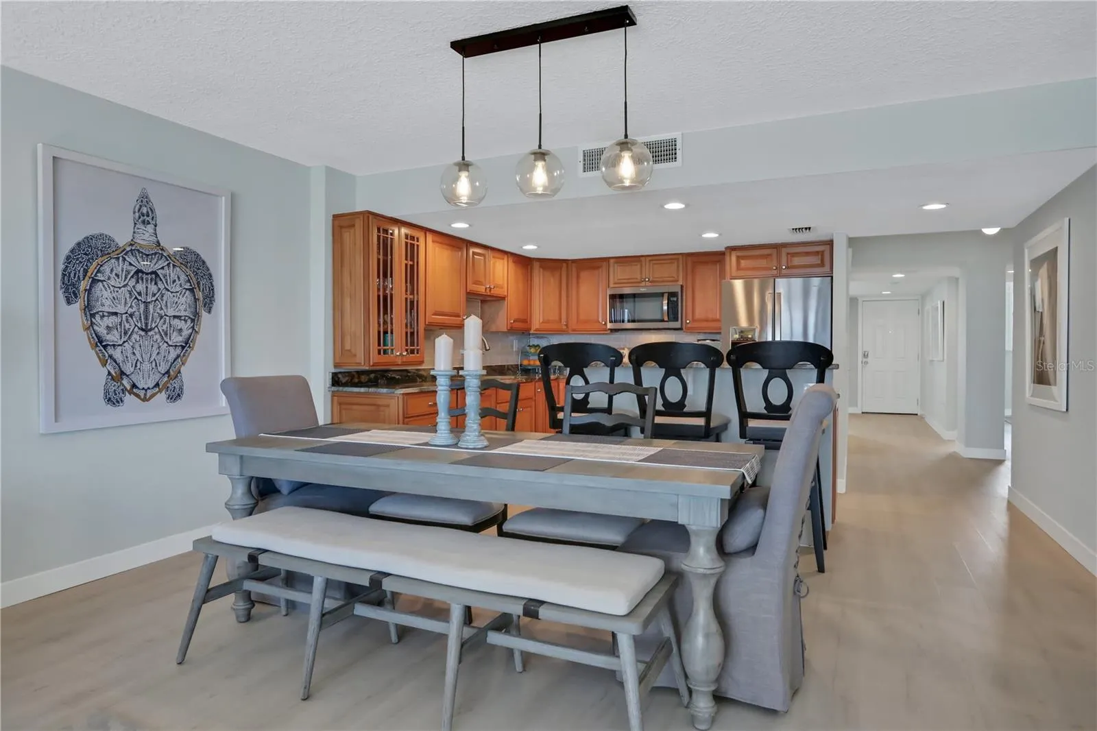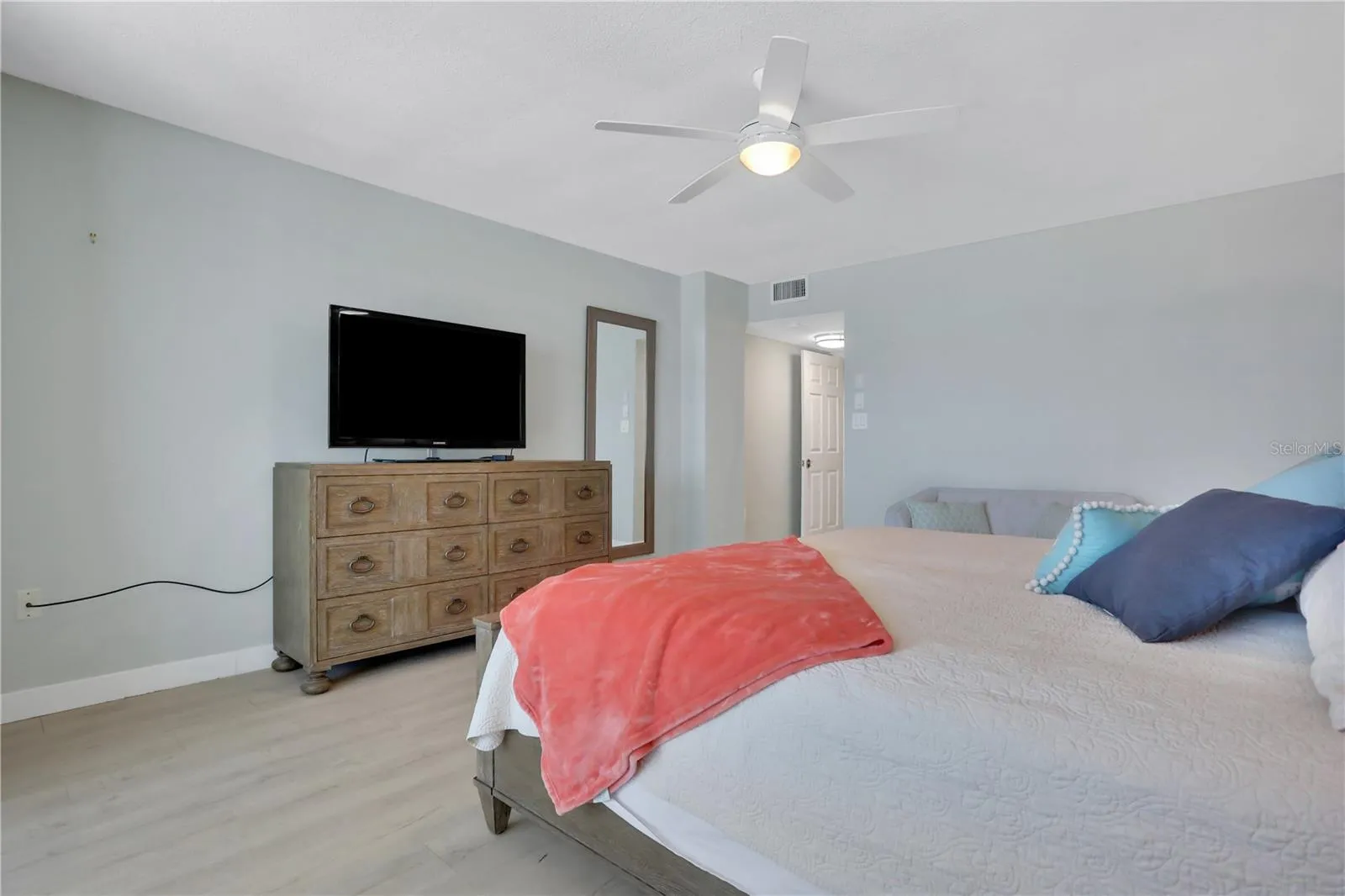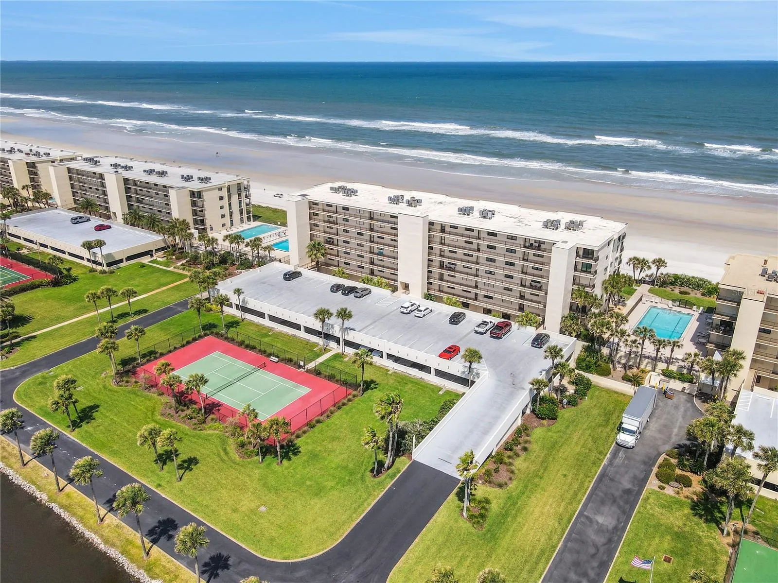 Discover your coastal oasis at Sand Dollar III, perfectly situated on the shores of St. Augustine Beach. This delightful 5th floor, 3-bedroom, 2-bathroom condo features an airy open layout, ideal for both relaxation and gatherings. Step onto the picturesque balcony, also accessible from the primary suite, and soak in mesmerizing views of the serene surroundings. Complete with pools, tennis courts, and private beach access, every day feels like a getaway. Sand Dollar III offers an array of amenities including a clubhouse with a kitchen, lounge, game tables, gym, and extra storage space. Open parking just outside the unit, this condo epitomizes coastal living at its finest. Fully furnished with all appliances, it’s ready to welcome you home to beachside bliss. Building has an elevator and the first bedroom has been enclosed with a barn door.