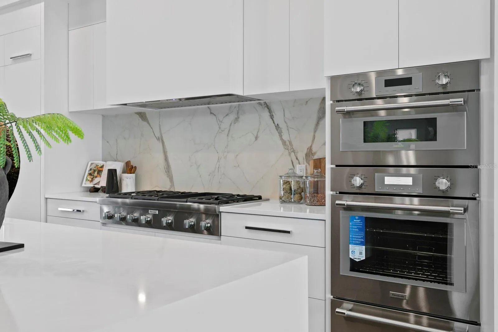 Stunning Venetian Isles new construction waterfront luxury. Built on pilings and reinforced construction, this home offers strength, stability, and lasting confidence. Poised gracefully at the edge of Tampa Bay, enjoy sweeping, wide bay views that extend across the shimmering water to the skyline of Tampa Bay. Built by Tide Homes, a professionally designed interior provides a sophisticated aesthetic and curated elegance. From the moment you step inside, you’re welcomed by warm Chesapeake hardwood floors and a serene palette of premium finishes. The expansive main living area delivers floor-to-ceiling water views and a dramatic gas fireplace and feature wall that integrates a glass-enclosed wine cellar anchoring the formal dining area. A sleek chef’s kitchen is crafted with carbon-neutral Dekton countertops and backsplash, Thermador and Bosch appliances, a butler’s pantry/full prep kitchen with additional dishwasher and refrigerator, along with an expansive waterfall island and access to the gracious main terrace with outdoor kitchen. The main living level also features three ensuite guest bedrooms and one of two laundry rooms with LG appliances. Upstairs, a versatile bonus room provides an ideal location to relax, host a game night, or entertain with ease. A custom entertaining wet bar and media wall set the tone, while expansive glass doors flow to the waterfront terrace, along with spiral stairway access to the rooftop terrace offering panoramic views. Through the double doors, a private primary suite greets you with spectacular views, impressive custom closets, and a spa-inspired bath featuring backlit mirrors, expanded glass shower, and deep soaking tub. This level also includes a powder bath and laundry room, along with an additional ensuite guest bedroom and walk-in closet. Experience modern Florida coastal living outdoors, with over 750 feet of covered lanai space, a saltwater heated pool and spa overlooking the bay, and a private dock for year-round water recreation. From the 3-stop commercial-grade glass elevator to marine-grade outdoor cabinetry, dual laundry rooms, and a 3-car garage, this modern waterfront escape delivers PGT impact-rated windows and sliders and impact garage doors. Enjoy convenient access to parks, recreation, and renowned Gulf beaches, with close proximity to downtown St. Petersburg’s vibrant arts and culinary destinations.