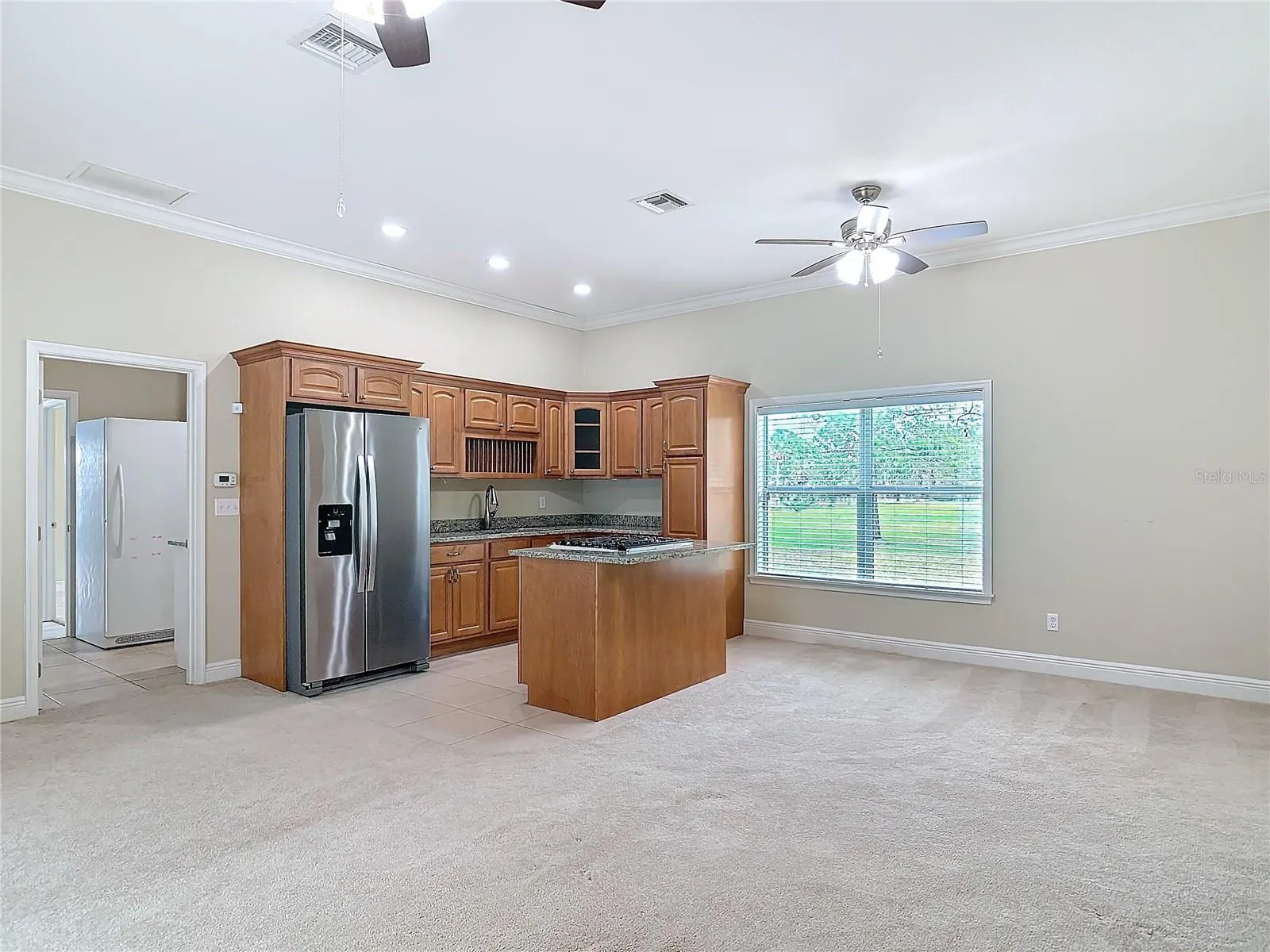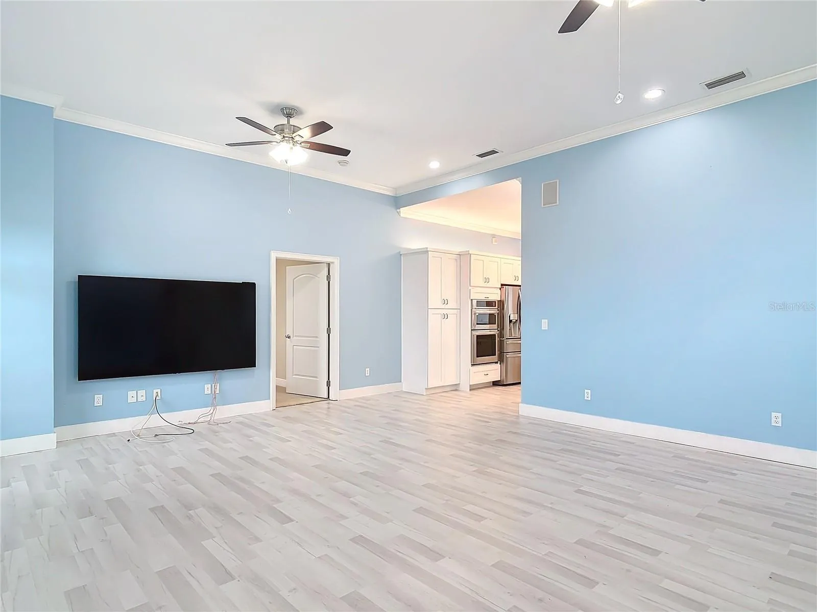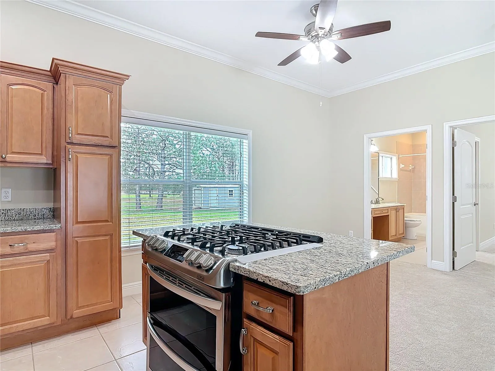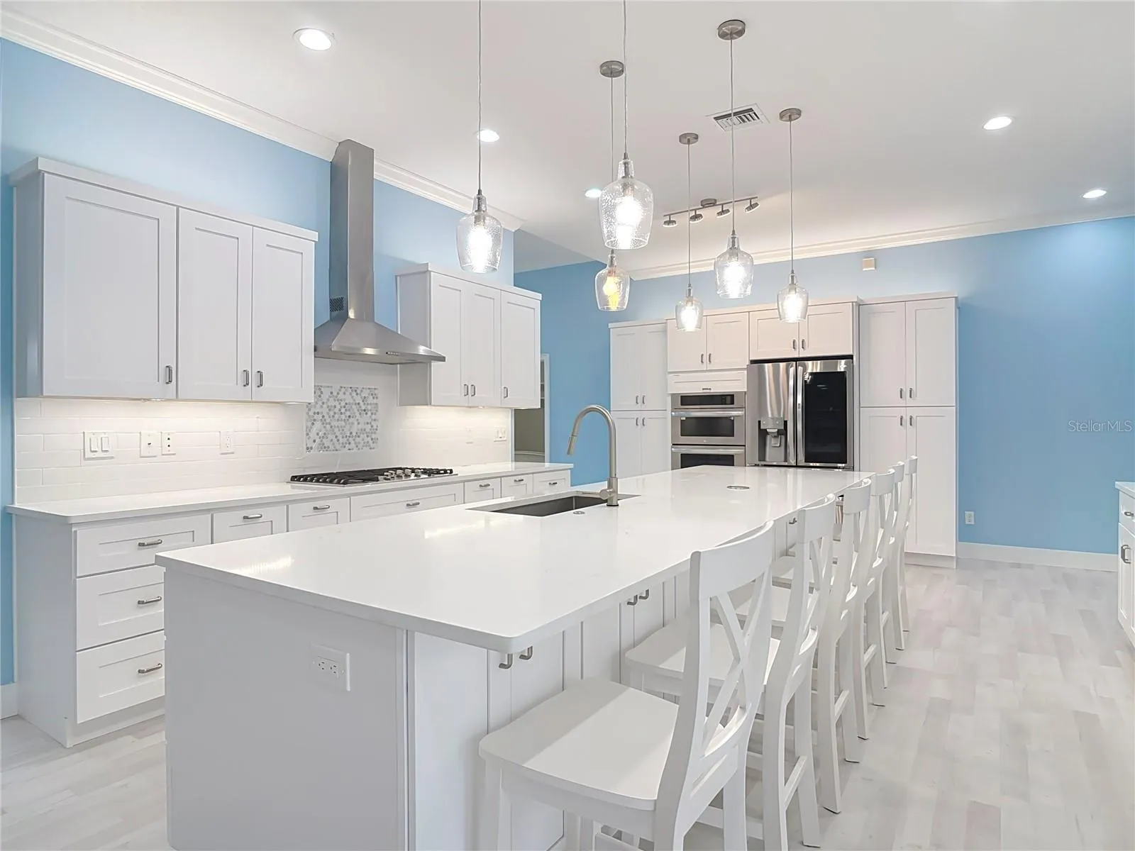 Step inside to a completely renovated kitchen (2023) featuring top-tier LG appliances, a 13’ quartz island with seating for 6-8, a five-burner gas cooktop, double wall oven, beverage center, wine fridge, and custom lighting. The main living areas boast waterproof luxury vinyl plank flooring (2023), while the updated master bath (2024) showcases new vanities, quartz counters, and smart mirrors.