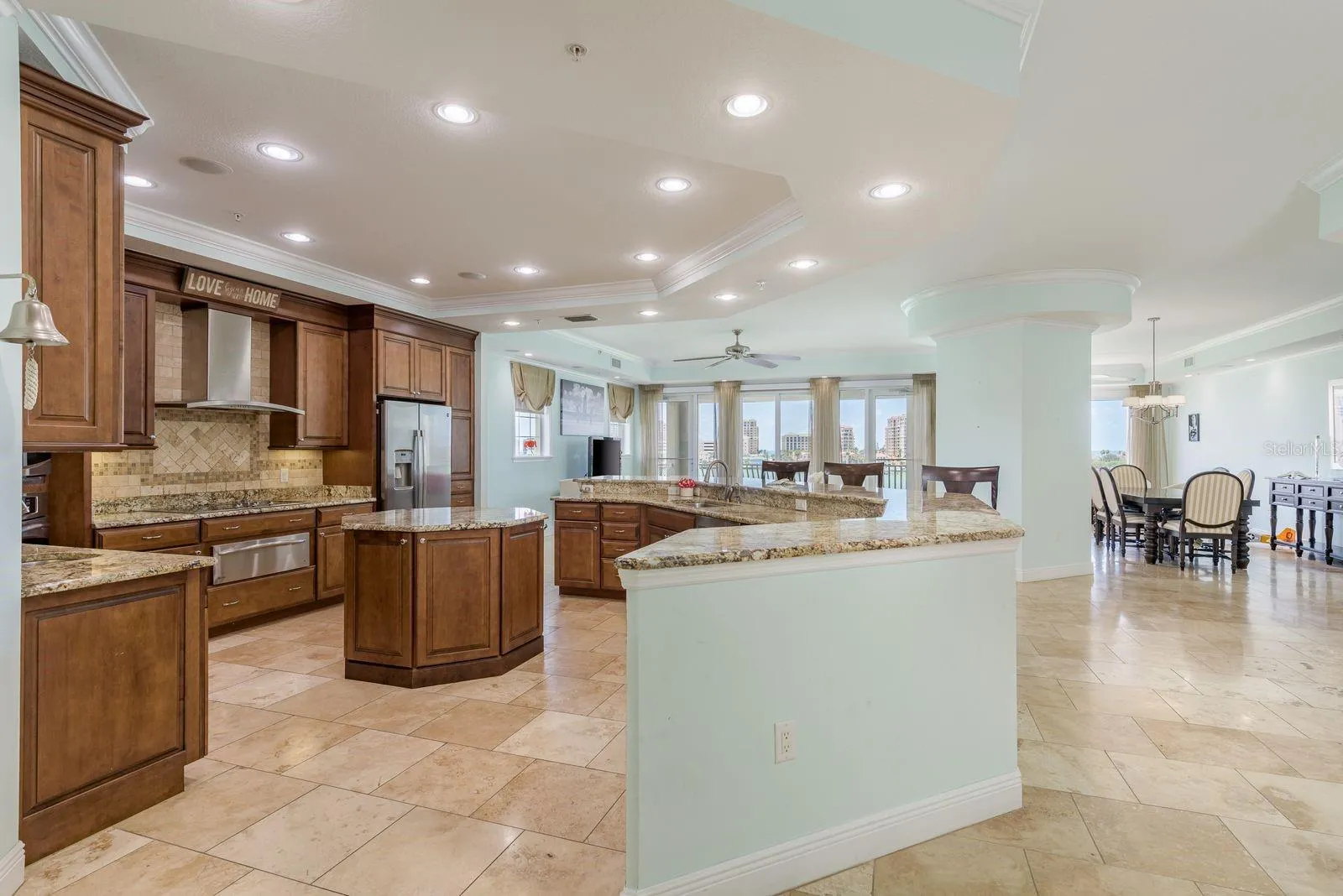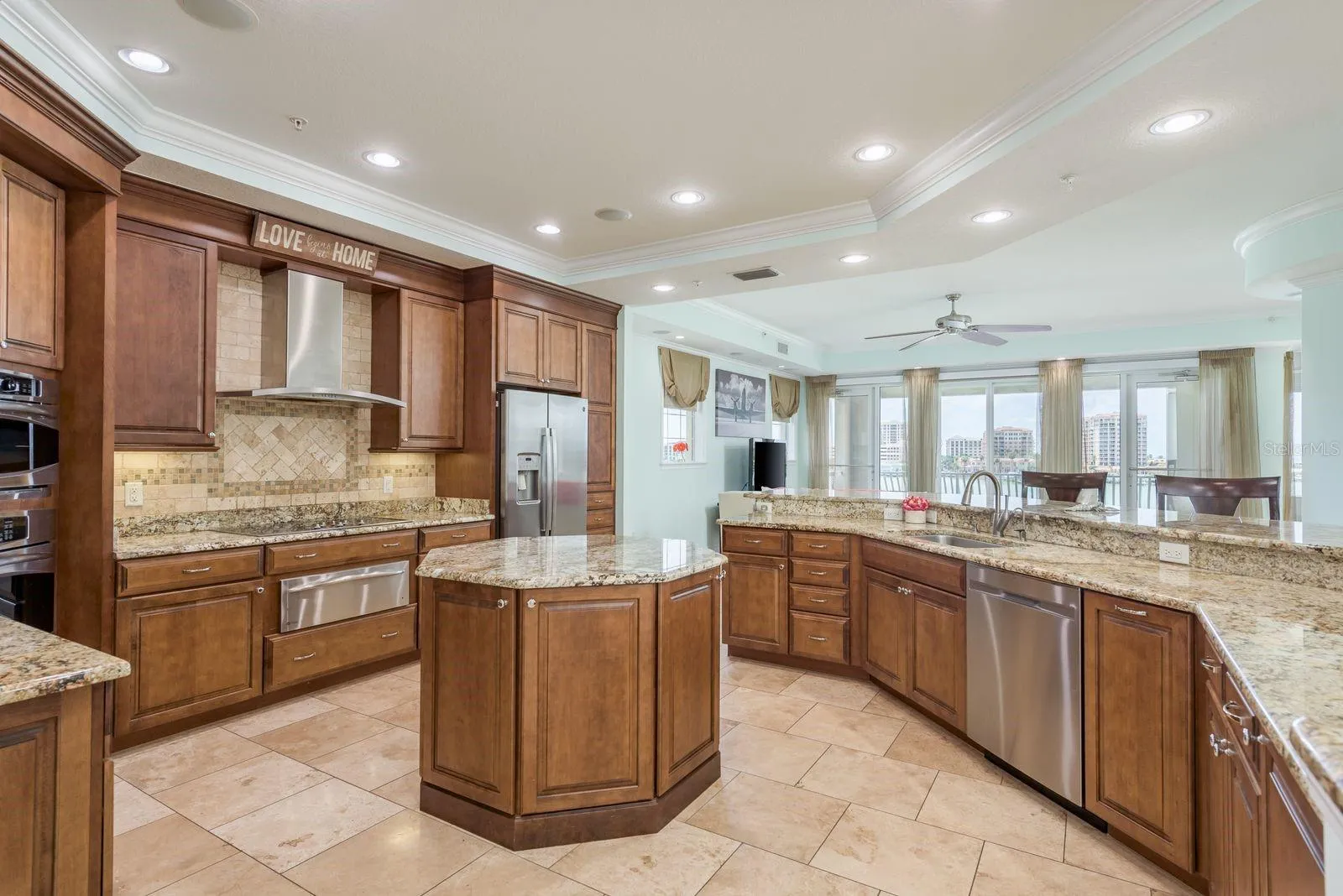 Luxurious Penthouse Living with Unforgettable Views in Clearwater Beach! Discover elevated coastal living in this remarkable penthouse condo, ideally located in the prestigious Majestic Point on Island Estates—just moments from the sugar-white sands of Clearwater Beach. Offering 3,656 sq ft of refined living space, this top-floor residence features 3 bedrooms plus a dedicated office, 3 full bathrooms, a private boat slip, two under-building parking spaces, and exceptional storage. With only two penthouses on the top level, you’ll enjoy rare privacy and exclusivity. Take in sweeping, unobstructed views of the Intracoastal Waterway and the Gulf of Mexico—stunning sunsets await you every evening from the expansive balcony. Inside, the open-concept design blends effortless comfort with coastal elegance, enhanced by crown molding and soaring ceilings. The chef-inspired kitchen showcases granite countertops, an island, stainless steel appliances (including a wall oven, cooktop with vent hood, warming drawer, refrigerator, and dishwasher), and a charming prep sink with a foot-pedal faucet. It opens seamlessly to the living, dining, and sitting areas, all highlighted by power shades on the west-facing windows and doors and a convenient central vacuum system. From the main living space, step onto the oversized balcony—perfect for hosting guests or simply relaxing with the view. Just off the entry, a flexible office or workout room sits to the left, while to the right you’ll find a spacious laundry room with cabinetry, a utility sink, and an adjoining full bath with a shower. The primary suite is a serene, resort-style retreat featuring space for a sitting area, power shades, private balcony access, a massive organized walk-in closet, and a spa-like ensuite with a jetted tub, oversized glass shower with body sprays, double vanity, and gorgeous Gulf-facing views. The second bedroom shares access to a full bath with a tub/shower combo, while the third bedroom offers impressive size and dual closets. A built-in office/workspace in the wide hallway adds even more function and versatility. This exceptional condo offers it all—an unbeatable location, expansive floor plan, breathtaking views, pool and spa, boat dock with lift, under-building parking, and top-tier finishes throughout. Schedule your private showing today and experience the finest in Clearwater Beach penthouse living!