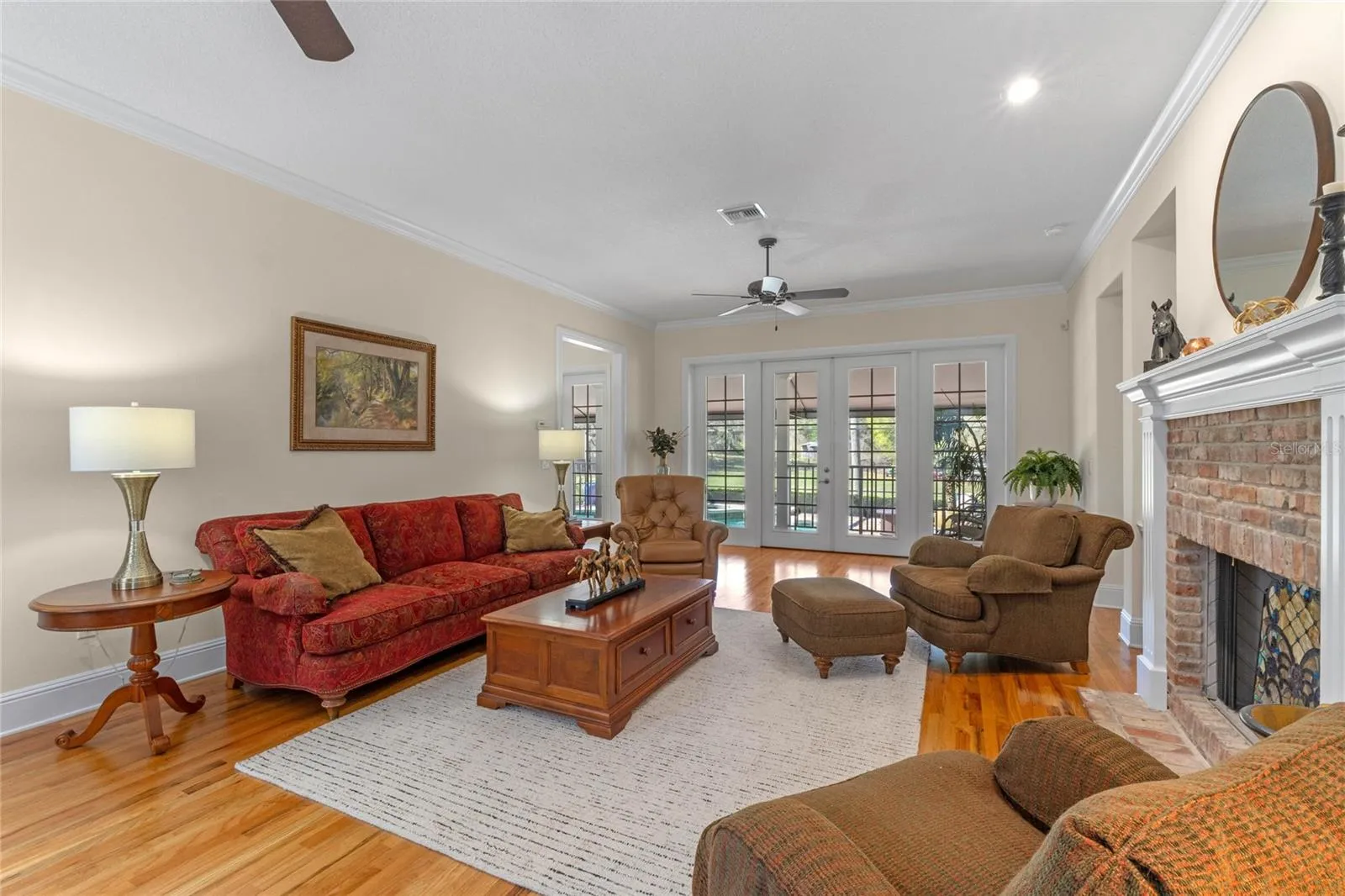 Under contract-accepting backup offers. One or more photo(s) has been virtually staged. Nestled on over 10 acres, this extraordinary 4,404 sqft custom-built home combines luxury, comfort, and exceptional craftsmanship. Offering an unparalleled living experience, the residence boasts four very large bedrooms, three of which have full baths and walk-in closets. The fourth bedroom is very large and has a half bath and closet. An expansive 45′ x 45′ garage awaits with space for 6-8 vehicles, featuring 14′ roller doors for easy access for boats or RVs, with an electrical RV hookup. The property’s impressive layout extends to a stocked pond, perfect for outdoor recreation and tranquil views. Inside, the gourmet kitchen will delight culinary enthusiasts with its sleek Corian countertops and Alderwood cabinets with an attached breakfast nook which leads to the covered lanai. Throughout the home, the beautiful wood flooring and 10’ ceilings create a sense of spaciousness and elegance. A cozy wood-burning fireplace offers the perfect ambiance for relaxing evenings in the living room. Designed for ultimate enjoyment, the backyard features a 16,000-gallon saltwater heated pool, an ideal oasis for entertaining or unwinding. This estate has been meticulously maintained, with a new roof, fresh paint, and newer AC and water heater units, ensuring peace of mind for years to come. This exceptional home blends modern sophistication with a tranquil, expansive setting, offering the perfect balance of luxury, comfort, and privacy. Welcome to your dream home!