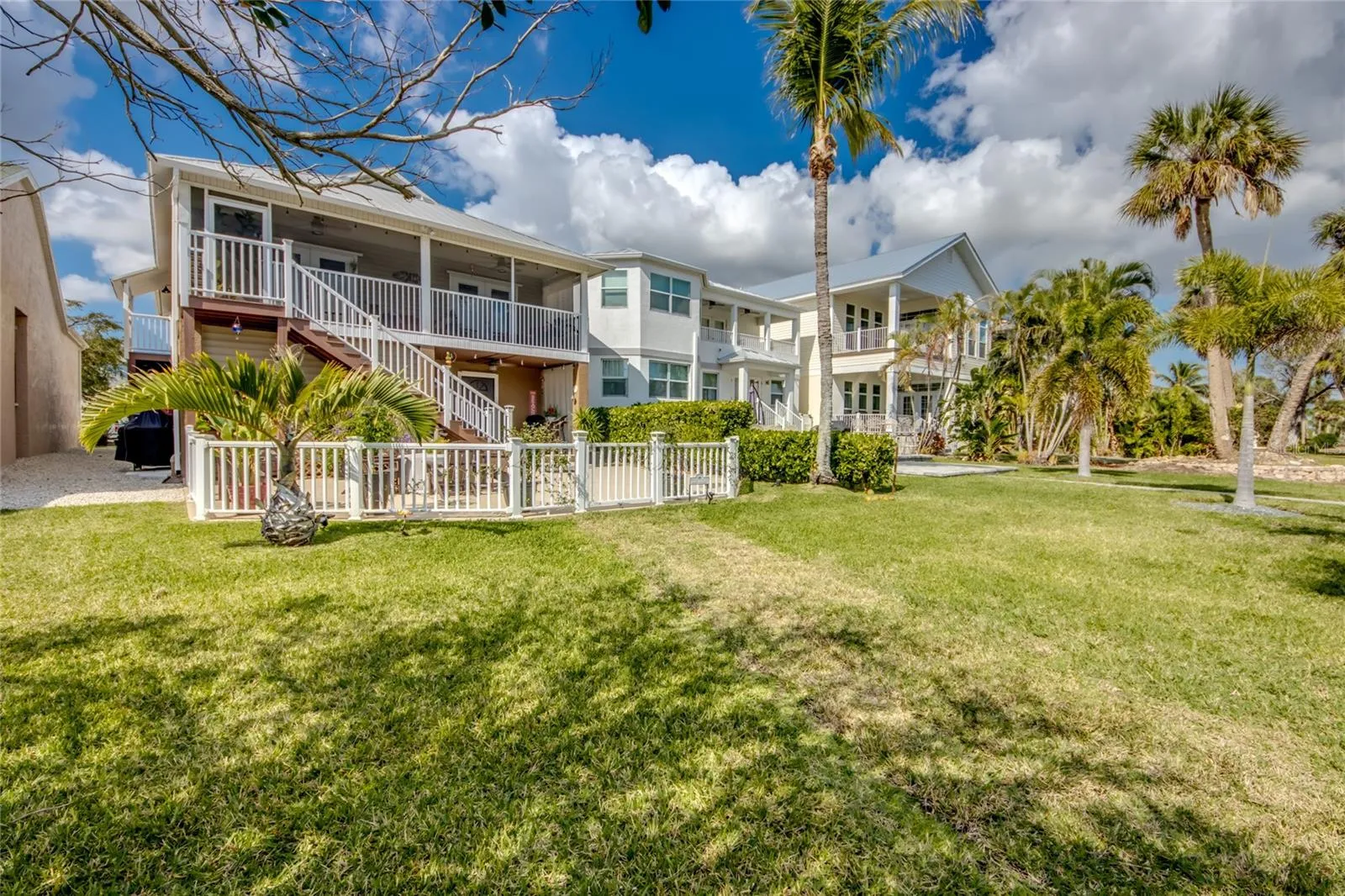 TURNKEY GULF ACCESS RETREAT —FULLY FURNISHED & READY TO ENJOY! Welcome to your Gulf-access paradise, offered completely turnkey with all furnishings included! This meticulously maintained 3-bedroom, 2.5-bath coastal retreat delivers direct Gulf of Mexico access and comes with your own private dock featuring new composite decking and electricity, ideal for serious anglers and sunset cruisers alike. Spend your evenings fishing for tarpon, snook, and mangrove snapper under the snook light or watching playful dolphins and gentle manatees glide by. Launch your kayak or boat and enjoy a scenic 25-minute ride to open water! The exterior shines with brand-new Khaki Brown Cedarmill fiber cement lap siding (2025), fresh paint, a brick façade, and a new vinyl fence with gates (2024). Both front and back stairs were re-decked with railings (12/2023), and impact windows (2024) add comfort, security, and efficiency. Built with strength and longevity, the first floor is solid concrete block, the second level features durable metal frame construction wrapped in HardiPlank siding, and it’s all topped by a metal roof for ultimate peace of mind. The TURNKEY interior captures true Florida style—light, bright, and breezy. High ceilings and luxury tile flooring complement the coastal décor, with every room thoughtfully furnished and move-in ready. The remodeled kitchen is a showstopper with quartz countertops, stainless steel appliances, cherry cabinetry with glass fronts, and a custom backsplash. Plantation shutters, updated lighting, and tasteful finishes carry throughout. The primary suite is a serene escape with a transom window, French doors to a large screened lanai, and a spa-inspired bathroom. Both full baths were fully renovated in 2023, and all doors were replaced in 2020 for a modern, cohesive look. Downstairs, the oversized garage is more than just parking, it’s a climate-controlled bonus area with a split-unit AC, perfect as a workshop, game room, or hobby space. Enjoy the perks of waterfront living without worry, thanks to the home’s elevated design. Take advantage of the community pool and boat ramp just steps away, ideal for a quick launch or a relaxing dip after a day on the water. Located near top-rated schools, beaches, shopping, and RSW Airport, this property offers the ultimate blend of lifestyle, location, and livability. Bring your suitcase and your sunscreen, everything else is already here. Schedule your private showing today and make this fully furnished, TURNKEY Gulf-access home yours!