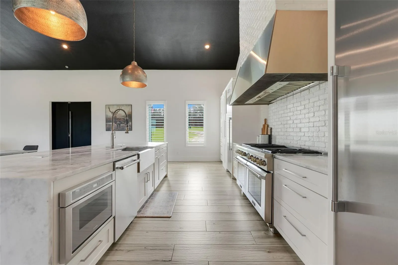 The primary suite is a serene retreat with an oversized rainfall shower, concrete soaking tub, custom dual vanities, oversized walk-in closet with custom built-ins, and a private balcony perfect for enjoying the incredible sunset views. Step outside to discover a fully equipped 1,412 sq ft garage with an RV/boat-height door—ideal for storing your toys for adventures. The garage’s ample space is perfect for housing a boat to take advantage of the nearby Clermont Chain of Lakes and its stunning network of waterways. The property also includes an oversized custom chicken coop, inviting you to embrace the rural lifestyle with convenience and comfort.