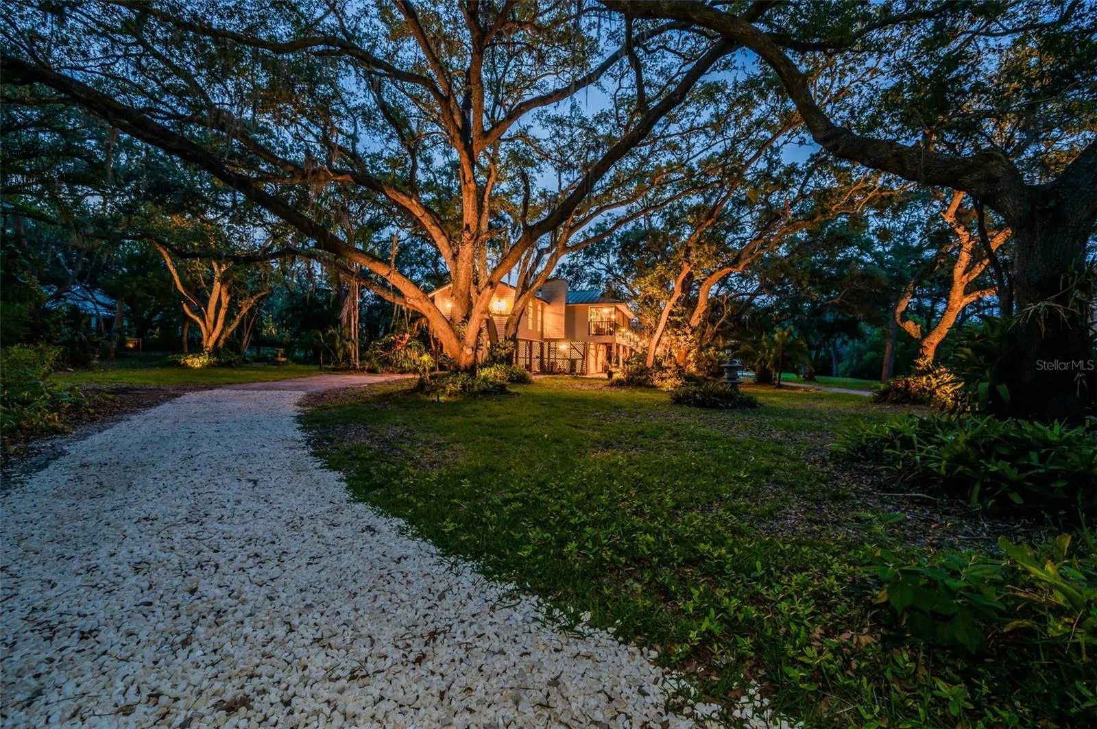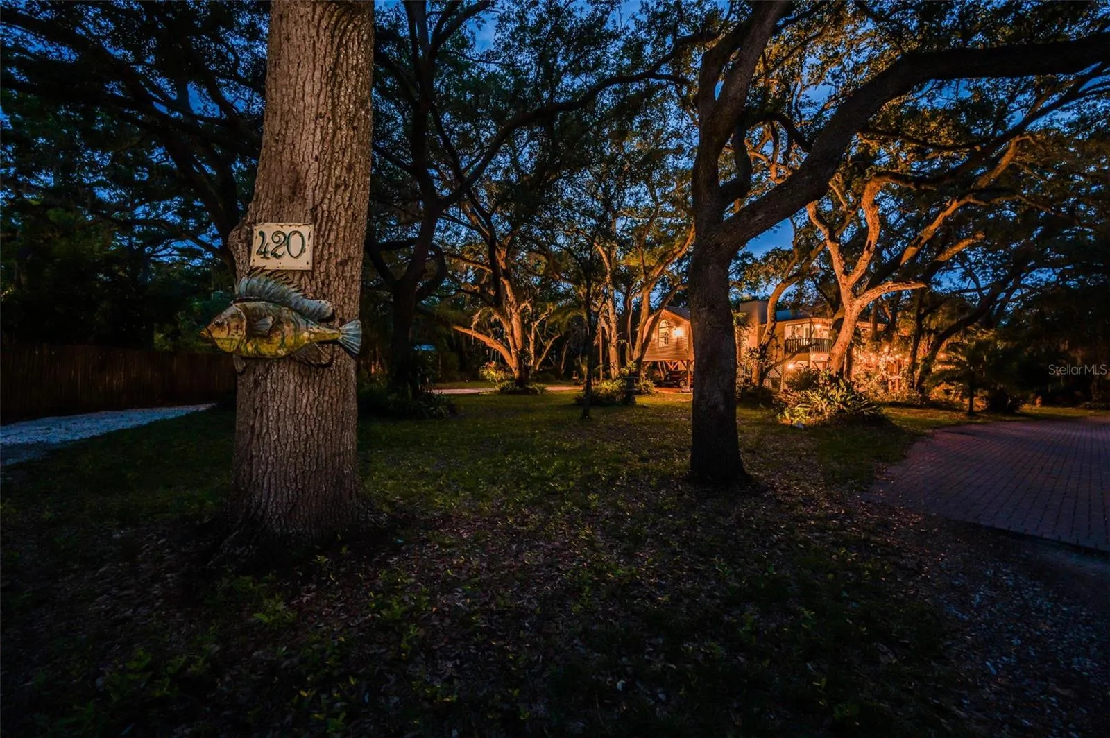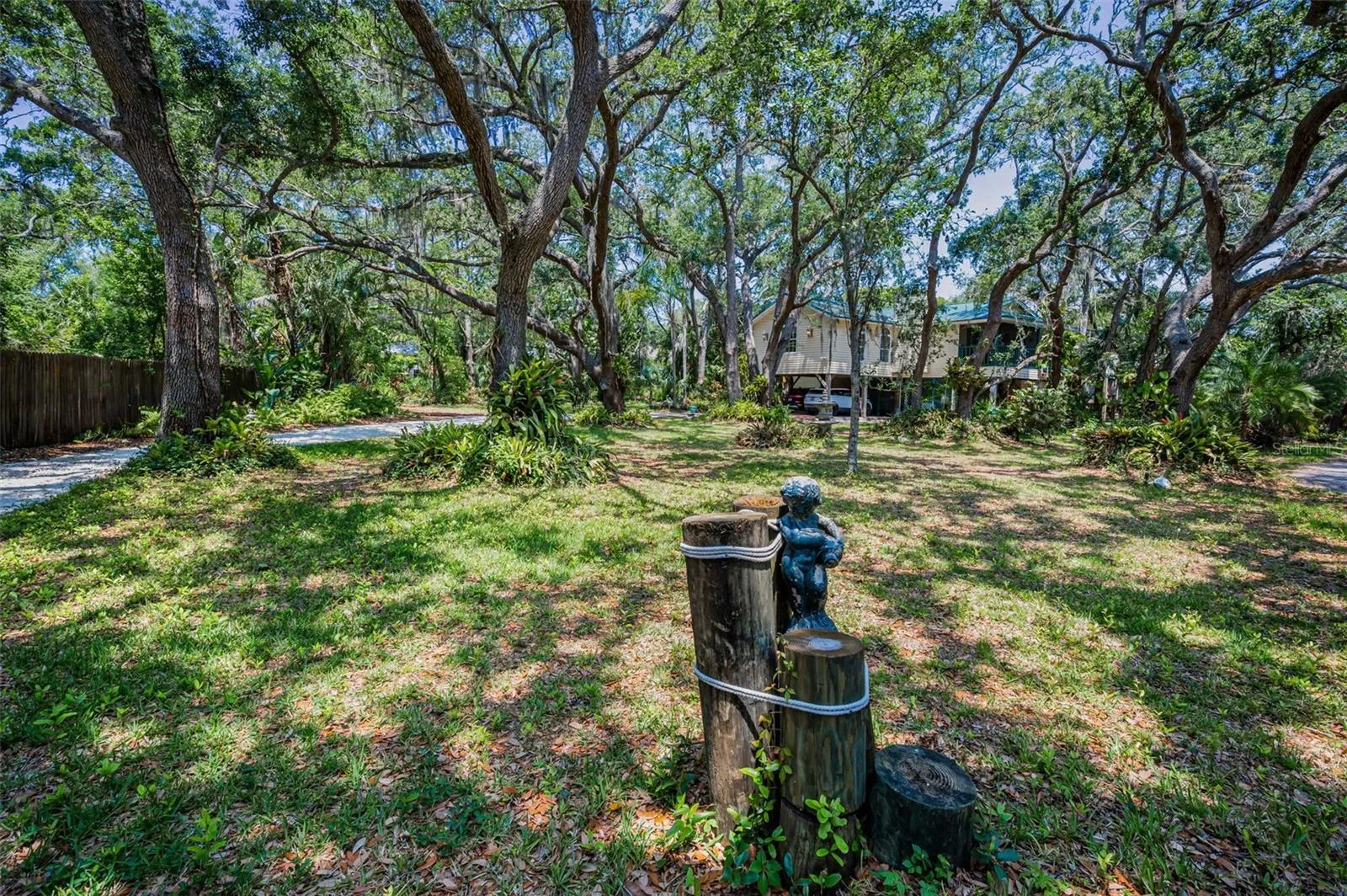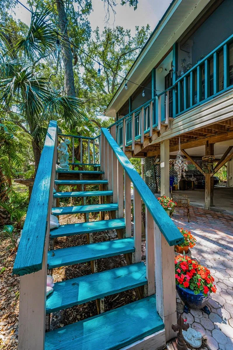 Tucked away in the serene and historic community of Crystal Beach, Florida, this secluded 0.58-acre property offers a rare opportunity to experience coastal living at its finest. Parcel of land is large enough to divide in two. As you journey down the private road, a distinctive metal fish hanging from a tree marks the entrance to this hidden gem. The stone driveway meanders through a lush landscape adorned with majestic century-old oak trees, graced with 8 grand staghorn ferns, and a variety of tropical plants that create a tranquil and inviting atmosphere. Ascending the exterior staircase, you’re welcomed by a spacious wrap-around screened porch, perfect for savoring the gentle coastal breezes and panoramic views. Inside, the open-concept living area features bamboo flooring, a cozy gas-burning fireplace, and a galley-style kitchen with a convenient breakfast bar. The adjacent sunroom, bathed in natural light through its expansive windows and vaulted ceiling, boasts a striking chandelier and can easily serve as a third bedroom, complete with two large storage closets. The generously sized primary bedroom comfortably accommodates king-size furniture and includes a walk-in closet. French doors lead to an en-suite bathroom featuring a walk-in shower and a luxurious slipper tub, strategically positioned to offer tranquil garden views—perfect for unwinding after a long day. Additional amenities include laundry hookups both in a hall closet within the main house and in the carport storage room, as well as covered carport parking for up to three vehicles. The back property line is fenced and offers direct gated access to the Pinellas Trail, ideal for walking, biking, and enjoying the outdoors. Just a short stroll away, you’ll find Live Oak Park, Gulf Shore Park, scenic shoreline walking paths, and a new community pier currently under construction. Crystal Beach is renowned for its laid-back, coastal lifestyle and rich history dating back to the 1900s. Residents enjoy easy access to the Gulf waters, opportunities for kayaking and paddleboarding in calm bays and inlets, and a close-knit community atmosphere. The area’s charm is further enhanced by its proximity to historic Tarpon Springs and Ozona, offering a blend of cultural experiences and natural beauty. With ample space for recreational vehicles and the freedom to personalize your property, this home presents endless possibilities. Whether you’re seeking a peaceful retreat, a family residence, or a unique investment opportunity, this Crystal Beach haven is ready to fulfill your vision. This exclusive property is available by appointment only, with access via a private road. Don’t miss the chance to own a slice of paradise in one of Florida’s most desirable coastal communities. Contact us today to arrange your private viewing. As the locals say, “If you’re lucky enough to live in Crystal Beach, you’re lucky enough.”