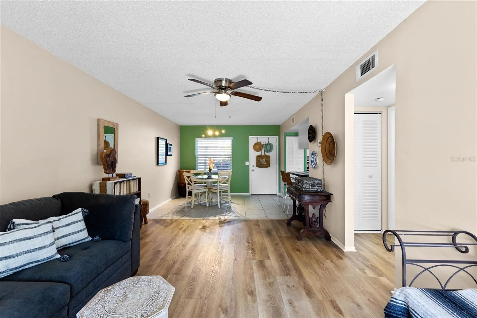 Welcome to 1250 S Pinellas Ave #405, a bright and cheerful 1-bedroom, 1-bath condo that makes Florida living easy and enjoyable. This move-in-ready home sits in the heart of historic Tarpon Springs, just minutes from Honeymoon Island, the Sponge Docks, and Fred Howard Park—so you can enjoy sunsets, shops, and restaurants in minutes. Inside, you’ll love the open living and dining space, wood-look flooring, and a private screened patio perfect for your morning coffee or evening wine. The kitchen offers plenty of cabinet space and a full-length pantry for extra storage. The bedroom includes patio access, creating a relaxing retreat filled with natural light. Additional conveniences include a large exterior storage closet, on-site laundry, and assigned parking right outside your door. This community features a pool, clubhouse, fitness center, and recreation facilities—everything you need for easy, low-maintenance living. HOA fees include cable, water, and exterior maintenance, keeping your monthly costs predictable. Built in 1974, this 669 sq ft home has been lovingly maintained with block and stucco construction, central air, and updated finishes. Zoned for Sunset Hills Elementary, Tarpon Springs Middle, and Tarpon Springs High, it’s a great choice for snowbirds, first-time buyers, or anyone looking to downsize near the coast. Just minutes to US-19, you’ll have quick access to Palm Harbor, Clearwater, and Tampa International Airport, while enjoying the charm and character that make Tarpon Springs one of the most beloved towns in Pinellas County. Additional features include a large outdoor storage closet, water heater (2017), and HVAC (2010).