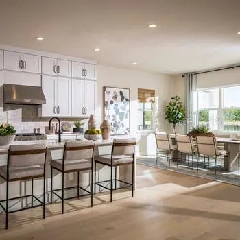 Award winning model home in Laurel Pointe Lake Nona. The Marsanne’s welcoming covered entry with double doors opens onto the inviting foyer, and views to the spacious great room, casual dining area, and desirable covered lanai beyond. The well-designed gourmet kitchen is equipped with a large center island with breakfast bar, plenty of counter and cabinet space, and ample walk-in pantry. The delightful primary bedroom suite is enhanced by dual walk-in closets and deluxe primary bath with dual-sink vanity, large soaking tub, luxe shower, and private water closet. Central to a generous loft, secondary bedrooms feature sizable closets, one with private bath, the other with shared hall bath. Additional highlights include a desirable first floor bedroom with walk-in closet, private bath and sitting room making it a lovely multi-gen suite. There is a versatile flex room off the foyer, convenient powder room, centrally located laundry, and additional storage. The Marsanne’s furnishings are negotiable.