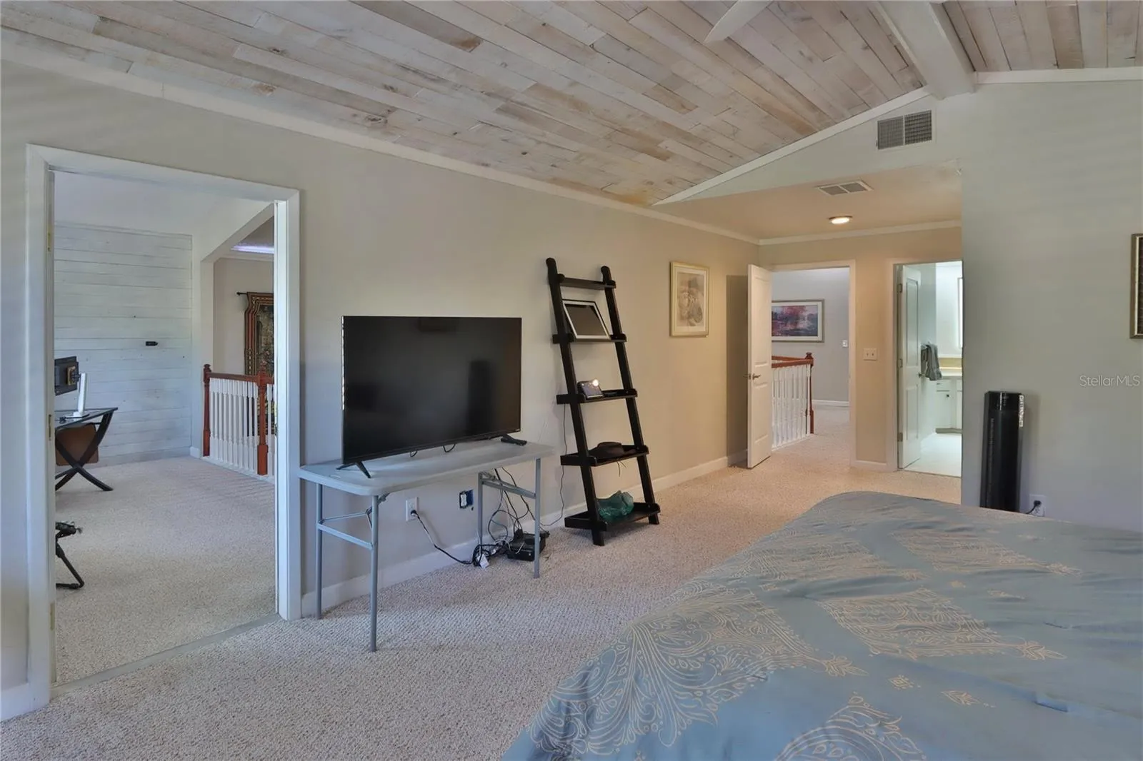 Three-car garage with a large finished storage loft (ideal for golf cart parking)