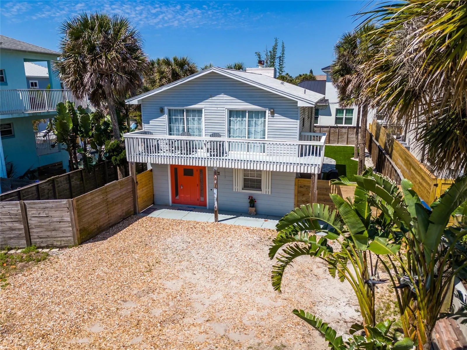 Welcome to this charming coastal 3-bedroom, 2-full bath, and one-half bath home, walkable to all that New Smyrna Beach and Flagler Ave has to offer. This home is located in the SHORT TERM RENTAL area, is completely remodeled, offered FURNISHED, and features a brand NEW INGROUND POOL. Upon entry, you’ll be greeted by an open floor plan connecting the updated kitchen with the living room and dining room. The heart of the home features a well-appointed kitchen with quartz countertops, stainless steel appliances, tile backsplash, and a gas range, perfect for culinary enthusiasts and entertainers. The living room offers lots of natural light and a wood burning fireplace. Convenience is key on the first floor, with a brand new half bath and two sets of sliders allowing easy access to the backyard. The three bedrooms and two full baths are upstairs with updated bathrooms and a private balcony off the primary bedroom where you can enjoy the beautiful sunrise. Inside you will find NEW TILE FLOORS for easy maintenance and NEW FURNITURE throughout, making this home turn key! Outside, enjoy the Florida sunshine in your private fenced in backyard with brand new astro turf and a brand new pool. This home is located across the street from the sand of coveted New Smyrna Beach and only a 5 minute walk from downtown Flagler Ave. Venture just a short walk away, and you’ll find yourself at an array of incredible restaurants, bars, and boutiques, where you can indulge in mouthwatering cuisine, sip on handcrafted cocktails, and explore unique shops showcasing local art and treasures. Whether you are looking for a vacation rental, your full-time home, or a Florida winter getaway, 602 S Atlantic is the one! Don’t miss out on this opportunity — schedule your private showing today and fall in love!