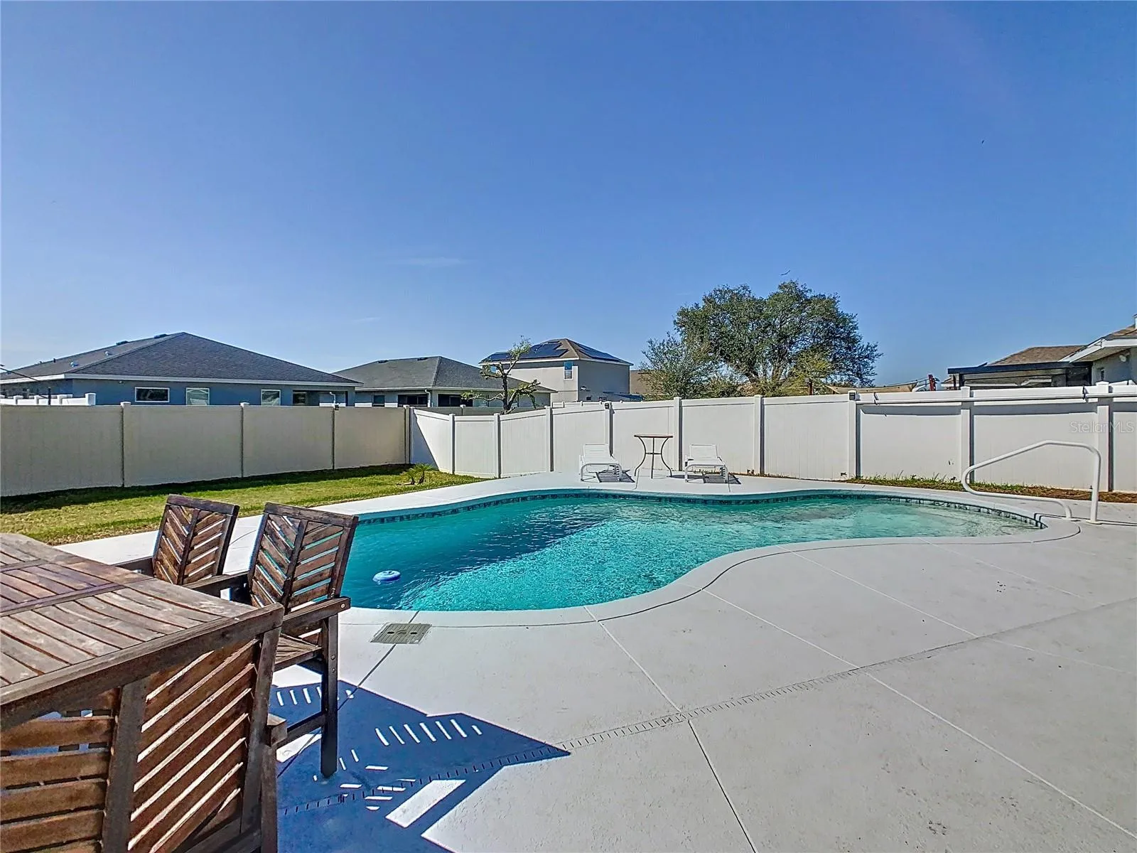 The backyard is your private oasis, featuring a sparkling saltwater pool – ideal for entertaining or unwinding in the Florida sunshine year
