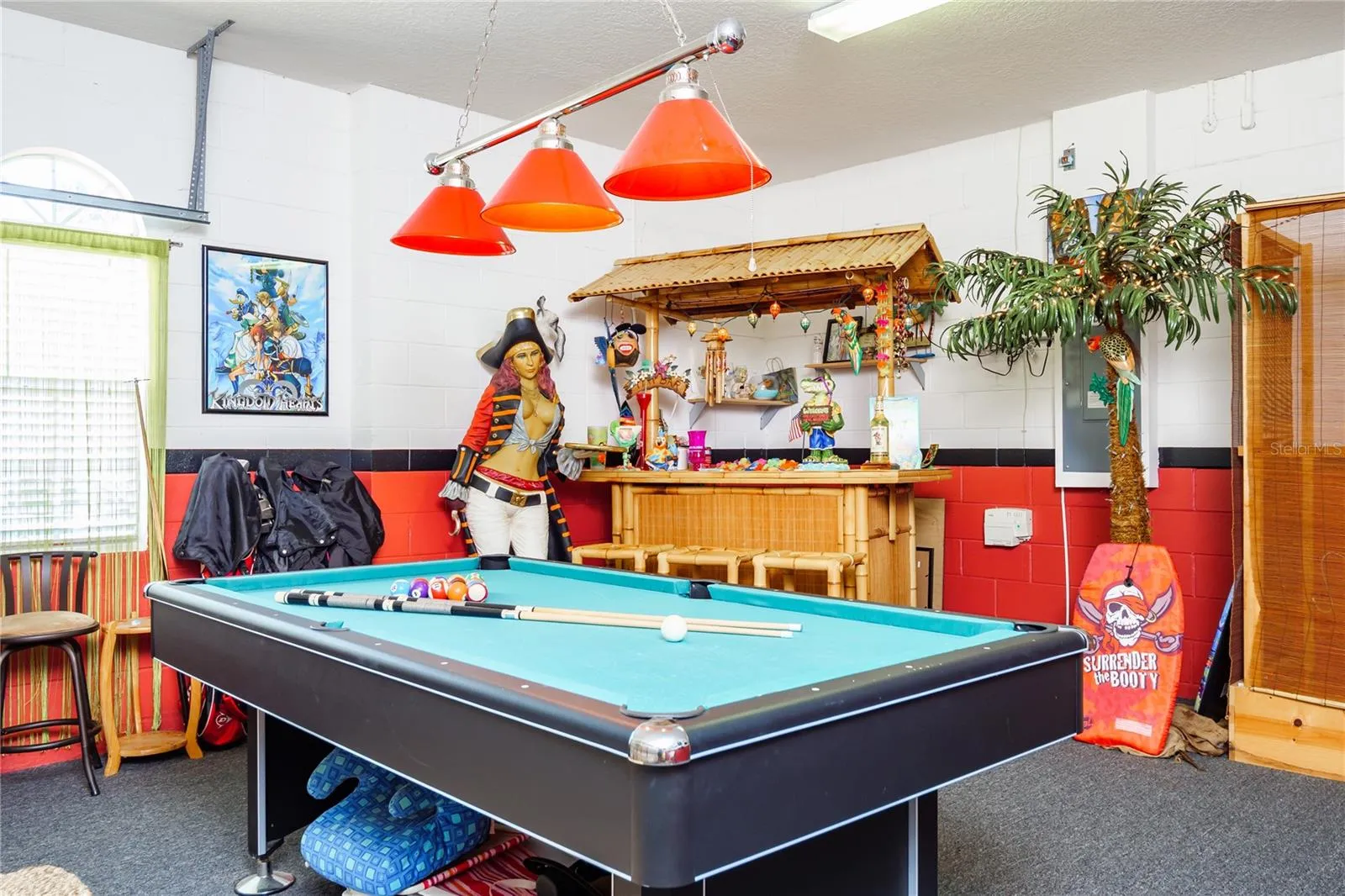Welcome to this charming 4-bedroom, 3-bath home located in the desirable gated community of Calabay Park at Tower Lake. Set on a beautifully landscaped lot with mature greenery, this property offers both style and comfort. Inside, you’ll find a fully furnished home with high ceilings and a serene relaxed atmosphere. The remodeled kitchen features modern stainless steel appliances and flows easily into the breakfast room and living area, where large windows showcase a beautiful view of the pool. A dedicated media room offers the perfect space for movie nights or quiet relaxation.