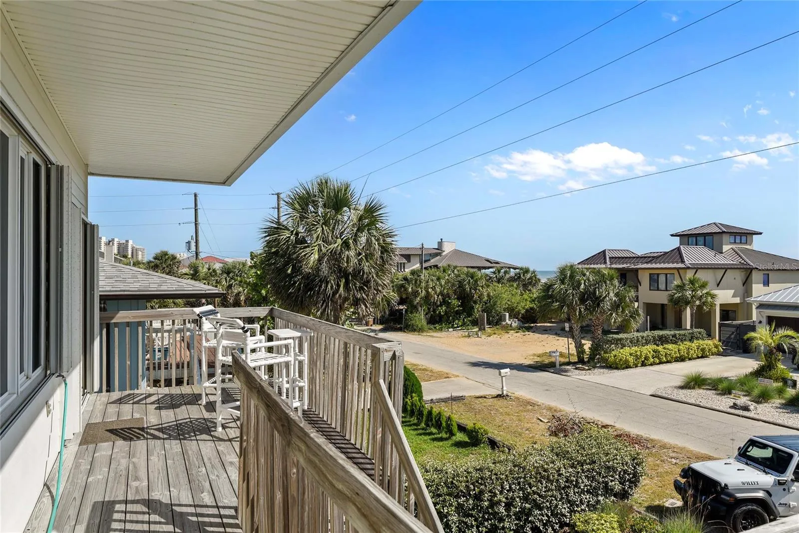 One Owner North Beach Gem ready for your vision. Located across the street from the Ocean and just steps to the Beach Walk-Over. Constructed in 2000, this thoughtfully designed home was ahead of its time with high ceilings on both living levels, an Open Floor Plan, a Spacious Primary Suite and a huge rear-entry garage. With the Main Living Areas on the Top Floor, you’ll find a large living room, dining room and kitchen, and from the adjacent Ocean Facing Deck you will enjoy ocean views and breezes. From the Kitchen and Dining Room is a West facing deck. 10′ Ceilings add even more volume to the already large spaces. The Kitchen boasts solid wood cabinetry, an Island w/ prep sink, natural gas range w/ true exhaust hood and tons of storage. You’ll also enjoy the large walk-in pantry. Adjacent to the kitchen is a large dining room and a half bath/powder room. Beautiful wood floors run through the kitchen, dining room and half bath. Impact Windows provide both protection and amazing views. On the Bedroom level you’ll find a large Primary Suite with its own West facing deck. The En-Suite Primary Bathroom offers a walk-in shower, garden tub and dual sinks. Bedrooms 2 and 3 face East and share a bathroom with a large walk-in shower. Throughout the top two levels you’ll find abundant storage to keep you organized. The two car, rear-entry garage under the home is over-sized with plenty of room for vehicles, all your “toys” and a “work shop” area with even more storage. This beautiful home sits on a very deep lot with plenty of room for a pool and gardening. Be sure to check out the Virtual Tour and the Photos to fully appreciate the Value this Special North Beach Home offers. Metal Roof New in 2023. Rinnai Gas Tankless Water Heater New in May 2025. Both A/C systems New in May 2025. All measurements are approx. and Buyer responsible to verify dimensions.