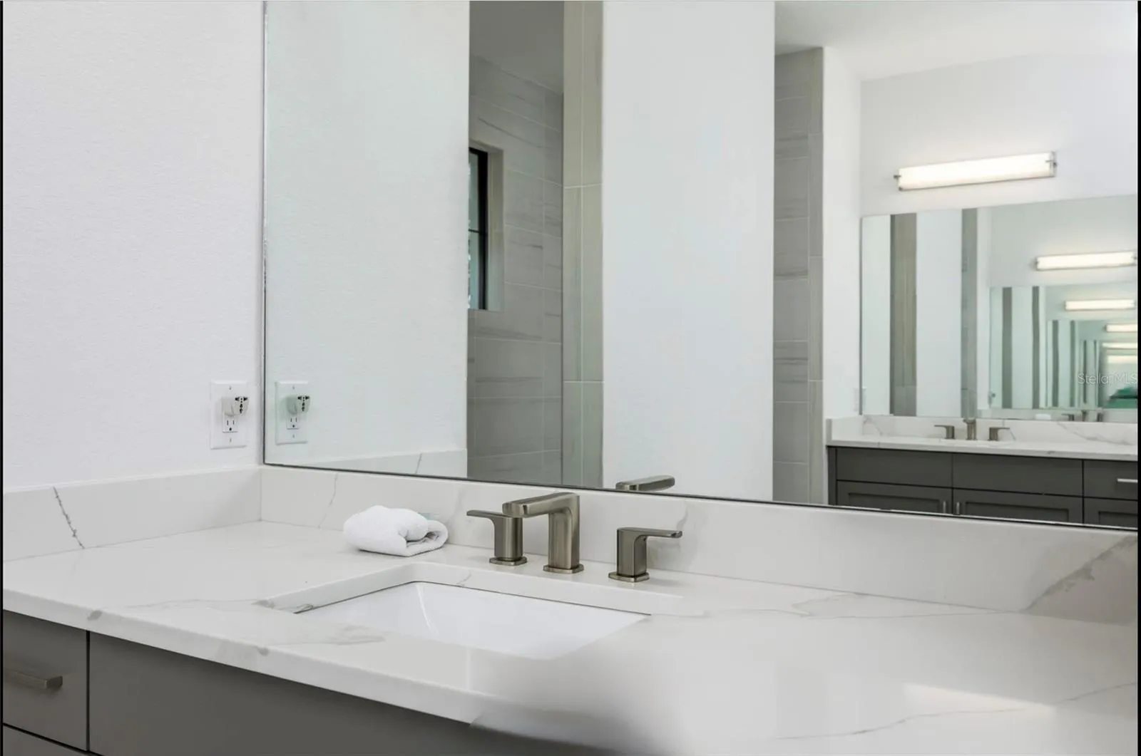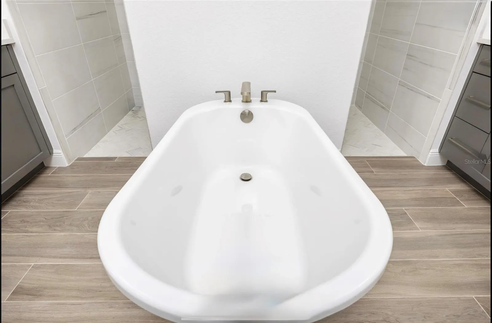The primary suite is a private sanctuary, featuring walk-in closet and a spa-inspired bath with a luxurious shower, deep soaking designer tub, and dual vanities.