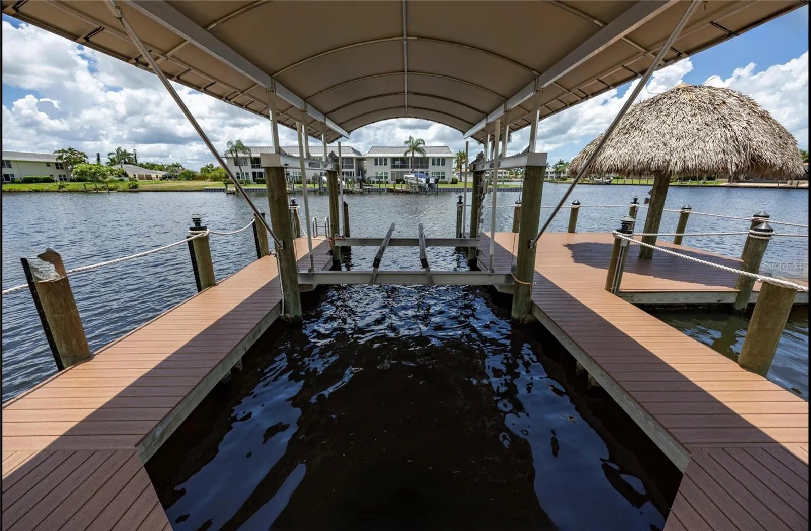 New covered boat dock with a new lift build by “STOKES MARINE” with a very very large Tiki platform, of course equipped with electrical connections and water connection to optimally maintain your boat.