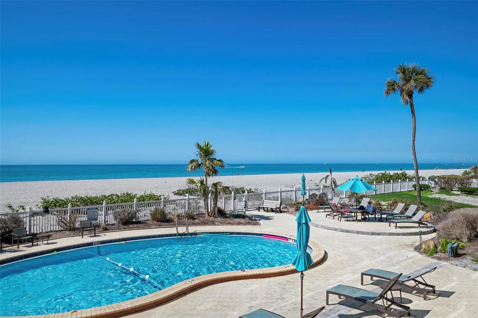 Embrace the ultimate beachside lifestyle in this fully furnished, turnkey 2-bedroom, 2-bathroom condo, offering unparalleled views of Venice Beach. Recently updated, this beautiful condo features a stately modern kitchen with Corian countertops, solid hardwood cabinets, a dry bar, desk area, sleek newer appliances and a dark stainless-steel refrigerator. Both bathrooms are beautifully appointed with the same high-end finishes, including granite counters and solid hardwood cabinetry. The entire condo is adorned with elegant travertine tile throughout—no carpet to worry about! The Sansovino has the best location on the beach, with Gulf and Intercoastal views, making it an incredibly rare find. Enjoy the open floor plan that fills with natural light and relax on your private balcony while taking in the spectacular beach views and breathtaking sunsets. With large walk-in closets, ample storage, and everything you need for a move-in ready experience, this condo offers the ultimate in convenience and luxury. The open floor plan and full lanai windows (complete with both glass and screens) and sliding glass doors allow you to enjoy the fresh ocean air, making it easy to take in the stunning ocean views from nearly every room. Whether you’re relaxing on your private balcony, enjoying the spacious living area, or taking in the sights and sounds of the beach, this home truly offers the ultimate in coastal living. You’re just minutes from historic downtown Venice with its vibrant shops and restaurants, and close to downtown Wellen Park and the new Atlanta Braves stadium. Community amenities include a private beach, heated pool, a grilling area, and a newly updated clubhouse. Don’t wait—schedule your showing today!” Live the beachside dream in this beautifully updated condo. Welcome Home!