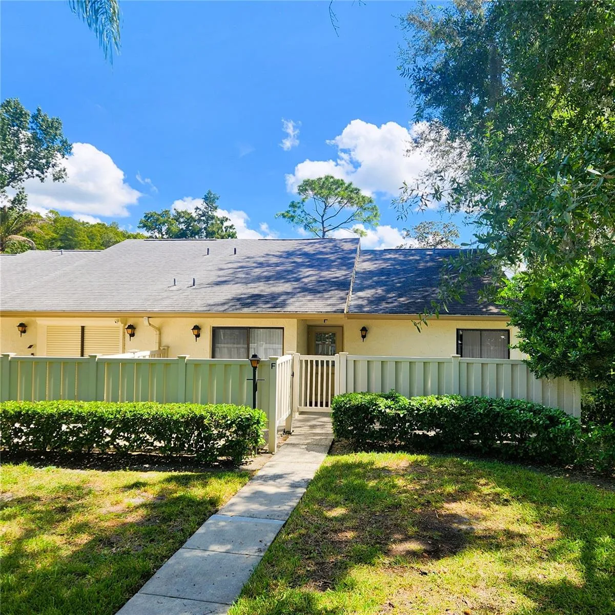 Welcome to Deer Hollow, a charming community within Pine Ridge at Lake Tarpon in East Lake! If an end-unit villa with space and privacy is what you’re looking for, this home is the perfect fit. Step through the front entry fence and enjoy two spacious patios—one with access to the front entrance and another via a sliding door to the kitchen.