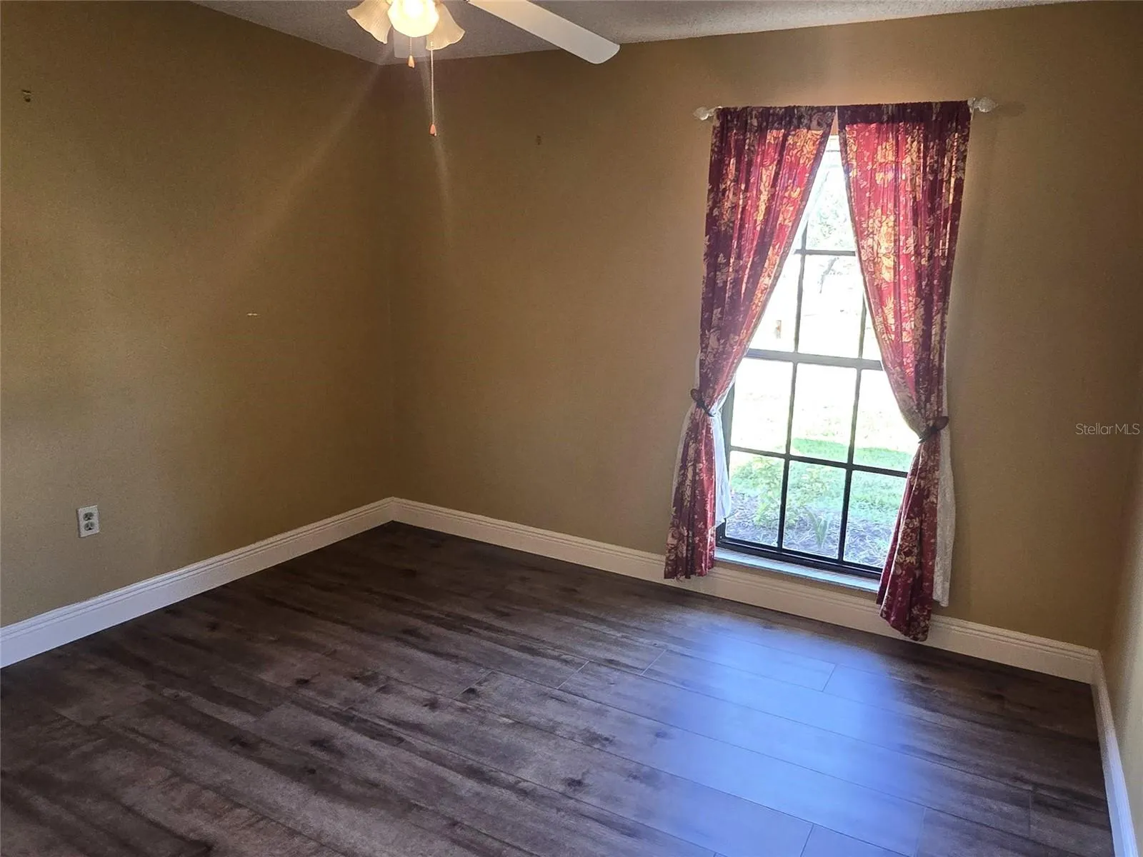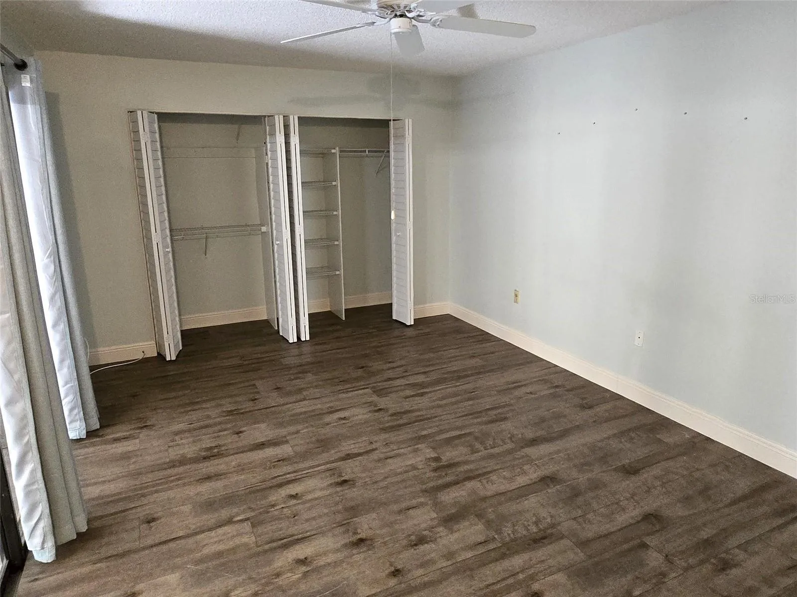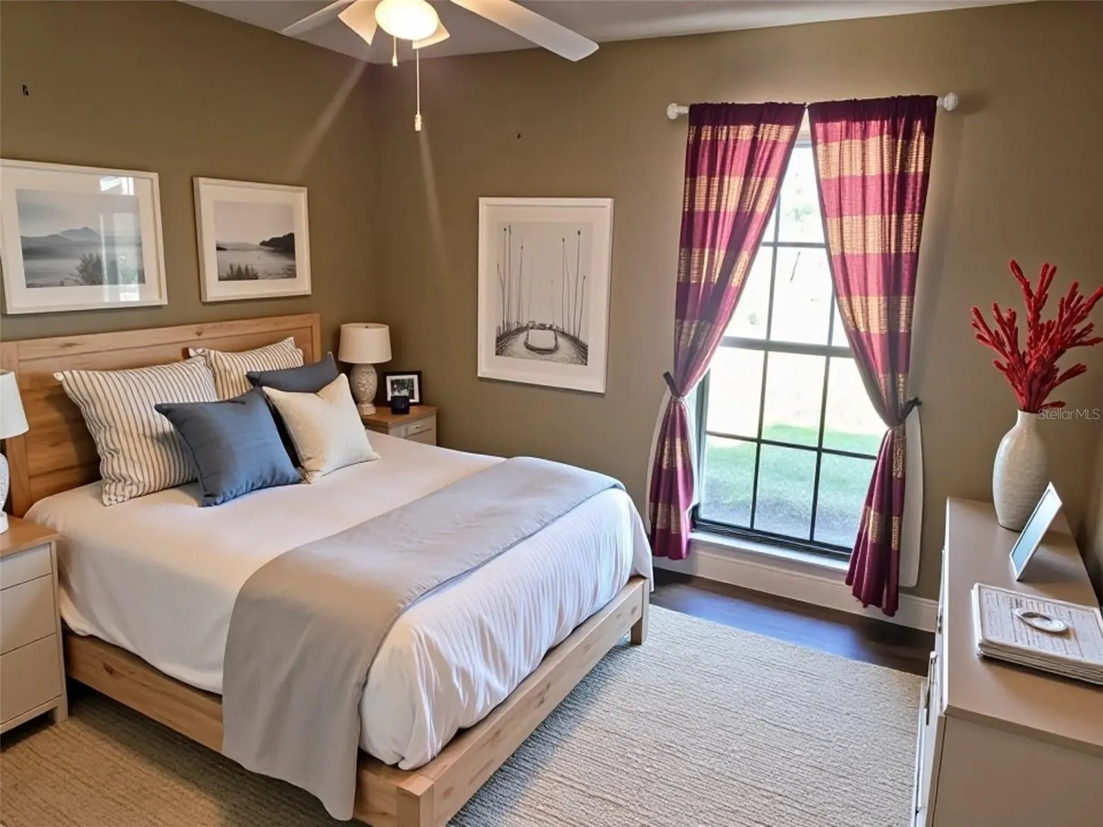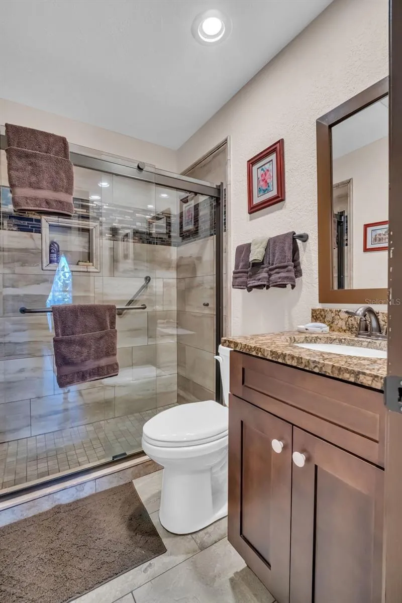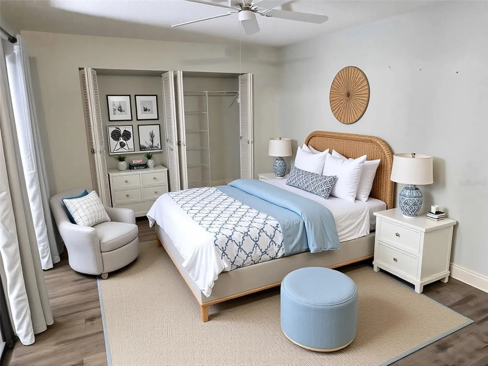 The guest bedroom is conveniently located next to a full guest bathroom and includes an oversized closet.