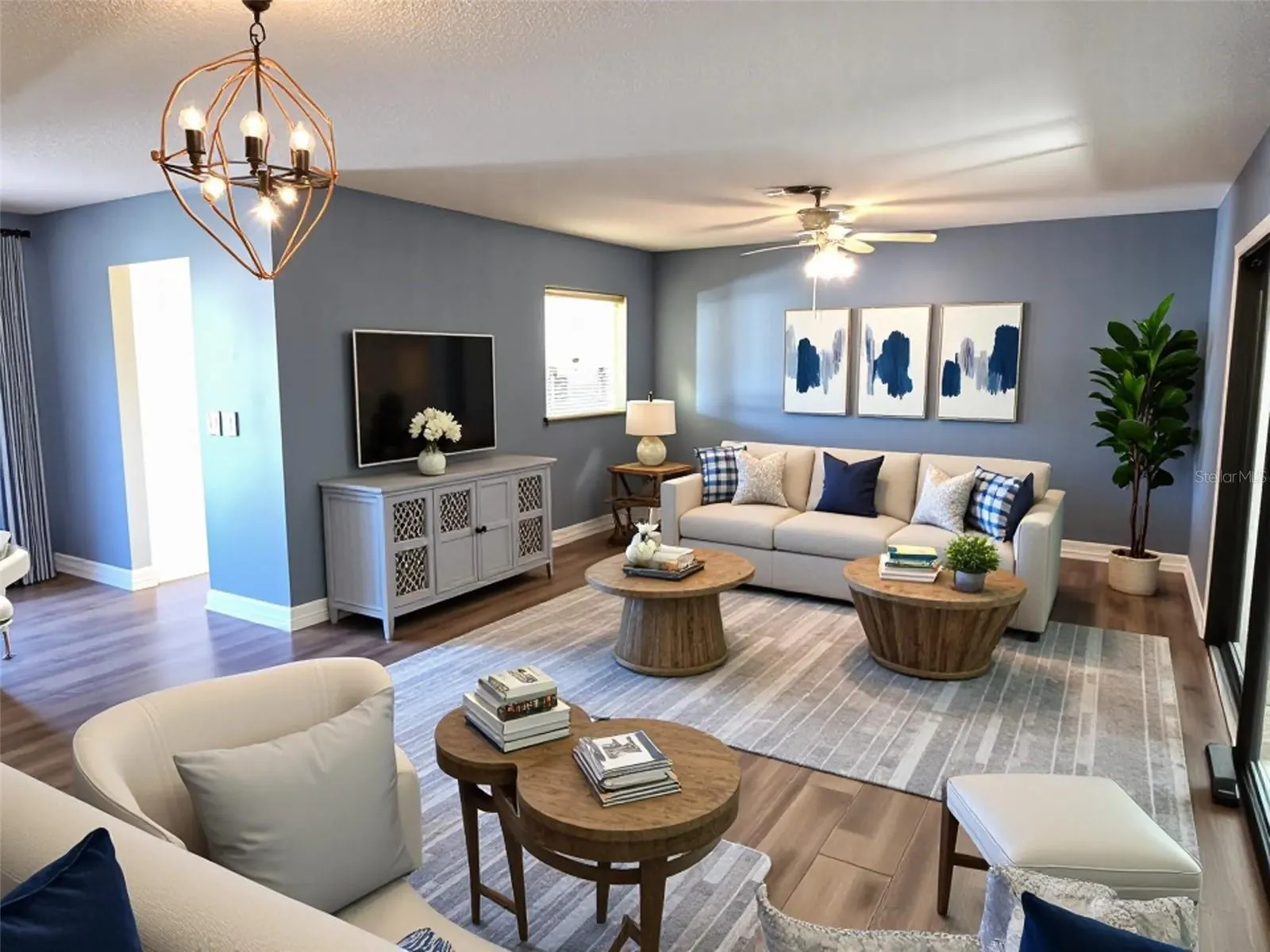 The spacious living and dining area flow seamlessly, creating a welcoming and open atmosphere.