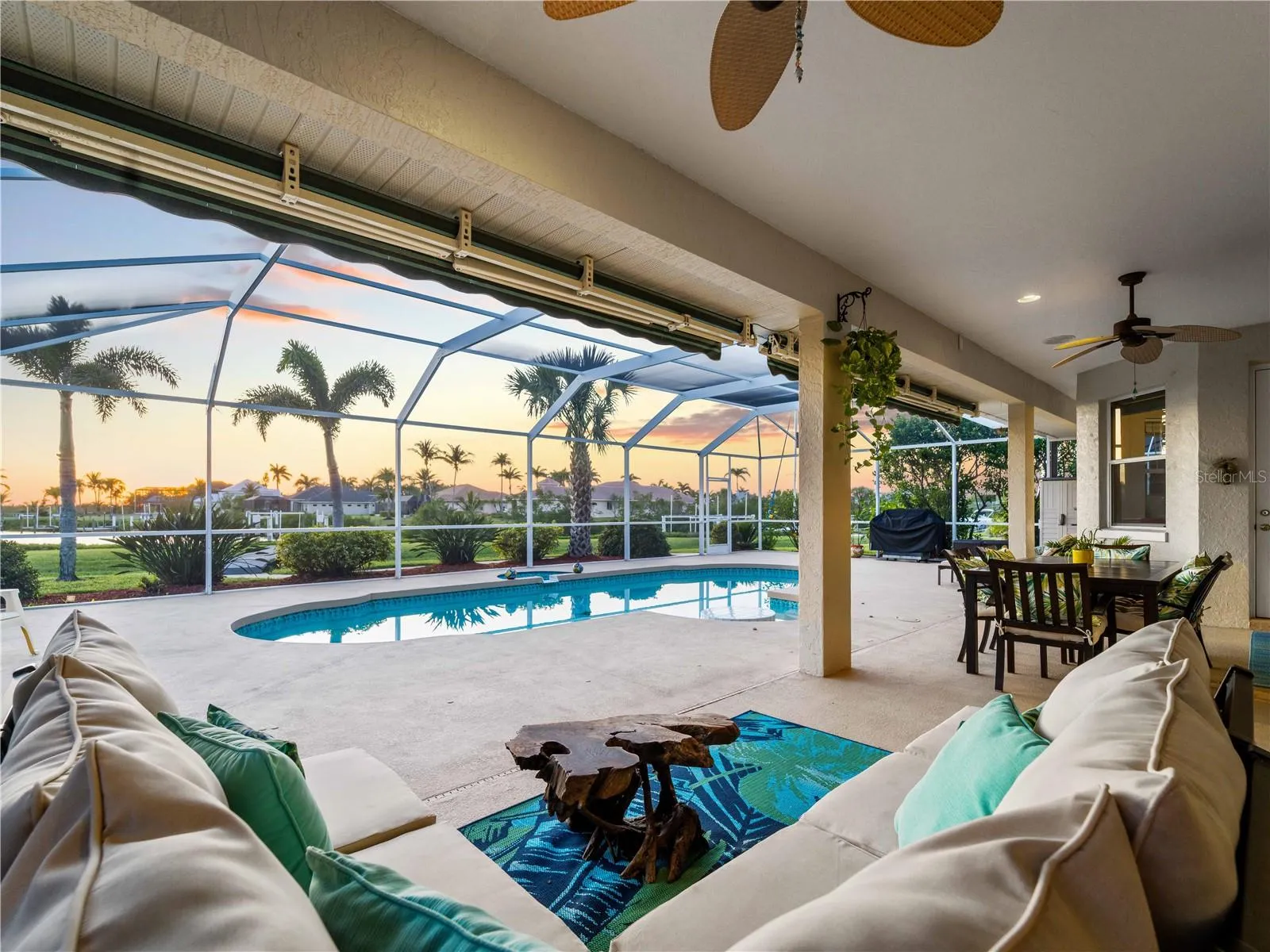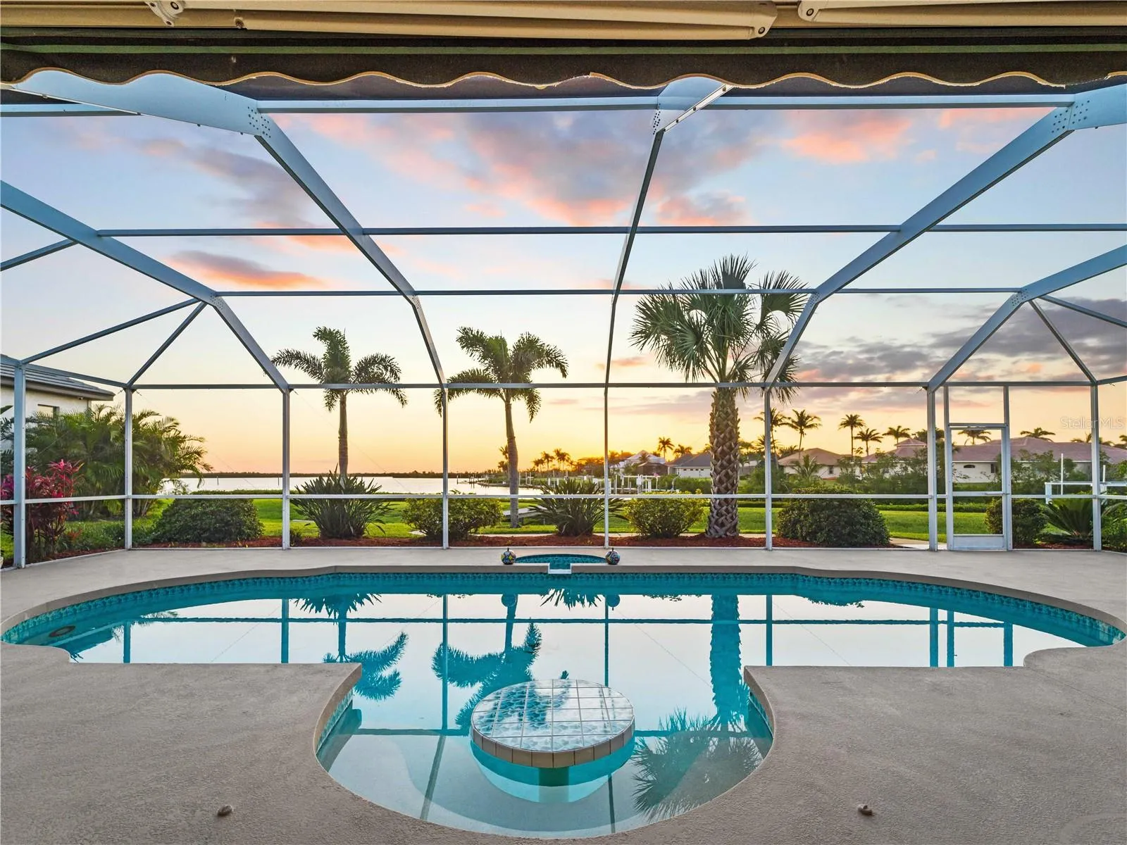 Live the Florida dream in this exquisite 3 bed, 3 bath Gulf Access pool home with den in Collingswood Pointe. Enjoy waterfront living on the Manchester Waterway with direct, no-bridge access to Charlotte Harbor and the Gulf of Mexico – a boater’s paradise! Enjoy breathtaking, unobstructed views over the waterway and preserve. This spacious residence is designed for both comfortable living and grand entertaining. The open great room concept features stunning Mahogany hardwood floors and a cozy gas fireplace, flowing seamlessly through pocketing sliders onto the expansive lanai for perfect indoor/outdoor living. Adjacent, the elegant formal dining room, also with hardwood floors, awaits your dinner parties. Designed for effortless entertaining and everyday living, the gourmet-style kitchen boasts rich granite countertops, solid wood cabinetry, a convenient walk-in pantry, and a wine bar, offering beautiful water views as you cook or gather. Retreat to the luxurious Owner’s suite, a private haven featuring dual walk-in closets and direct lanai access via pocketing sliders. The recently updated en-suite bathroom is a spa-like escape with beautiful quartz counters, a new vanity, and stylish updated hardware. The popular split bedroom floor plan ensures privacy for family and guests, offering two additional generous bedrooms and well-appointed bathrooms. The versatile den (currently used as a dedicated office) provides flexibility for work or could easily serve as a fourth bedroom if needed. Outdoor living is elevated to an art form here. The expansive lanai, featuring a sparkling inground, heated pool, is complete with Sunsetter awnings for adjustable shade, creating the perfect spot to savor Florida’s weather, host gatherings, or simply watch amazing sunsets paint the sky. Enjoy year-round swimming and relaxation in your private oasis! Boating enthusiasts will appreciate the 40 ft concrete dock equipped with a 7000 lb boat lift, plus water and electric service right at the dock – ready for your vessel. Enjoy swimming, boating, and fishing right from your backyard! A dedicated BBQ area with a direct propane line makes outdoor cooking a breeze. This meticulously maintained home provides peace of mind with PGT Hurricane Impact Windows throughout and has been freshly painted with contemporary designer colors. Everyday living is made easier with a convenient central vacuum system and a dedicated internal laundry room equipped with a washer, dryer, utility sink, and extra storage. Benefit from significant annual cost savings as the irrigation system is supplied by a private well, while the home remains reliably connected to City water and sewer. You’ll find loads of storage thoughtfully integrated throughout the residence, complemented by an oversized 3-car garage offering ample space for vehicles and hobbies. Enjoy the tranquility of this peaceful neighborhood while being conveniently close to fantastic restaurants, shopping, world-class beaches, and premier golf courses. All this within the beautiful Collingswood Pointe/South Bayview Estates community, featuring incredibly low HOA fees of only $36 per year! This is more than just a house; it’s your gateway to the coveted Florida Suncoast Lifestyle. Don’t miss the opportunity to own this piece of paradise. Schedule your private showing today!