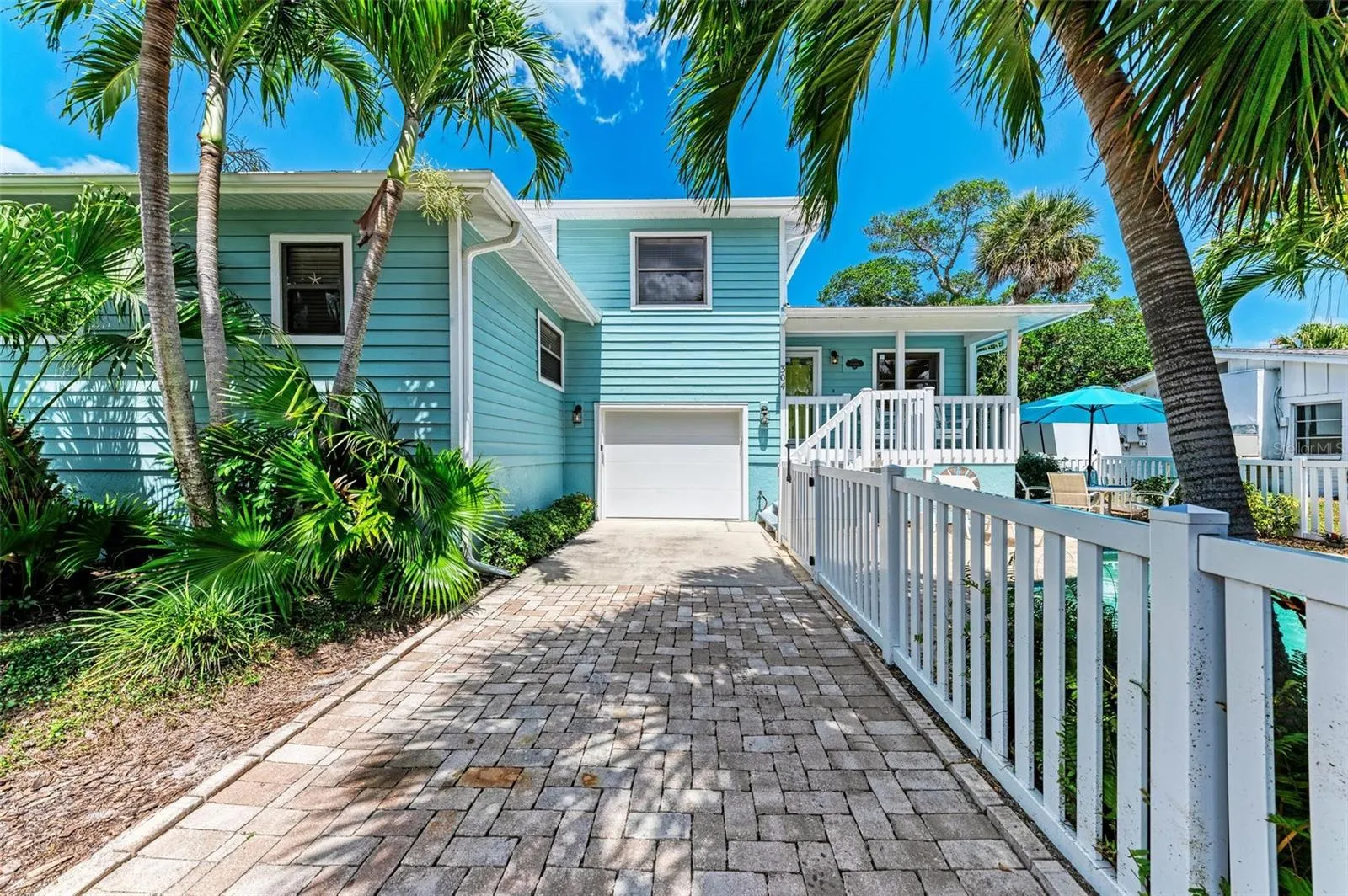 NEW PRICE! This 2 bed/2 bath picture perfect island dream lives like a single family home and is ideally situated on a quiet street, just two short blocks from the Gulf Beaches! Elevated, with a private pool and your own garage, you will enjoy relaxing surrounded by coastal charm. The updated, open kitchen with quartz counters, is equipped with stainless steel appliances and ample shaker style white cabinetry. Your guests will enjoy their first floor accommodations with easy access to the updated bathroom with white subway tile surround and updated vanity with Moen faucet. The luxury vinyl large plank flooring throughout is ideal for beach living, and ties the open living and dining room together. Upstairs you will relish the privacy of your primary retreat. The sunlight brightens your spacious room that includes a walk in closet. And your en suite bath has a glass enclosed shower, with tile bench and pebble stone shower flooring. And outdoors, you can relax on your front porch, or cool off in your own pool! Embrace the island life in this lovely land condo, and use it as a short term rental when you are away.
