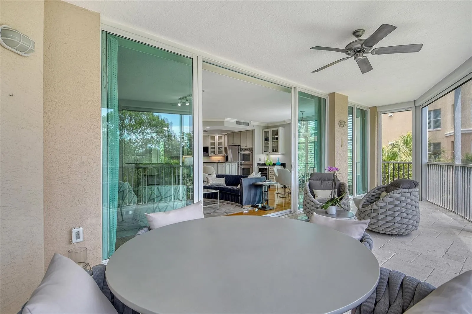 Give yourself the gift of refined living in this expansive 2,778 square foot residence—the largest non-penthouse floor plan available in Meridian at The Oaks Preserve. Every detail in this meticulously maintained, and beautifully updated condominium has been thoughtfully designed to offer comfort, sophistication, and versatility, making it the perfect sanctuary for luxury living every day! Step inside and discover a home where space abounds and possibilities flourish. With three generously sized bedrooms, plus a dedicated dining room (currently being used as a den) and a versatile office/den or 4th bedroom, this home provides all the room you need to work, relax, and entertain, with the flexibility to use the rooms as you see fit. The great room is bathed in natural light, its gleaming wood floors enhancing the clean, contemporary lines of the interior. The updated kitchen will delight any home chef, offering optimal space for cooking and storage, whether you are preparing a casual breakfast or hosting a formal dinner. Enjoy your meals in the dining room, at the breakfast bar, in the cozy nook, or take them outside to the large, screened balcony, where a ceiling fan and the serene backdrop of a lush tropical preserve provide the ideal setting for alfresco dining. The small dry bar with wine cooler and cabinets to store your drink supplies and display your glassware is the perfect addition for when you are entertaining guests. Retreat to a sumptuous master suite. The large, carpeted bedroom is filled with natural light, and outfitted with a ceiling fan, plantation shutters, and custom closets. The master bathroom has been beautifully redone. With a soaking tub, separate shower and water closet, this space is absolutely gorgeous. Every inch of this unit has been curated to deliver both style and functionality, ensuring you feel pampered at every turn. Additional features include a large laundry room, Kevlar roll down hurricane shutters, two premium parking spaces and high-quality upgrades throughout. Club membership is required with homeownership. Residents of Meridian enjoy exclusive access to a private pool, relaxing spa, and a fully equipped workout room. Beyond these, The Oaks offers an impressive array of amenities including 36 holes of championship golf across two courses, twelve HAR-TRU tennis courts (four lighted), a state-of-the-art Wellfit Center, three on-site restaurants with year-round dining, croquet, bocce and pickleball courts and an active social calendar.