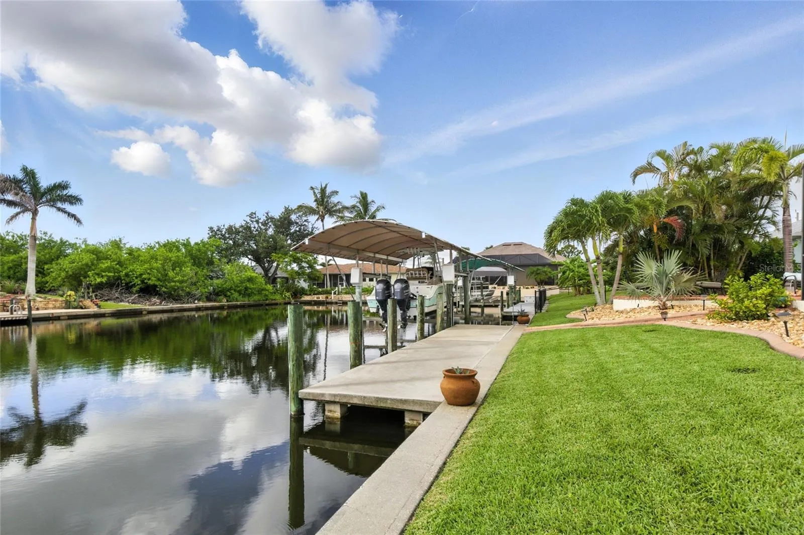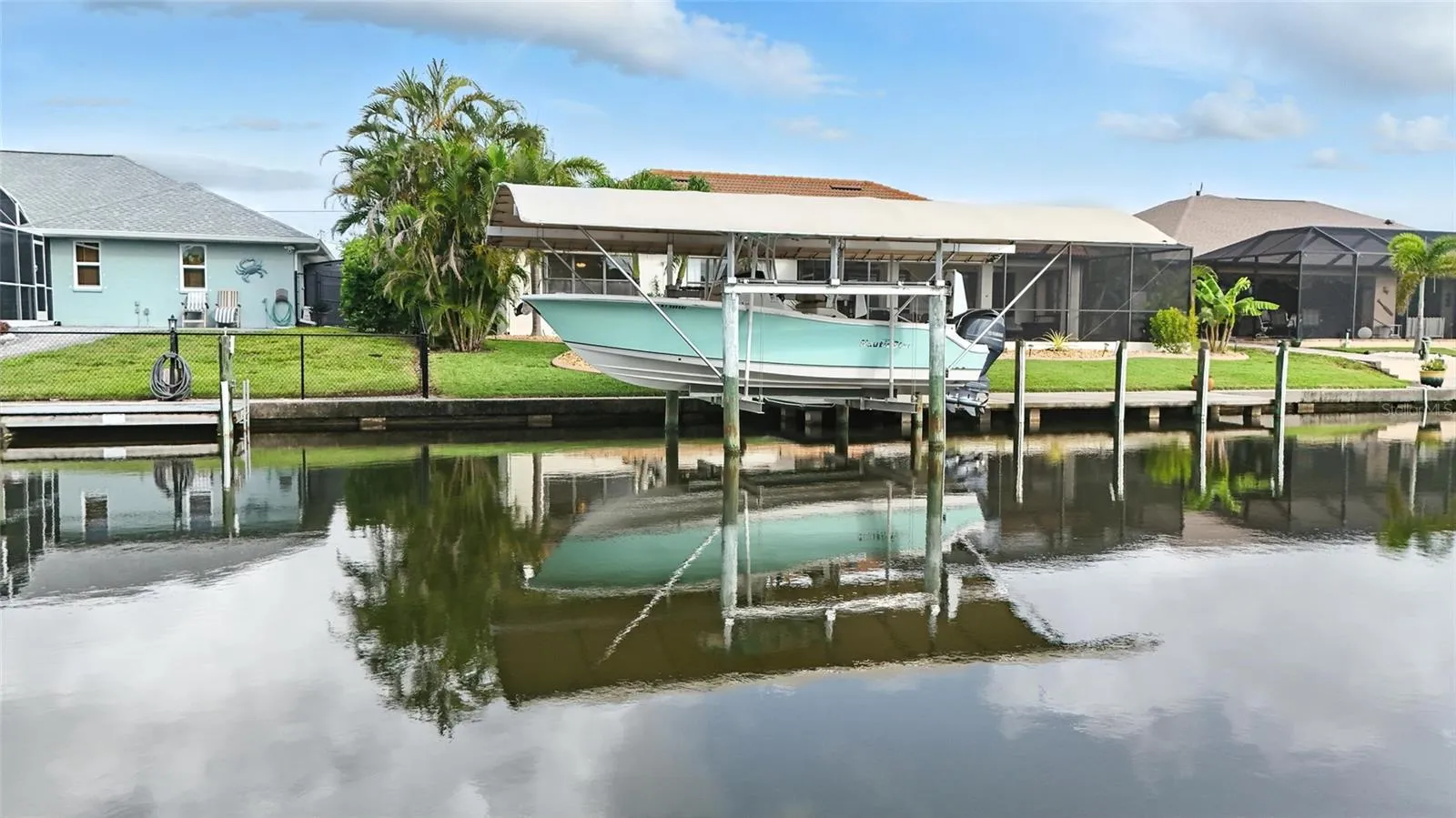 Beautifully maintained 3-bedroom, 2-bath waterfront home in the highly desirable South Gulf Cove community! Enjoy direct access to over 55 miles of canals from your own concrete seawall, private dock, and 13,000-lb covered boat lift—perfect for fishing, boating, and sunset cruises. This move-in-ready home features a 2023 roof, newer stainless appliances, open split-bedroom layout, and a spacious screened lanai ideal for entertaining. Public water and sewer, optional HOA, and a prime location minutes to Boca Grande, beaches, golf, and marinas. Live the ultimate Florida lifestyle today!