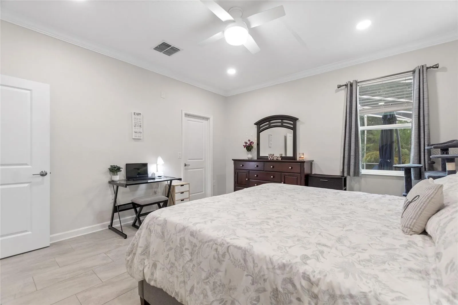 LIVE LIKE A CHAMPION! NEXT-GEN LIBERATION MODEL WITH PRIVATE POOL, IN-LAW SUITE, RENOVATIONS, AND FULL GOLF MEMBERSHIP INCLUDED IN HOA! One of the finest homes in ChampionsGate, this 6-bedroom, 4-bath residence is loaded with upgrades and sits on a premium private conservation lot, offering serene views and exceptional privacy. The heart of the home is the fully remodeled kitchen, featuring an oversized island, Cambria quartz countertops, additional custom cabinetry, and built-in dinette and pantry, perfect for entertaining and daily living. The main living area offers an open-concept layout, upgraded lighting, crown molding, and custom finishes throughout. Upstairs, you’ll find luxury vinyl plank flooring, plush new carpet, and a remodeled primary bath suite with a custom-built primary closet. Step outside to your private oasis: a custom saltwater pool with sun shelf, water feature, and professionally designed landscaping with concrete curbing for added elegance and curb appeal. This unique Next-Gen floor plan includes a private in-law suite with a separate entrance, living room, kitchenette, bedroom, full bath, laundry, and its own 1-car garage, ideal for guests or multigenerational living. Additional features: plantation shutters, electric shades, upgraded lighting, and a 3-car garage. Enjoy golf cart access throughout the gated, resort-style community with world-class amenities: Oasis Club with restaurant, tiki bar, lazy river, pools, fitness center & more. The Plaza, a residents-only clubhouse with restaurant, bar, pickleball, and two pools. The Retreat Club, a new full-scale water park.