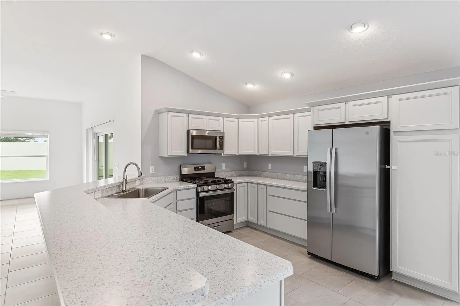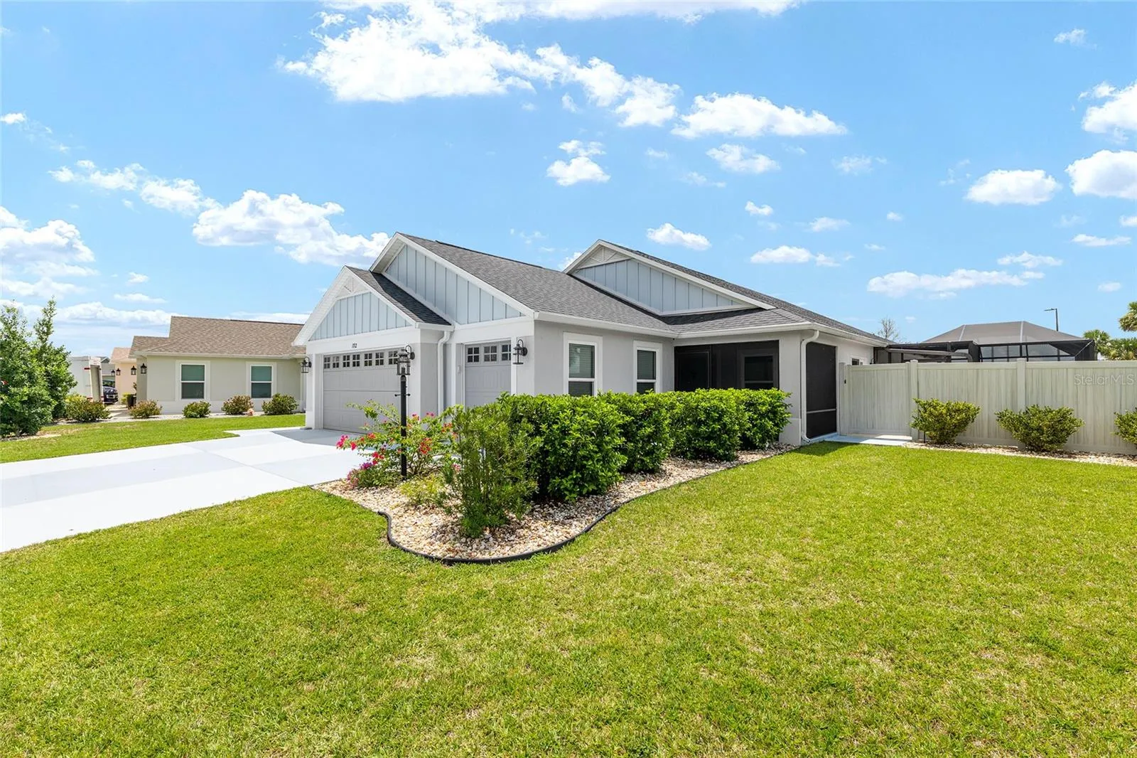 Welcome to THE VILLAGE OF ST. JOHN! This elegant, low maintenance COURTYARD VILLA “AVONDALE MODEL” is perfect for those seeking privacy, enclosed space for a pet or those who wish to spend a little less time caring for a yard and more time enjoying the lifestyle.The property features three-bedroom, two bath, two-car, golf-cart garage, water filtration system, all situated on a 0.30-ACRE CORNER LOT that offers COMPLETE PRIVACY and ROOM FOR A POOL. With a NEW BIRDCAGE and POND VIEW it’s quite SPECTACULAR! As you step inside, you’ll be greeted by a spacious living area filled with natural light, ideal for relaxation or entertaining guests. The well-appointed kitchen features modern STAINLESS STEEL appliances, ample CABINET and COUNTER SPACE. A large DINING ROOM area, with views of the backyard. A Large LIVING ROOM with views of the back yard. The owner’s suite features LARGE WALK-IN CLOSET and an ENSUITE BATHROOM, ROMAN WALK-IN SHOWER, DUAL SINKS and tile flooring. Guests will enjoy their own private space with separate hallway, full bathroom, and both rooms with built-in closets. Additional highlights include an INDOOR LAUNDRY room with utility sink, washer, gas dryer, a NEW BIRDCAGE with ROOM FOR A POOL and a SCREEN-IN FRONT PORCH, for enjoying VIEWS OF THE POND. Conveniently located just a few miles to Sawgrass Grove and Brownwood Paddock Square and all the excitement of the newest Town Center, Eastport. There are many Golf Courses nearby as well as the Magnolia Shopping Plaza and the Water Lily and Everglades Recreation Centers are just a short Golf Cart ride away. Face Time tour available upon request.