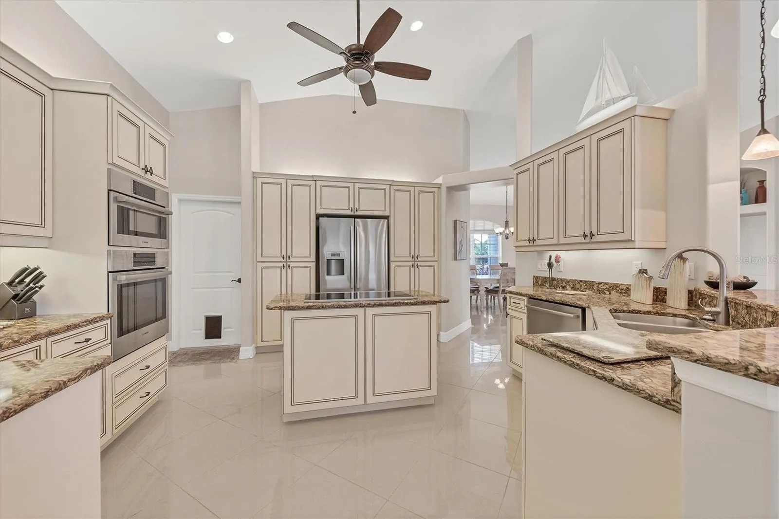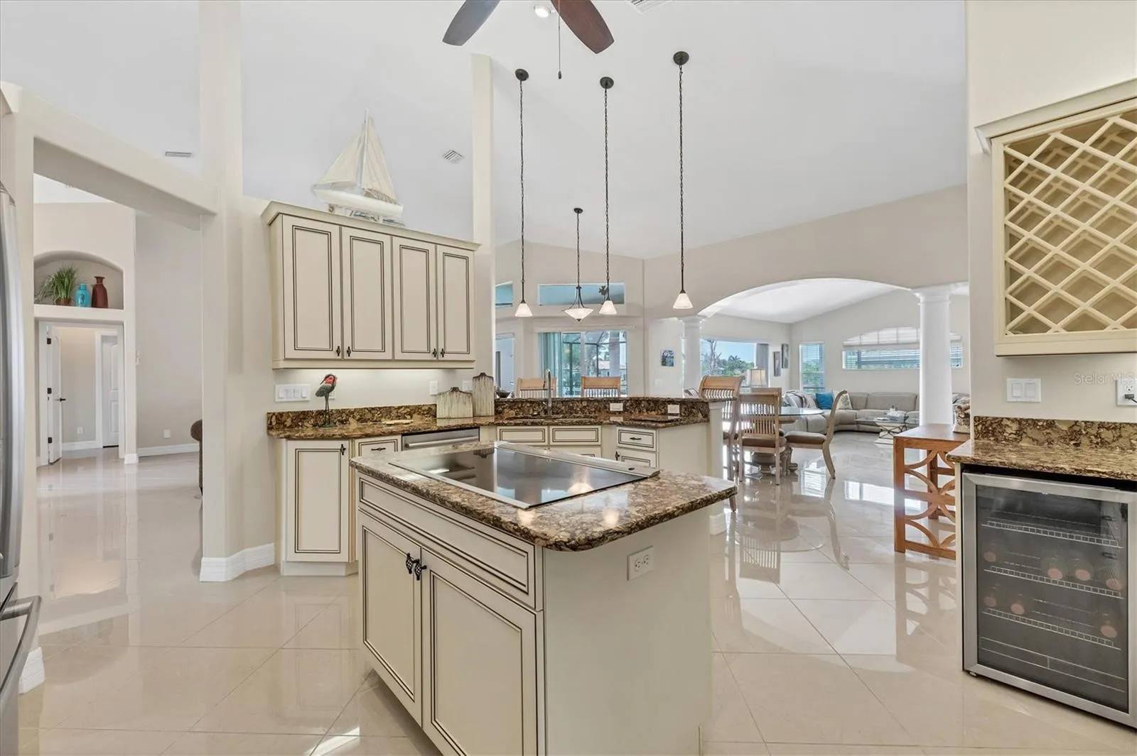Designed for entertaining, this home features two inviting living areas, a formal dining room, and a charming breakfast nook — all showcasing spectacular waterfront views. The chef’s kitchen is a true showstopper, offering granite countertops, solid wood cabinetry, under-cabinet lighting, a built-in wine rack and wine fridge, double ovens, Bosch cooktop with downdraft on a central island, matching Bosch appliances, and a central vacuum system.