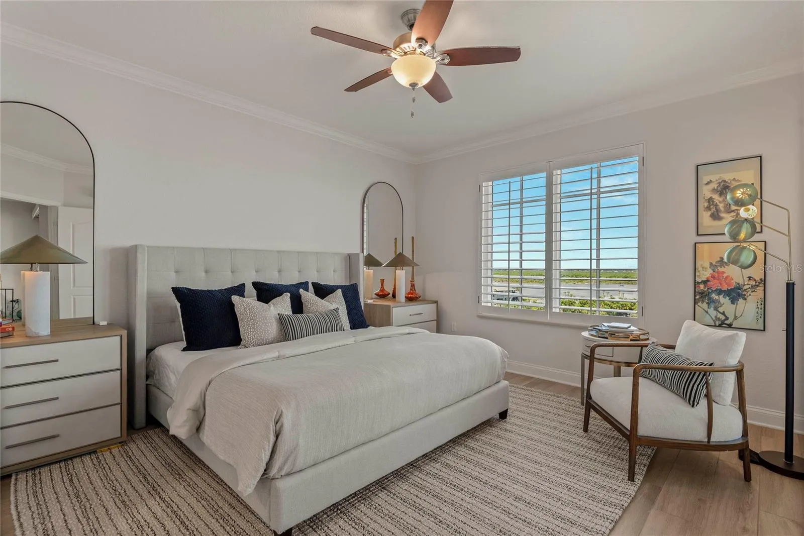 Welcome to coastal sophistication in the highly desirable Minorca community of New Smyrna Beach. This beautifully appointed 2-bedroom, 2-bath residence with a private office blends comfort, style, and functionality, offering sweeping views of the Intracoastal and beyond. Thoughtfully designed interiors feature an open-concept layout with abundant natural light, complemented by tasteful finishes and effortless flow from the kitchen to the living and dining spaces. A spacious balcony extends the living area outdoors, providing the perfect vantage point for evening breezes and breathtaking sunsets. Practical luxuries include in-unit laundry, ample storage, and an additional storage cage for beach gear, as well as assigned covered parking. For peace of mind, hurricane-rated windows and sliding doors ensure security and resilience. The lifestyle at Minorca is truly unmatched, with 24-hour guard-gated security, on-site management, and resort-caliber amenities. Residents enjoy a stunning pool and spa, state-of-the-art fitness center, clubhouse, tennis courts, BBQ grills, and a private beach pavilion. A 64-slip marina adds to the allure, offering boating, dolphin-watching, and sunset cruises, with slips available for purchase. Offering a rare balance of elegance, convenience, and world-class amenities, this residence embodies the ultimate in coastal luxury living—an opportunity not to be missed.